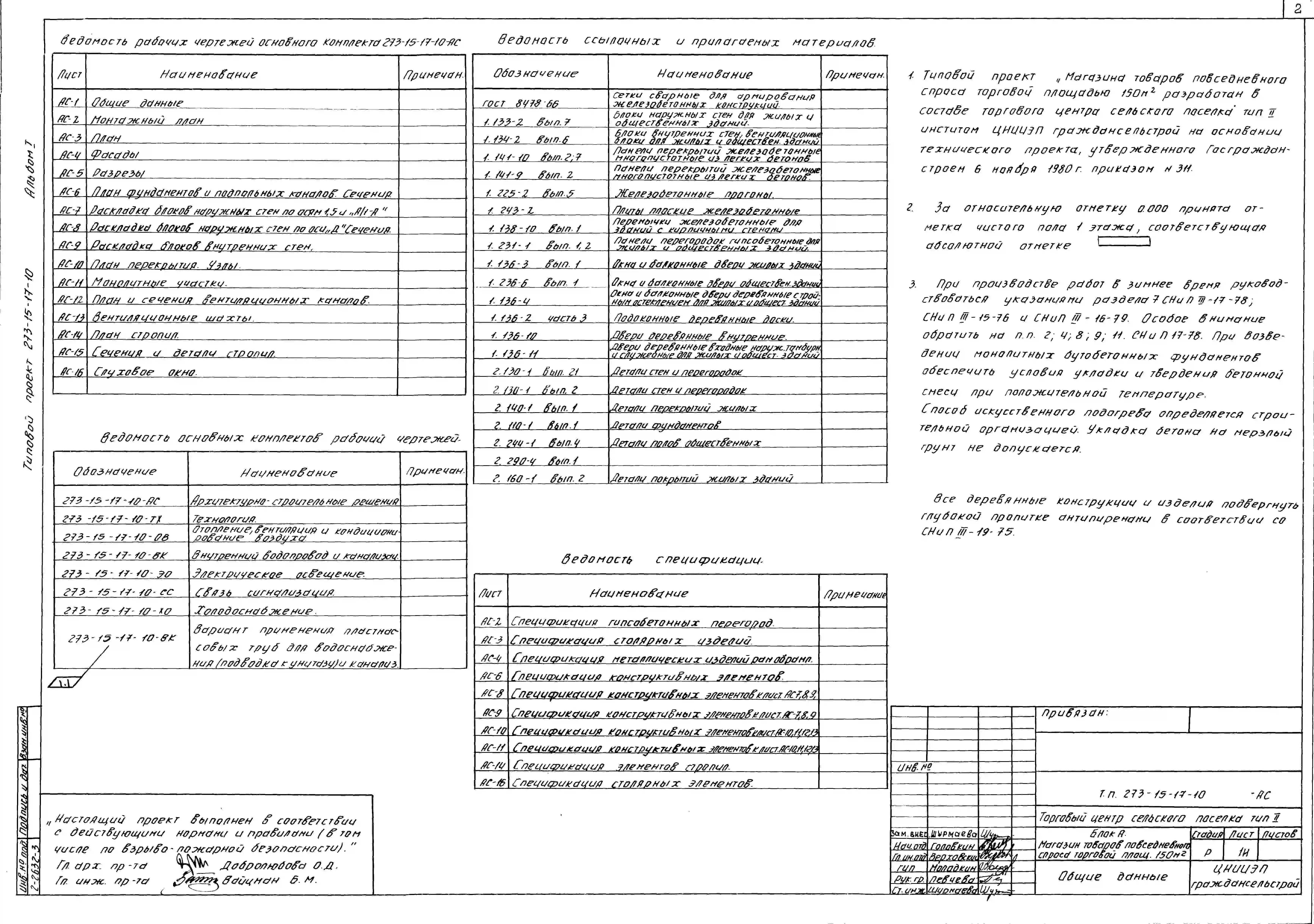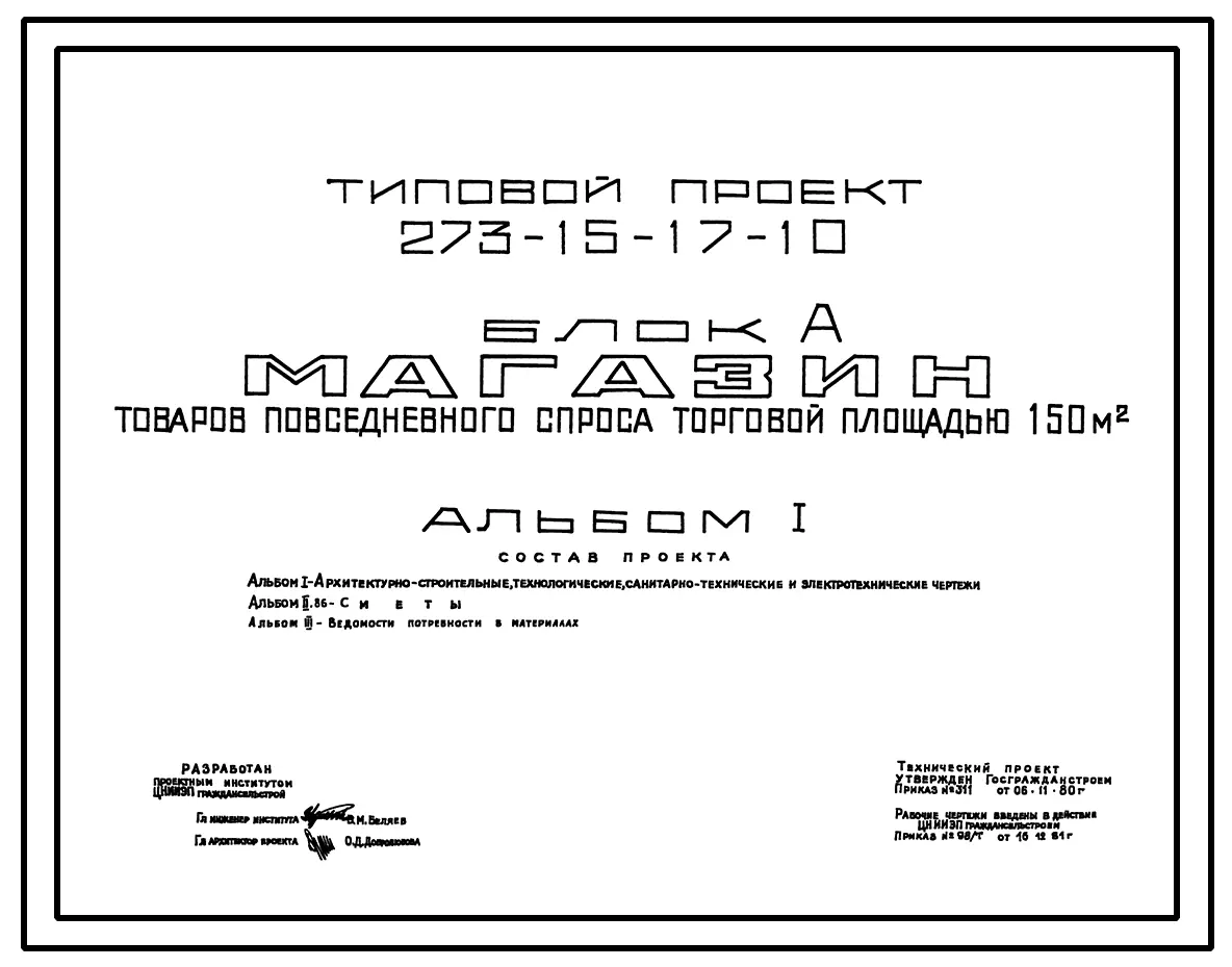 Типовой проект 273-15-17-10 Магазин товаров повседневного спроса торговой площадью 150 м.кв