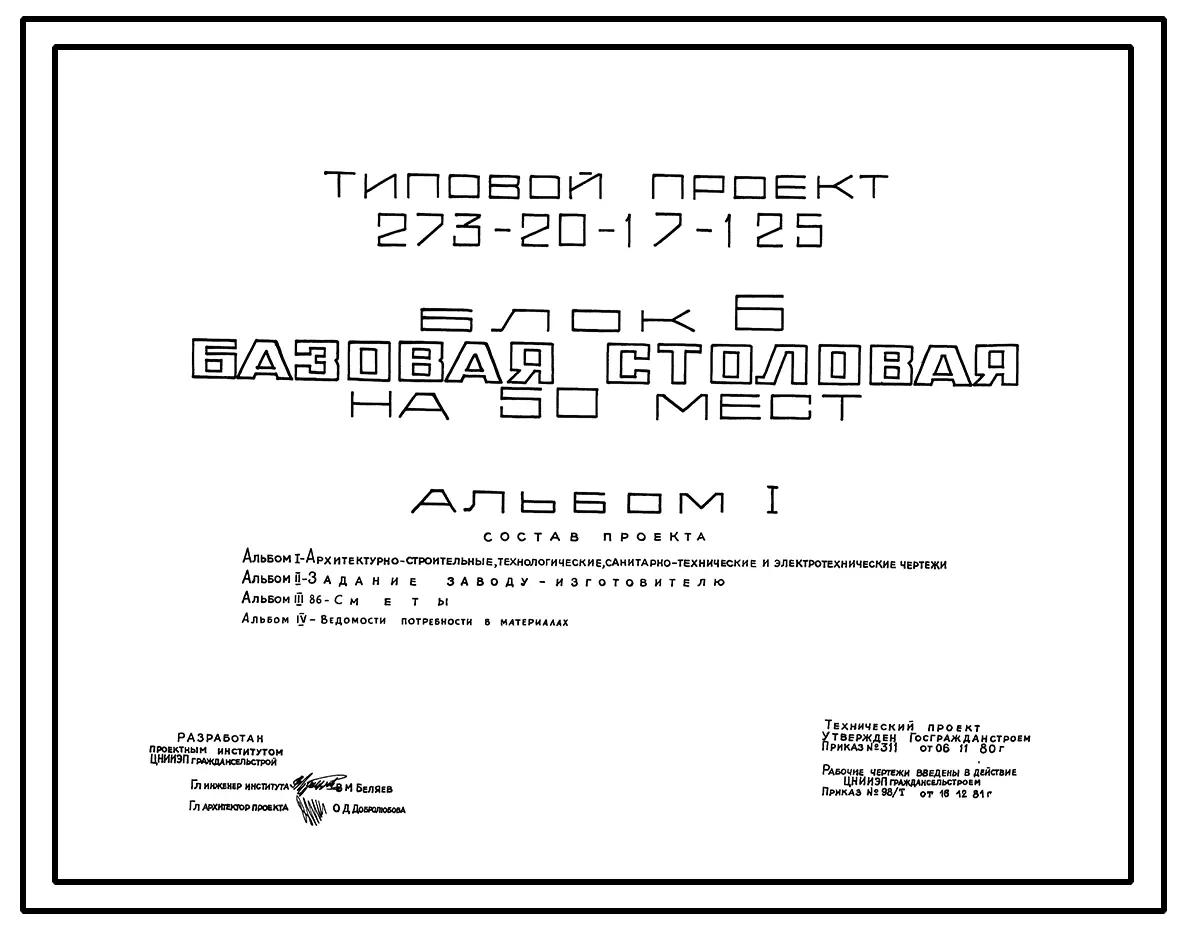 Типовой проект 273-20-17-125 Блок Б. Базовая столовая на 50 мест.
