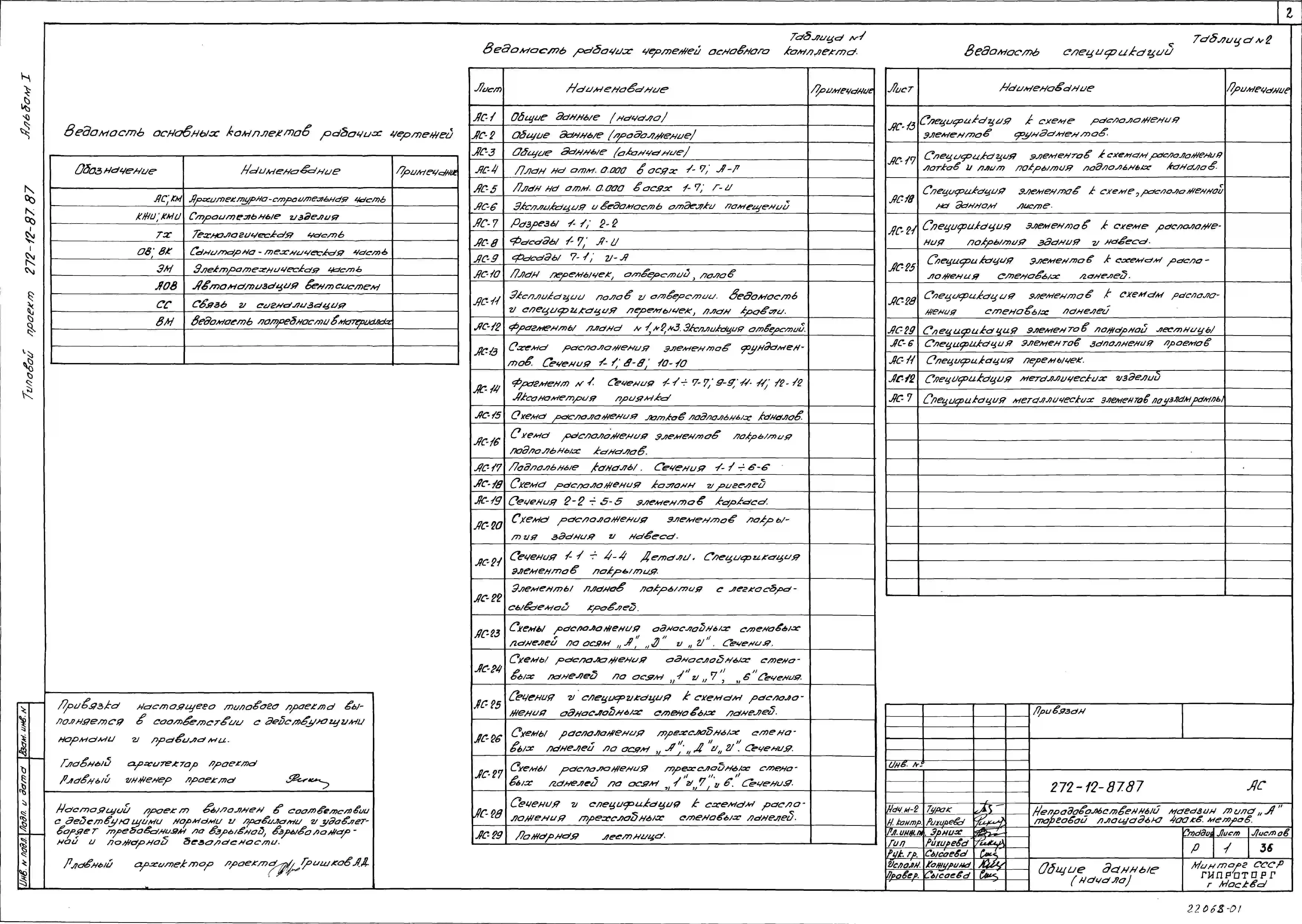 Типовой проект 272-12-87.87 Непродовольственный магазин типа «А» торговой площадью 400 м2