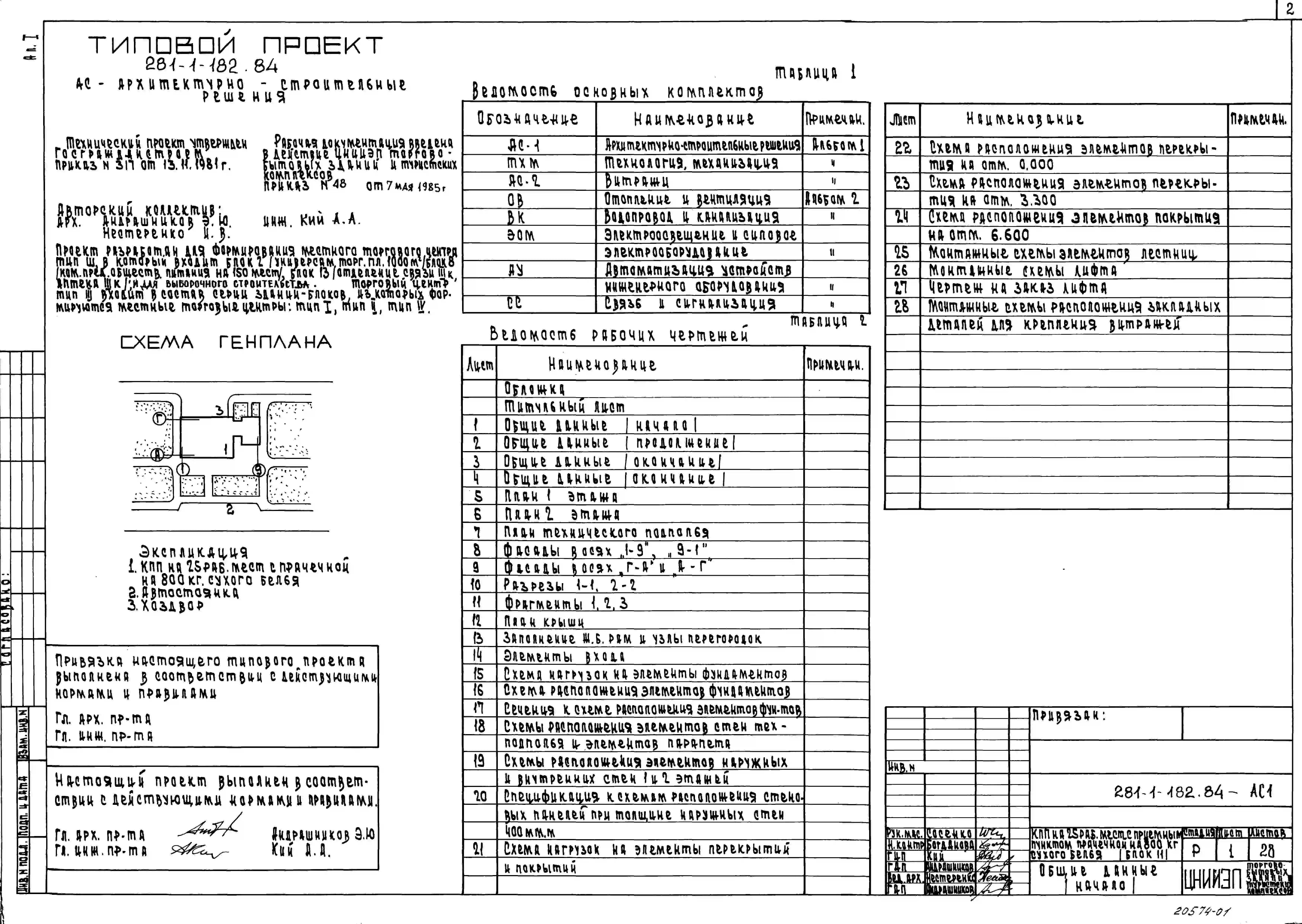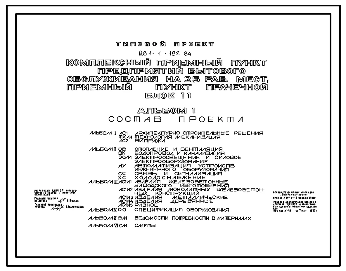 Типовой проект 281-1-182.84 Комплексный приемный пункт предприятий бытового обслуживания на 25 рабочих мест, приемный пункт прачечной. Блок II. Здание двухэтажное. Стены из легкобетонных панелей.