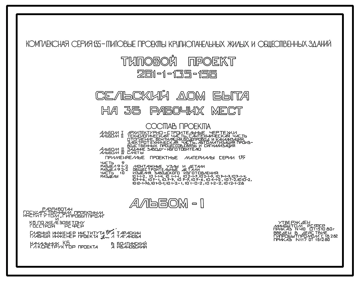 Типовой проект 281-1-135-156 Сельский дом быта на 35 рабочих мест. Здание двухэтажное в конструкциях серии 135. Стены из однослойных легкобетонных панелей.