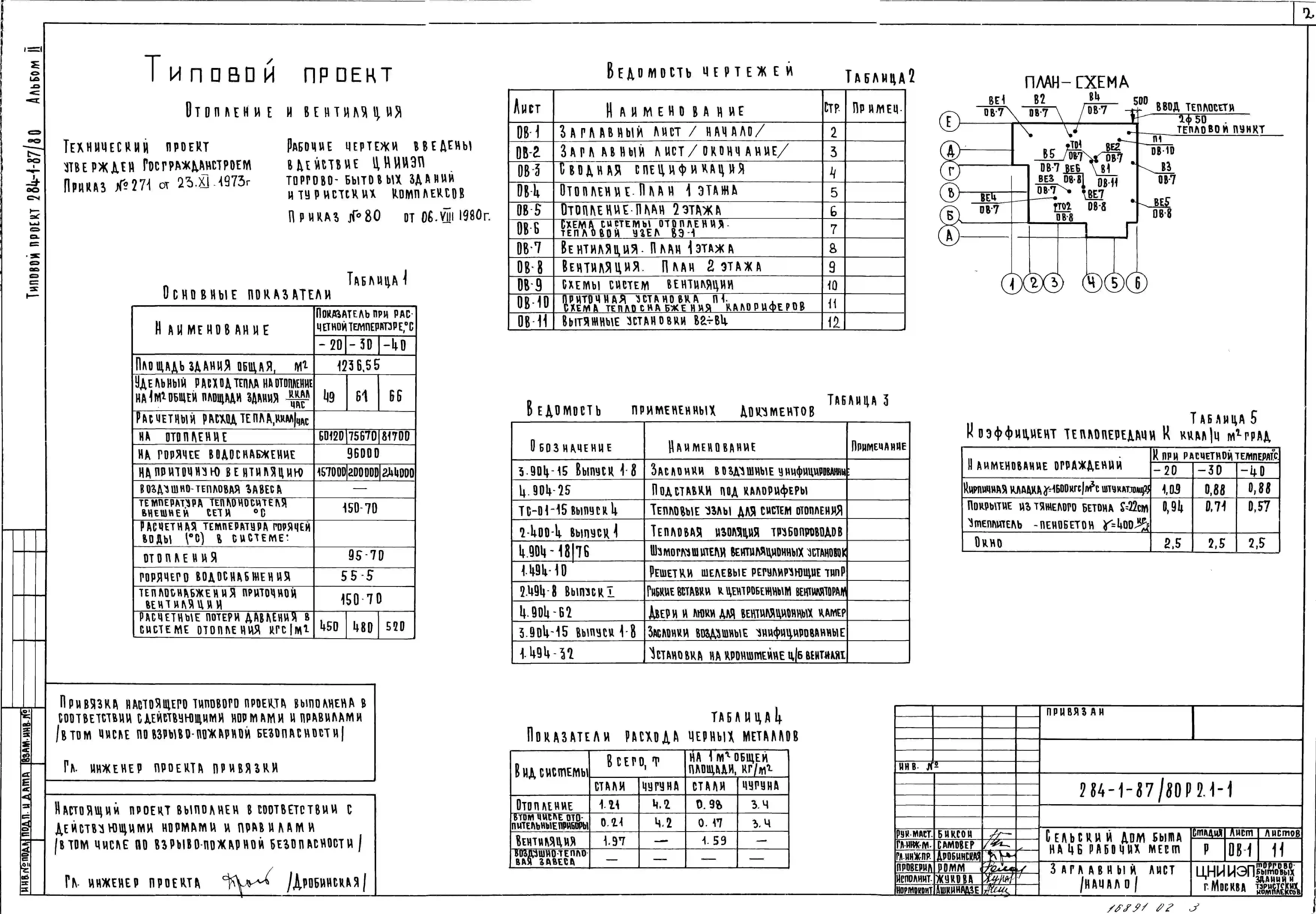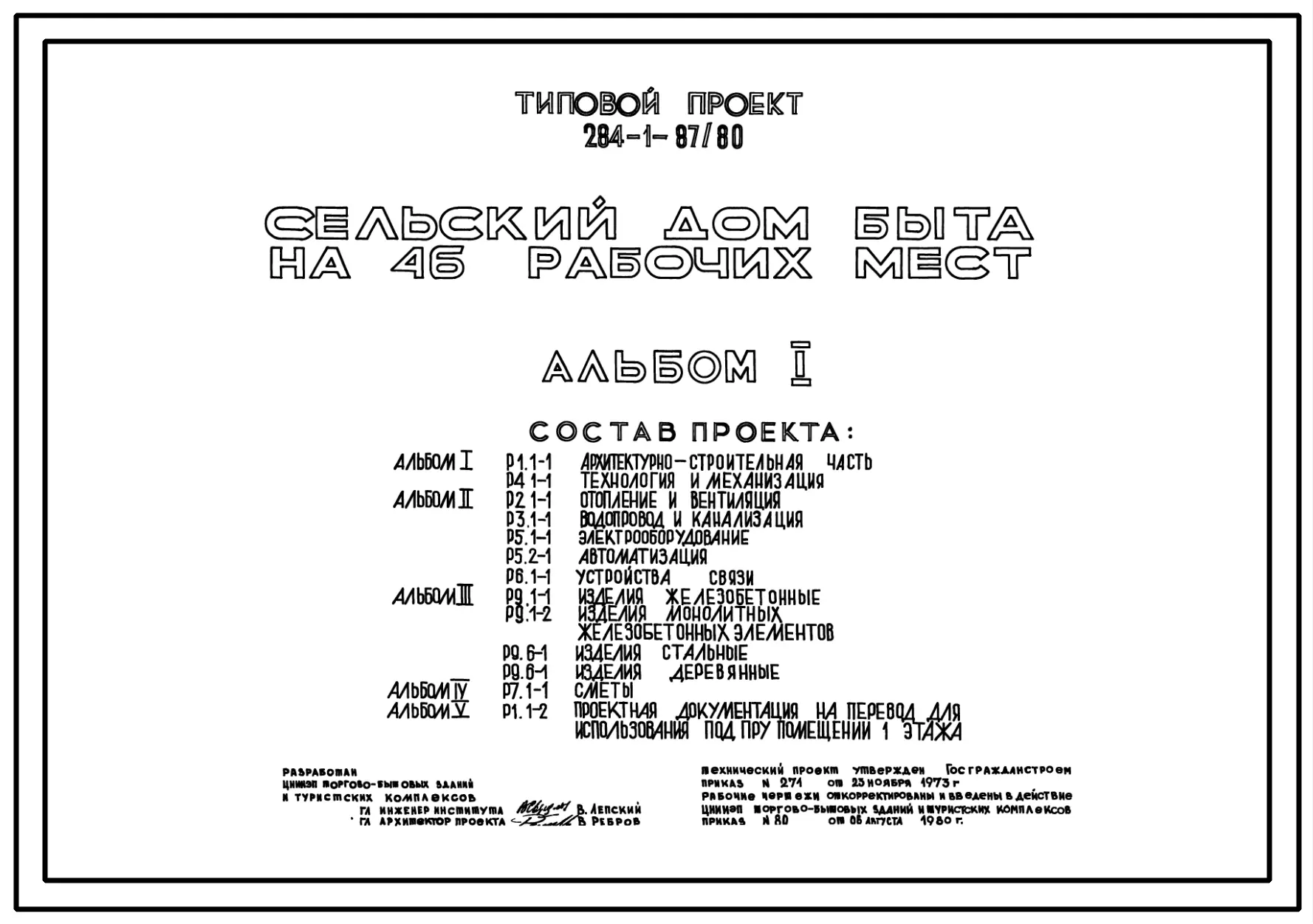 Типовой проект 284-1-87/80 Сельский дом быта на 46 рабочих мест. Здание двухэтажное. Каркас сборный железобетонный серии ИИ-04. Стены из кирпича.