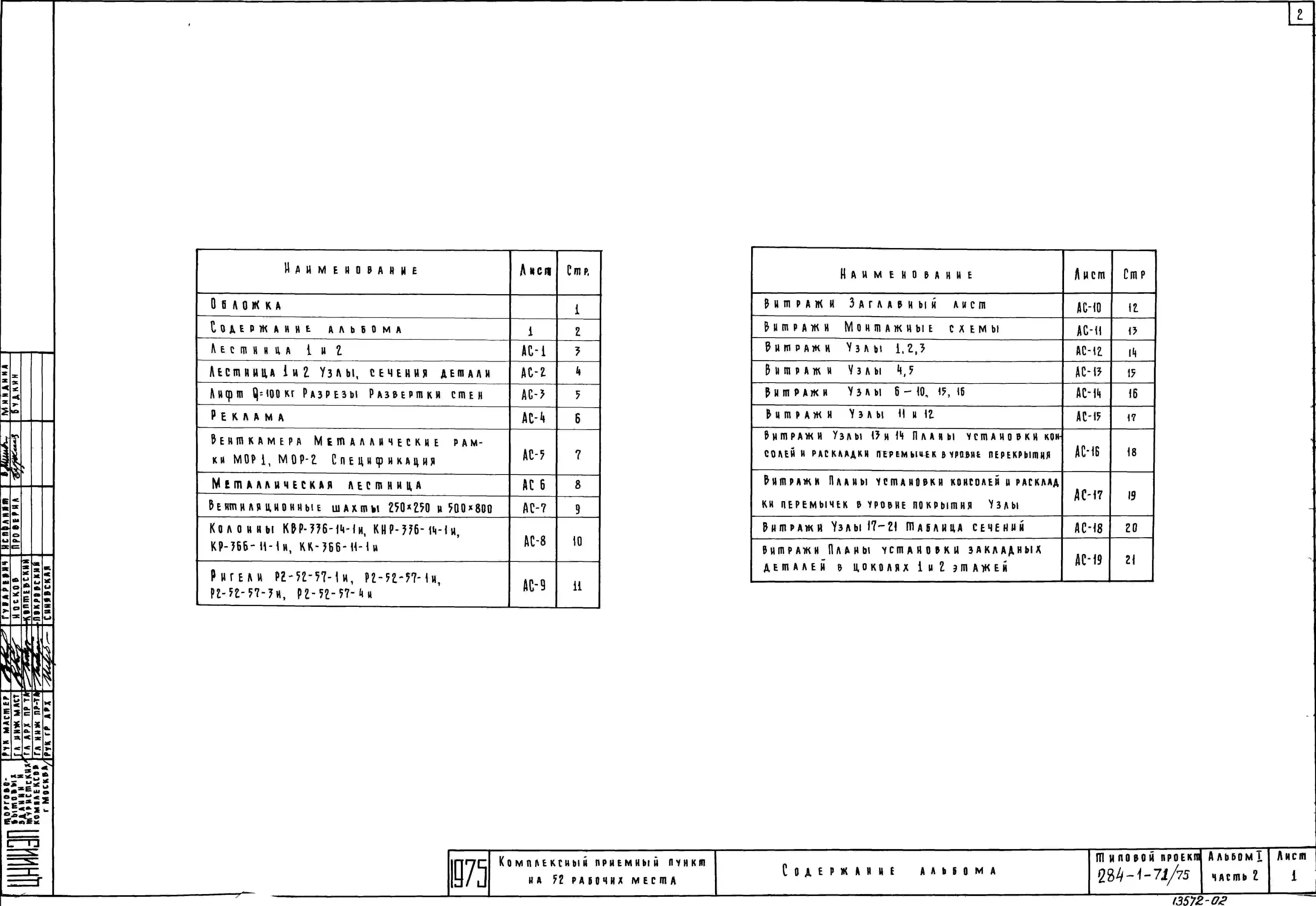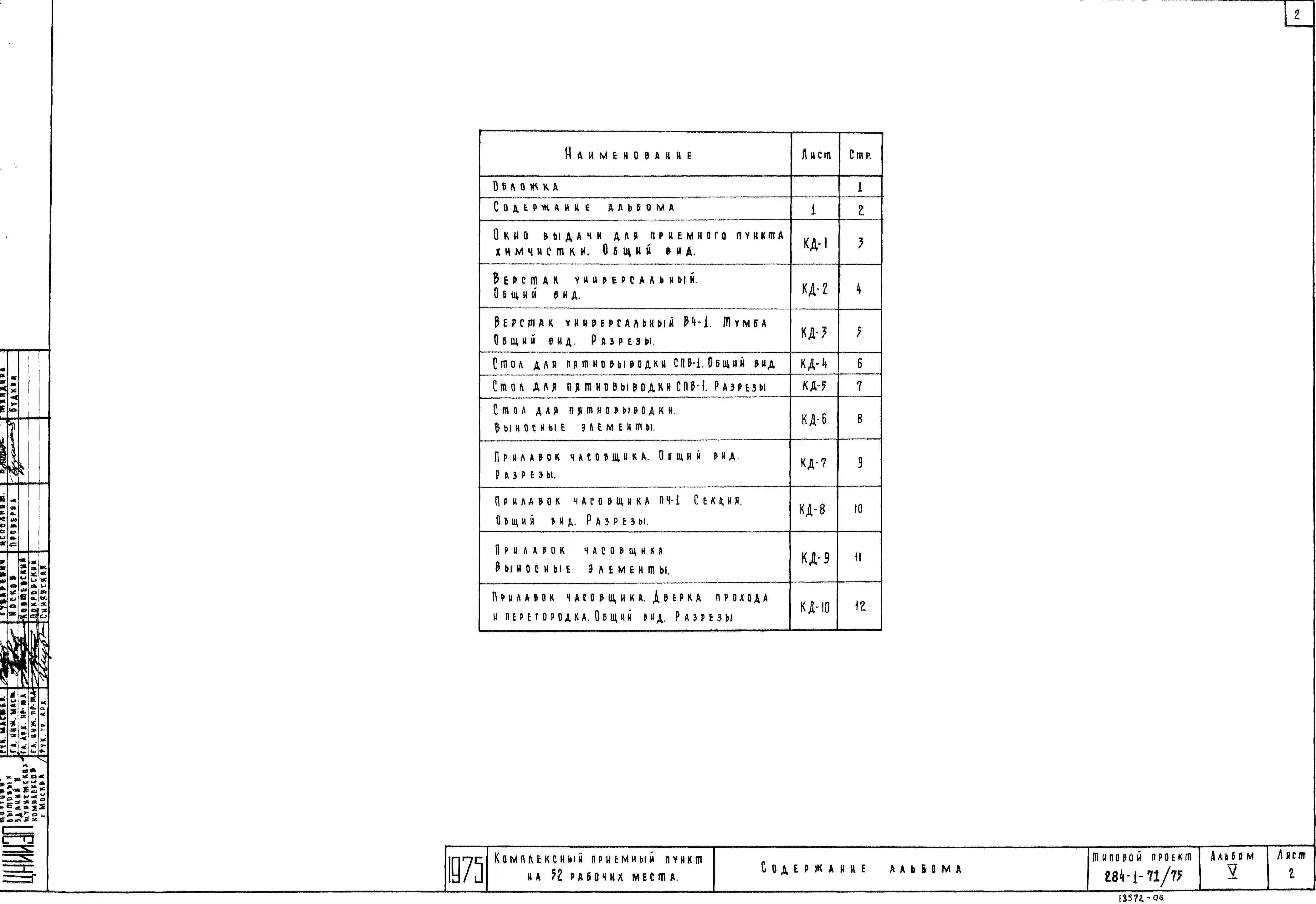 Типовой проект 284-1-71/75 Комплексный приемный пункт на 52 рабочих места, для строительства в 1В климатическом подрайоне, 2 и 3 климатических районах
