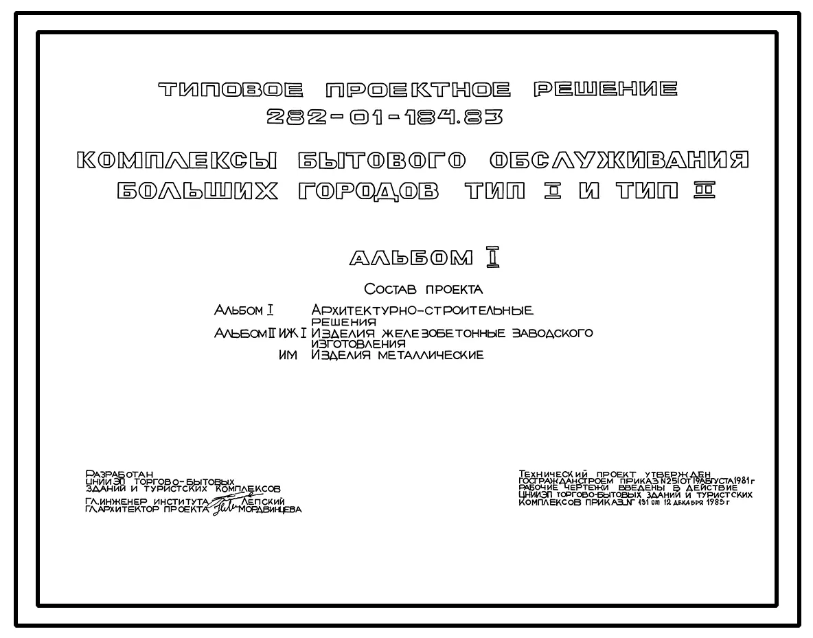 Типовой проект 282-01-184.83 Комплексы бытового обслуживания больших городов. Для строительства в 1В климатическом подрайоне, 2 и 3 климатических районах.
