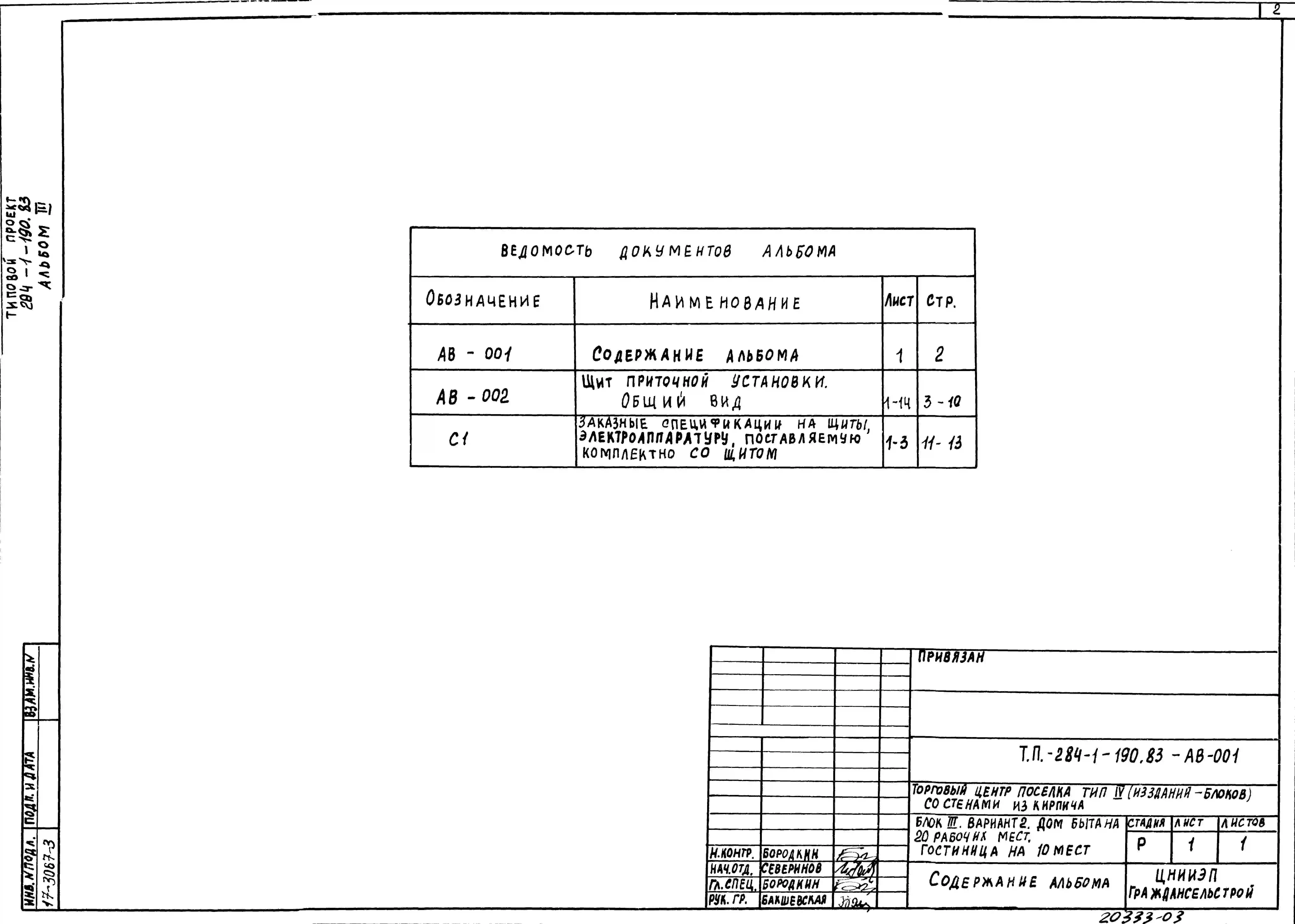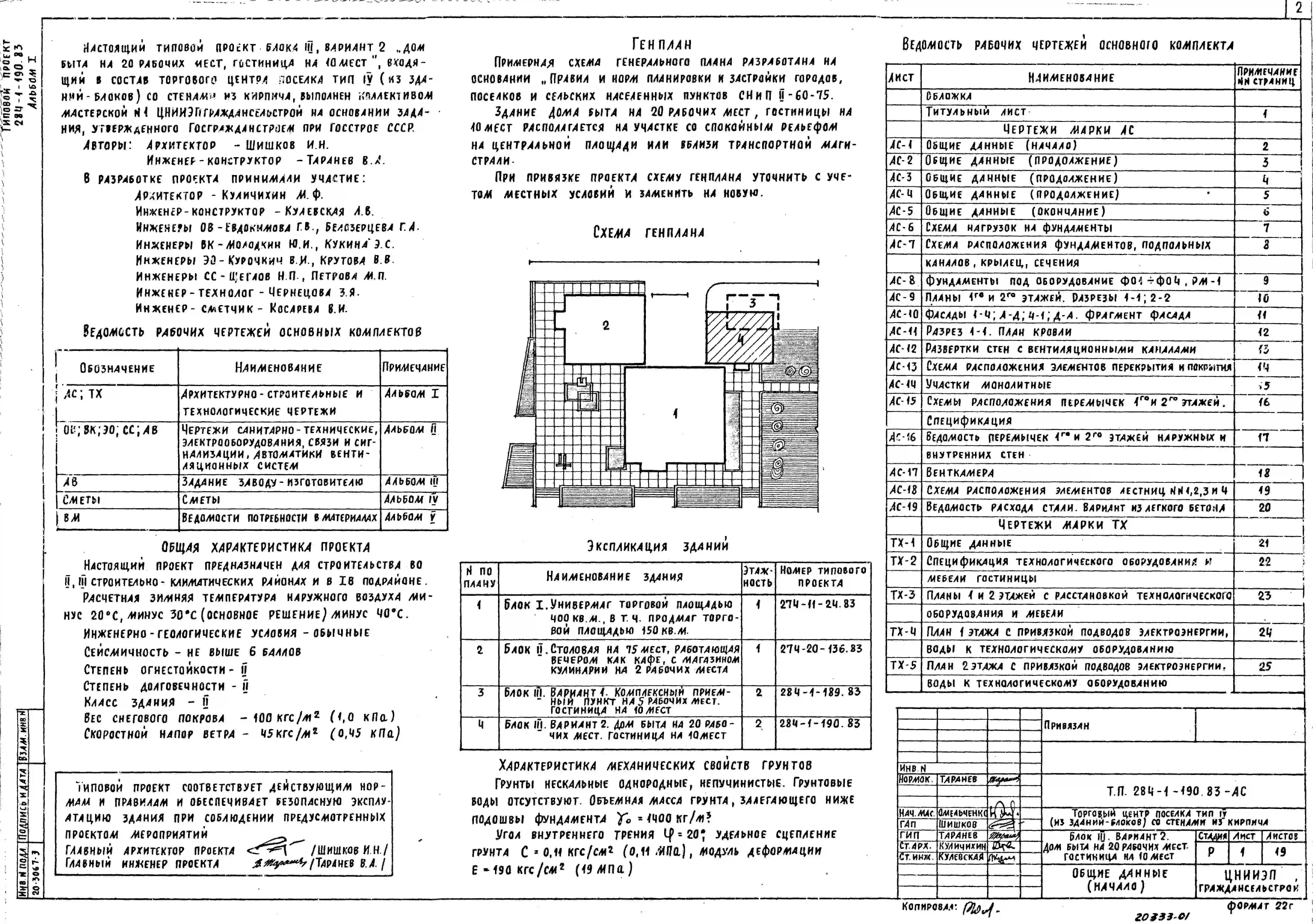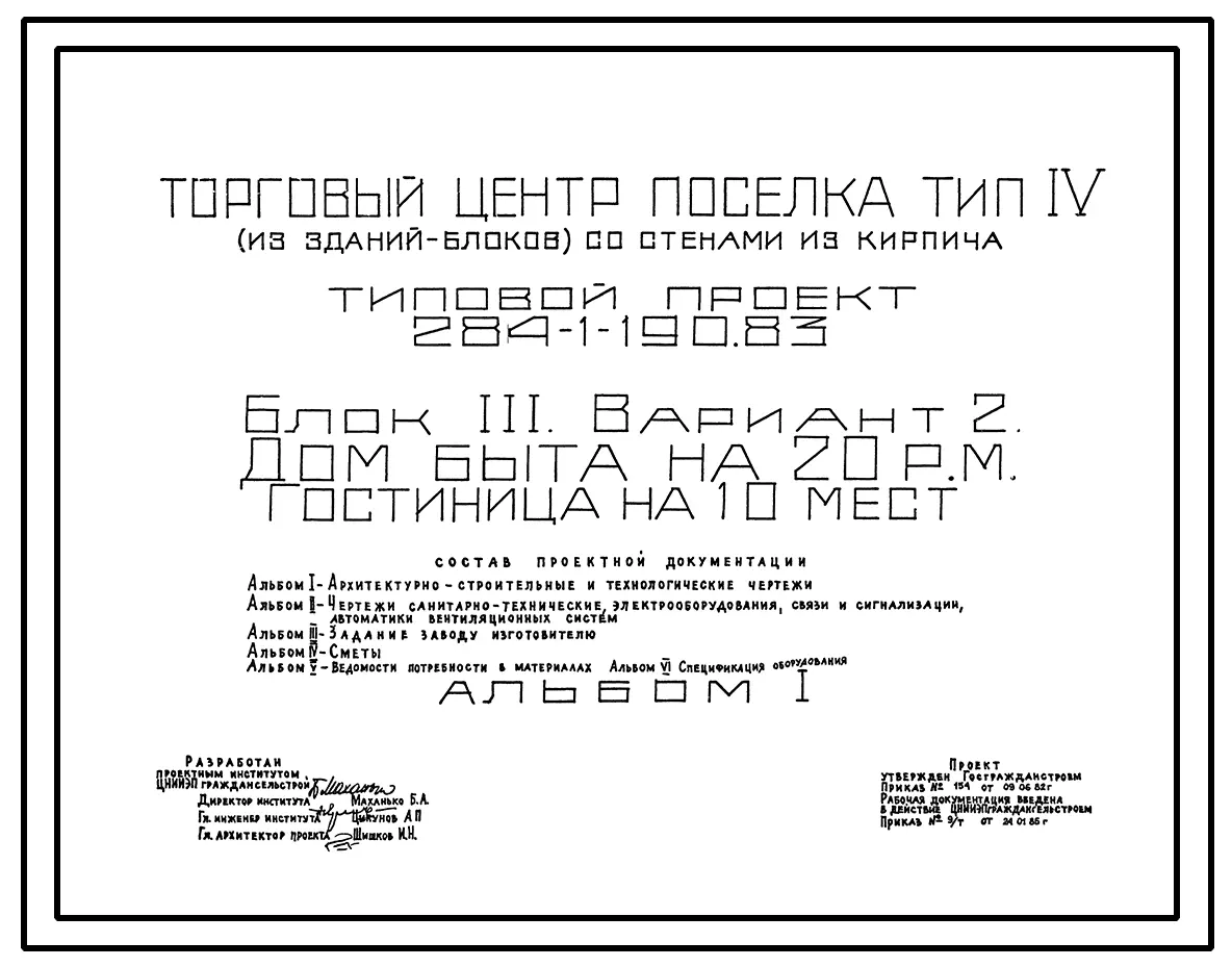 Типовой проект 284-1-190.83 Дом быта на 20 рабочих мест, гостиница на 10 мест. Торговый центр поселка. Для строительства в 1В климатическом подрайоне, 2 и 3 климатических районах.