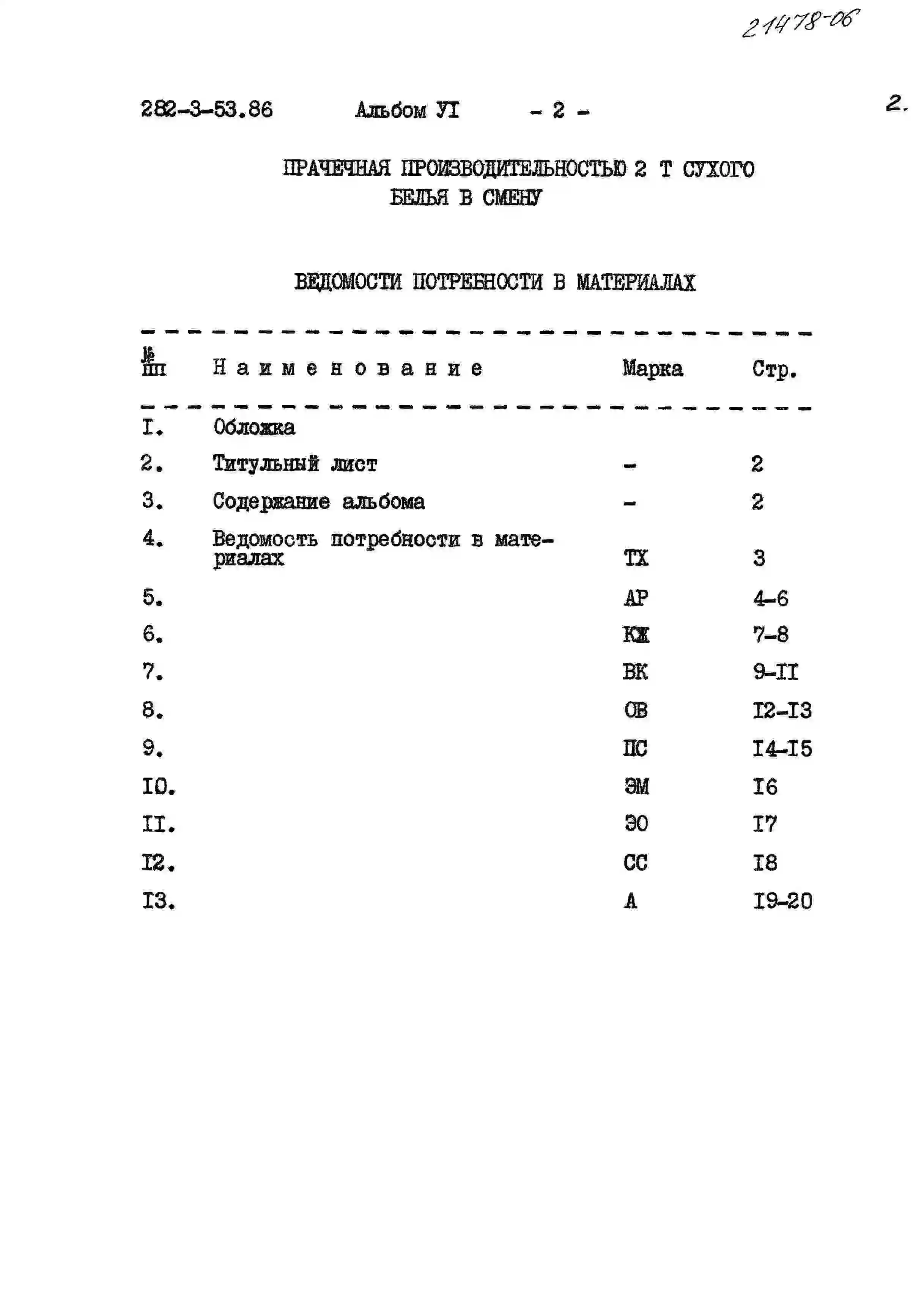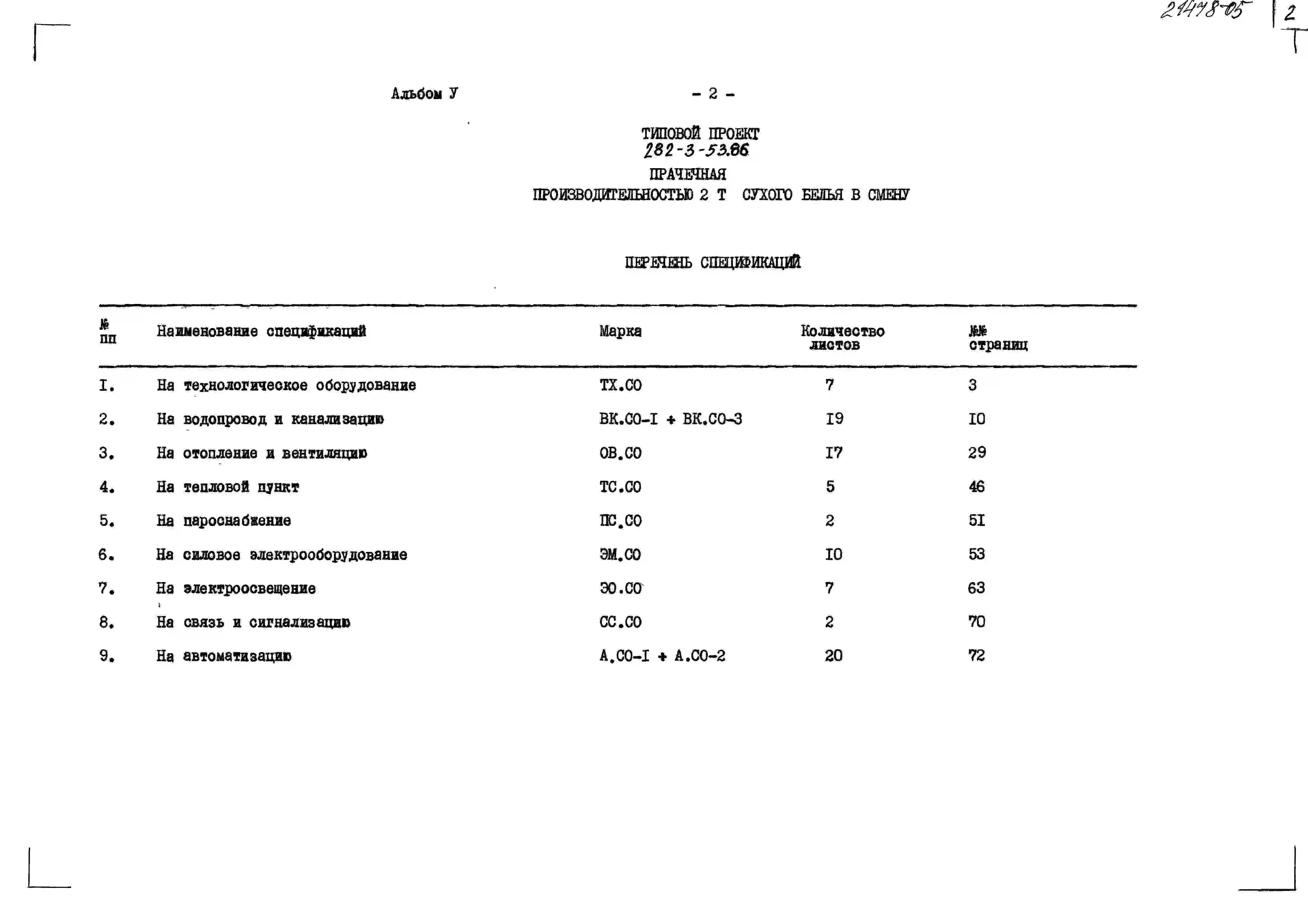 Типовой проект 282-3-53.86 Прачечная производительностью 2 т сухого белья в смену