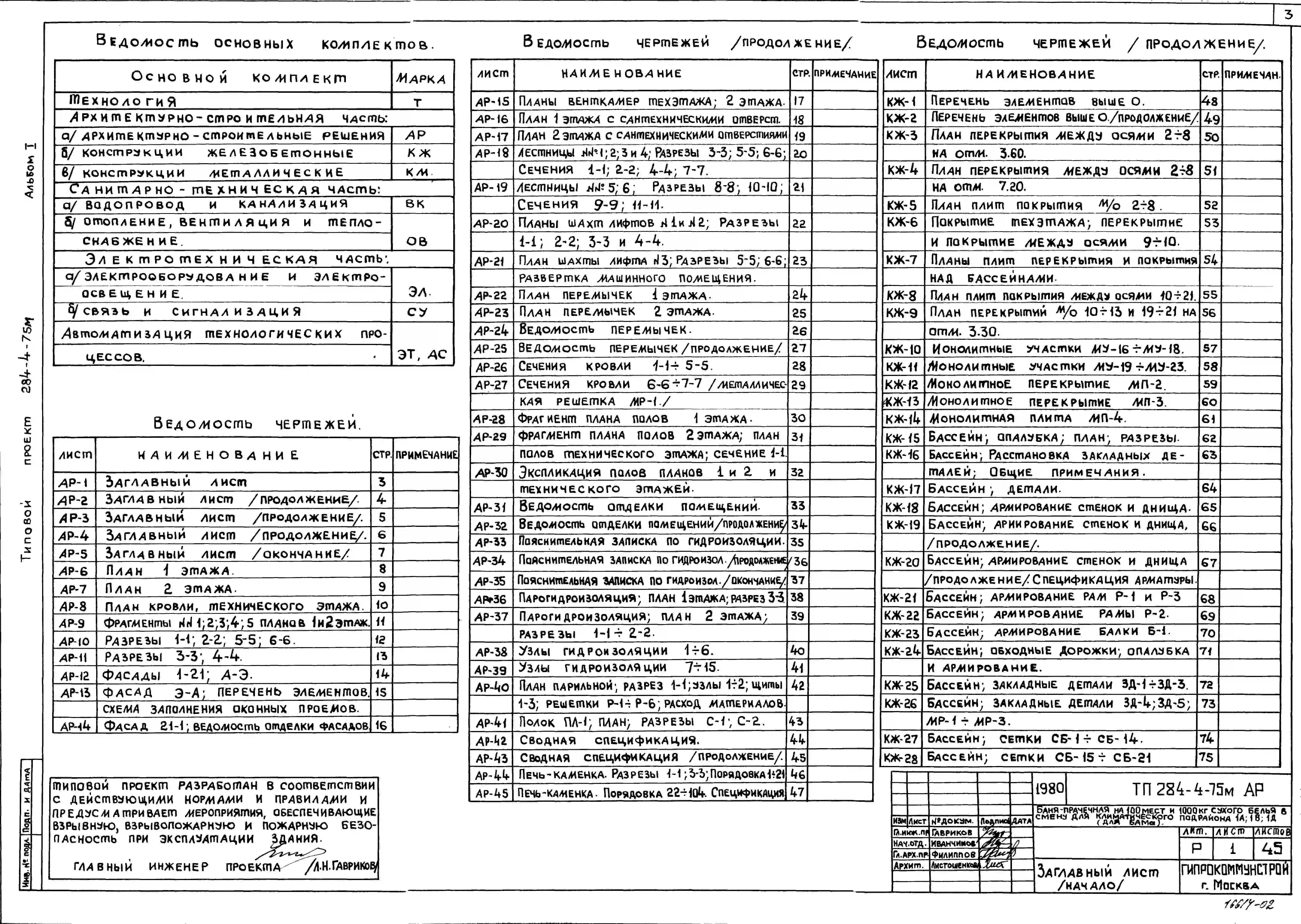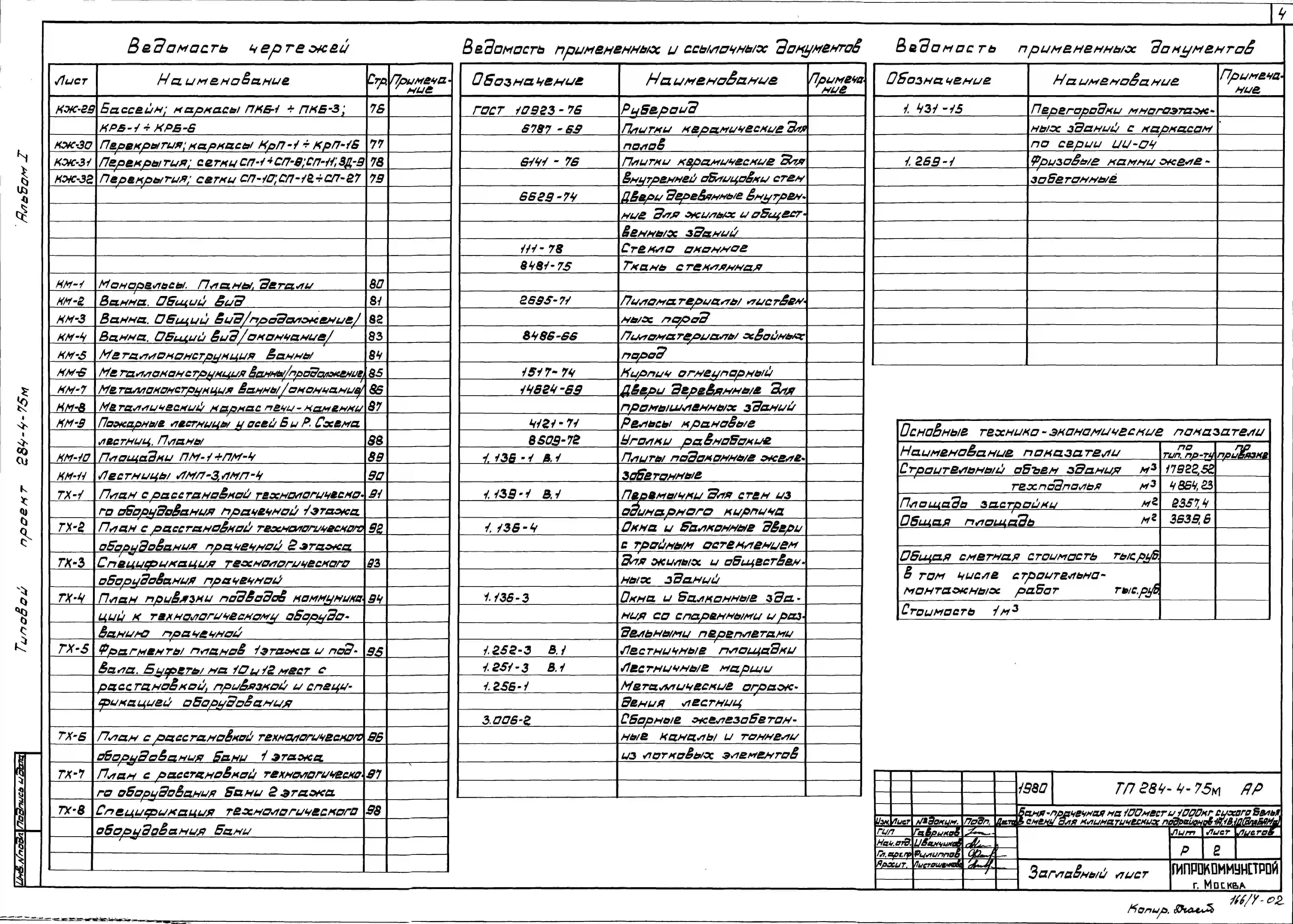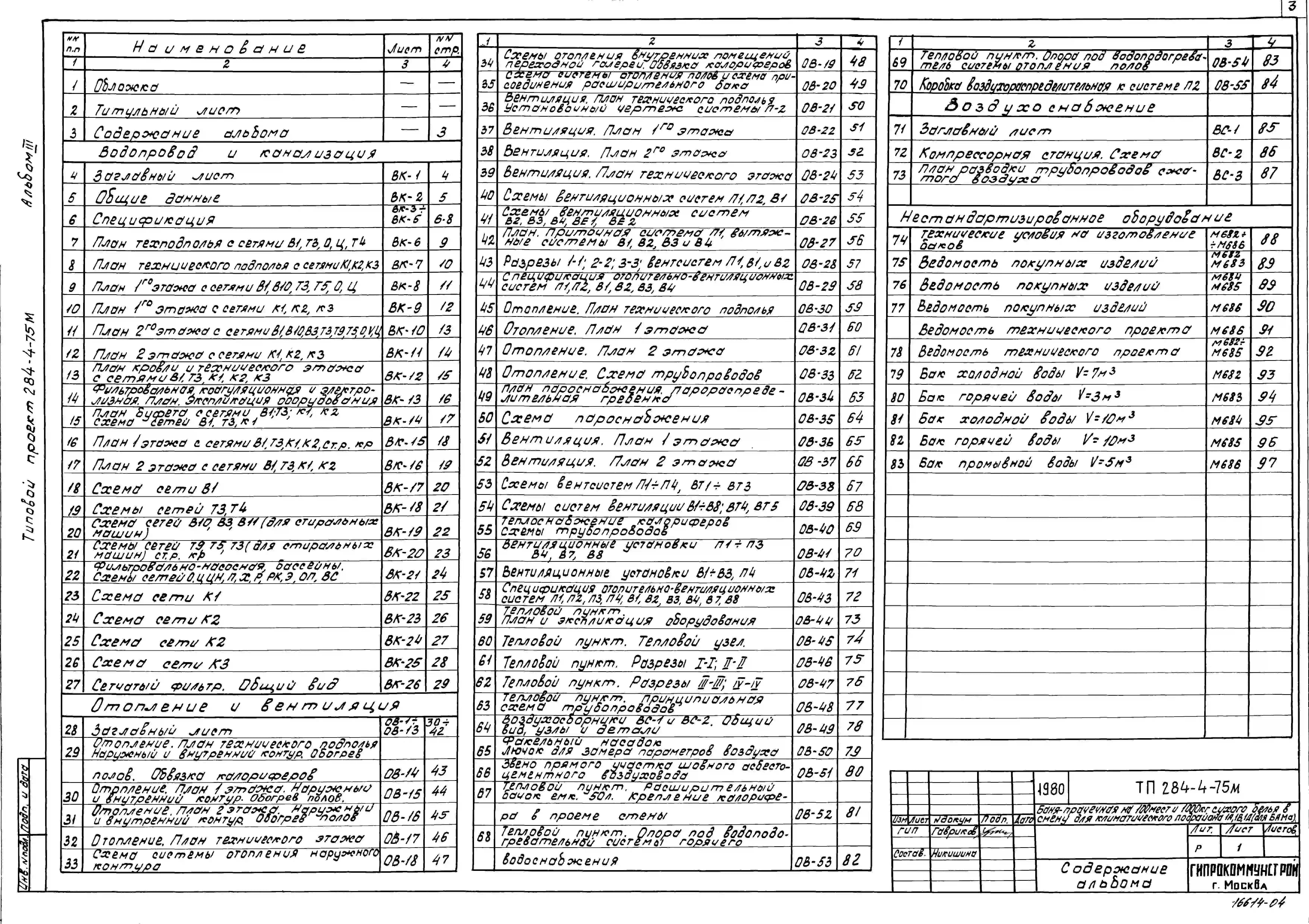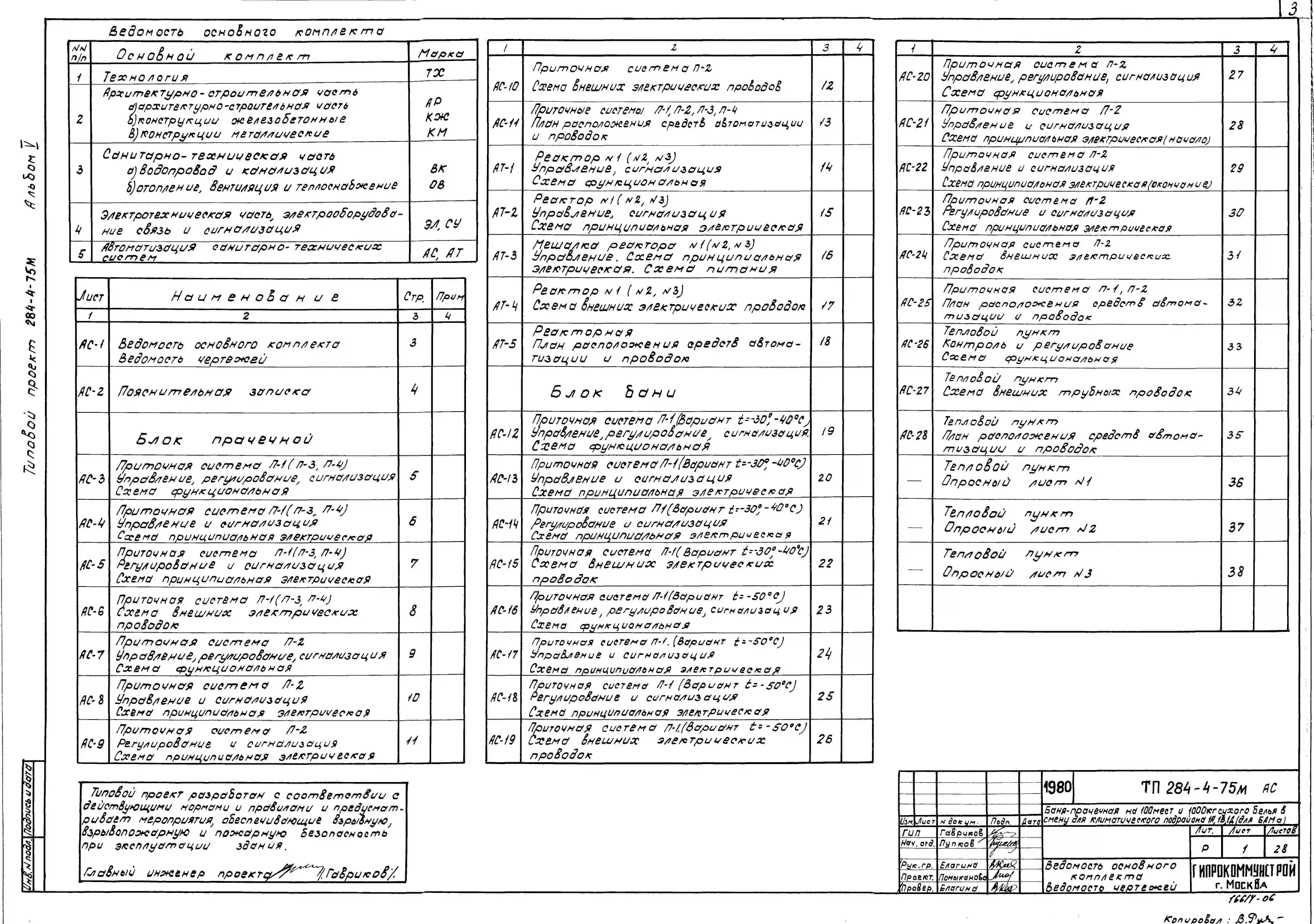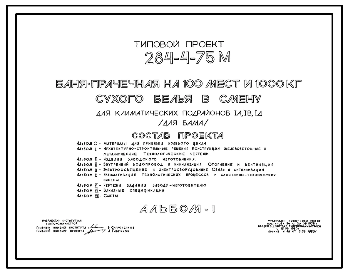 Типовой проект 284-4-75М Баня-прачечная на 100 мест и 1000 кг сухого белья в смену.