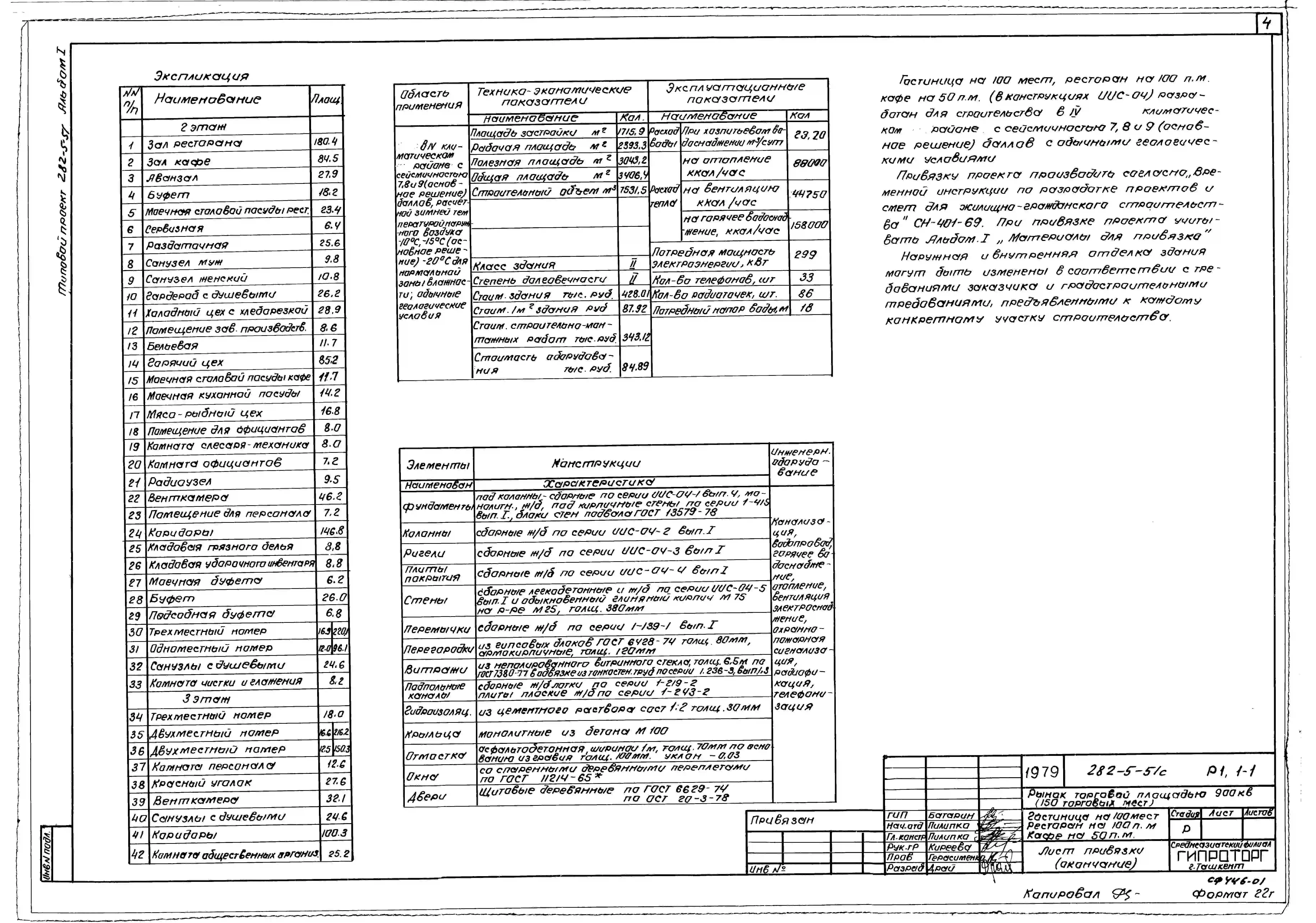 Типовой проект 282-5-51с Гостиница на 100 мест с помещением дополнительного обслуживания и комплексным предприятием общественного питания. Для строительства в 4А и 4Г климатических подрайонах сейсмичностью 7, 8 и 9 баллов