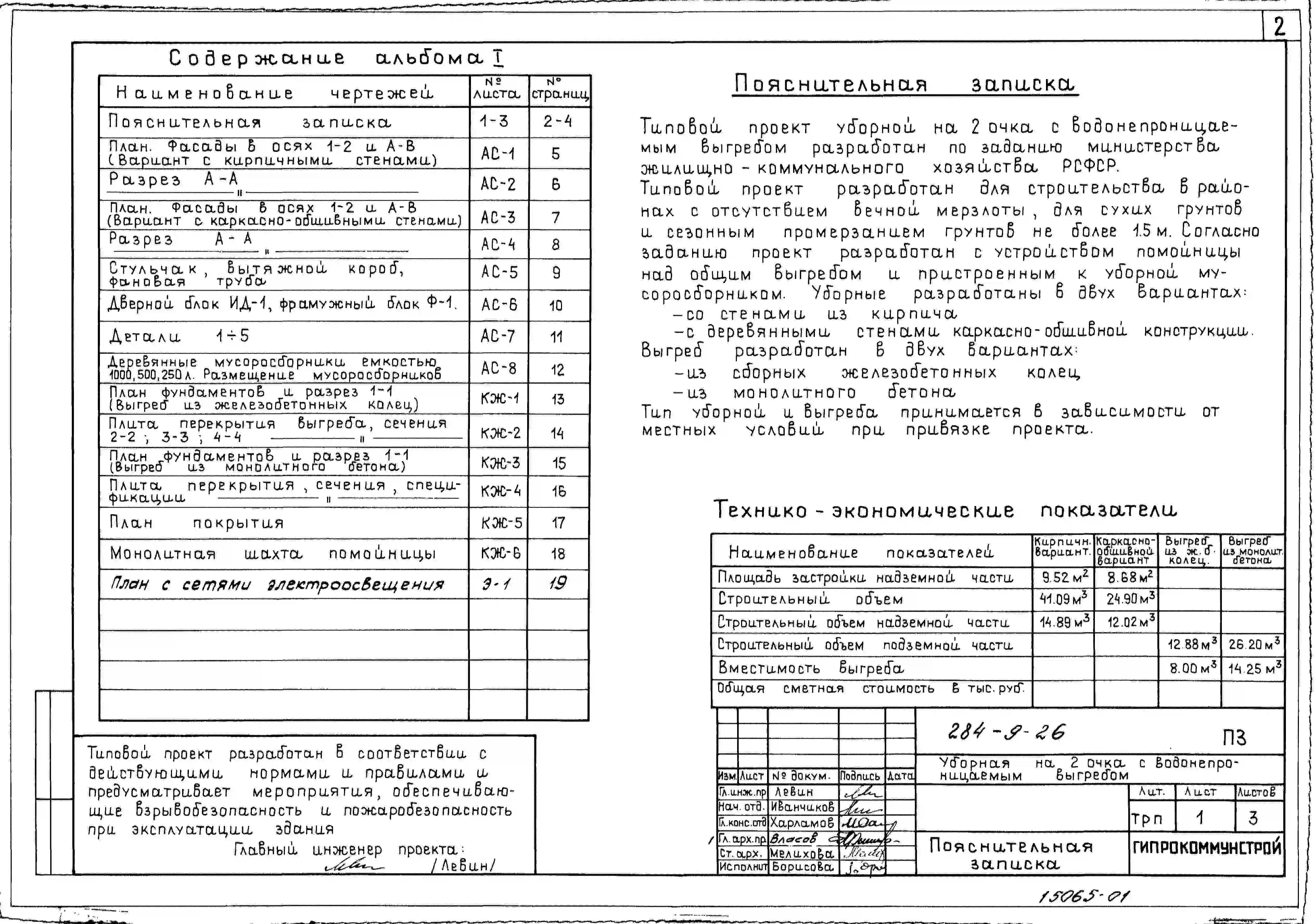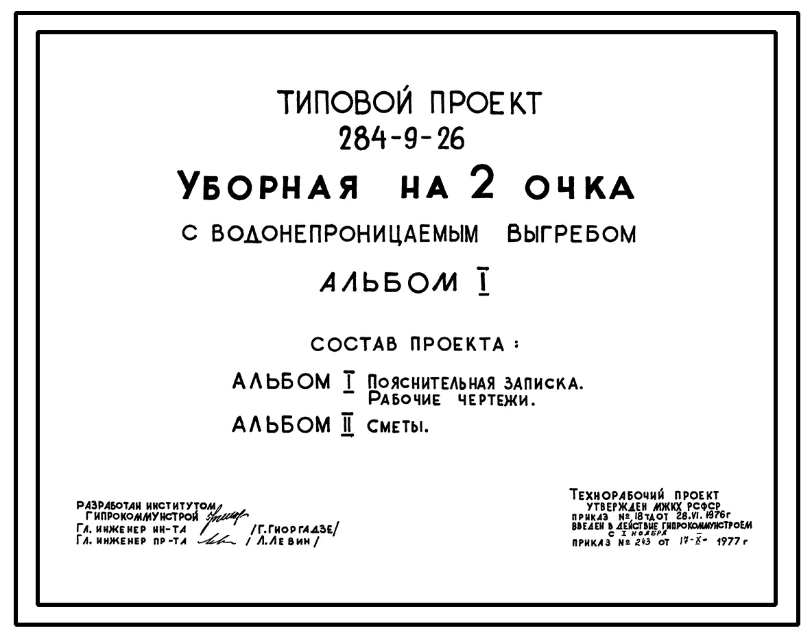 Типовой проект 284-9-26 Уборная на 2 очка с водонепроницаемым выгребом. Стены из кирпича, вариант – стены деревянные каркасно-обшивные.