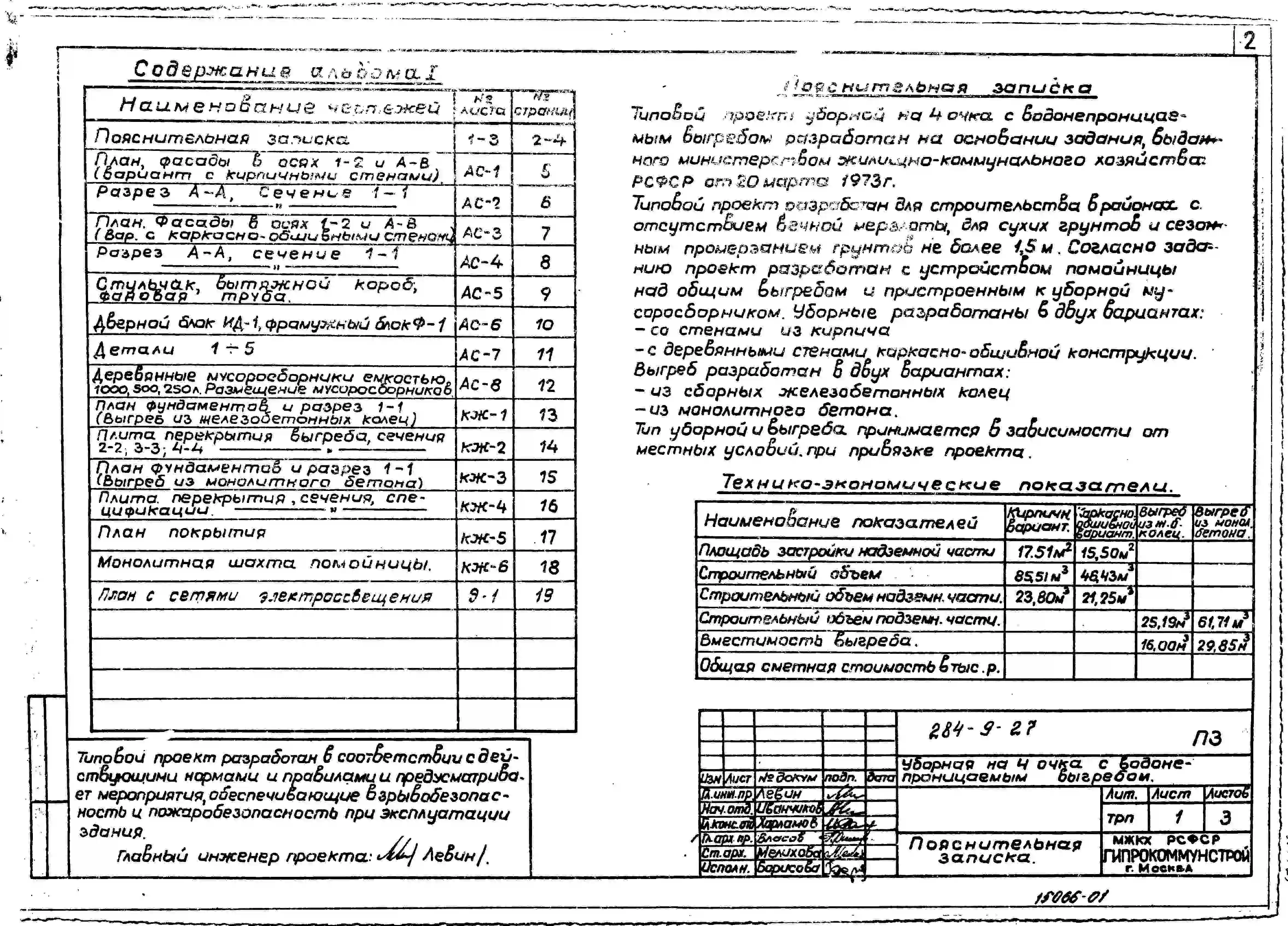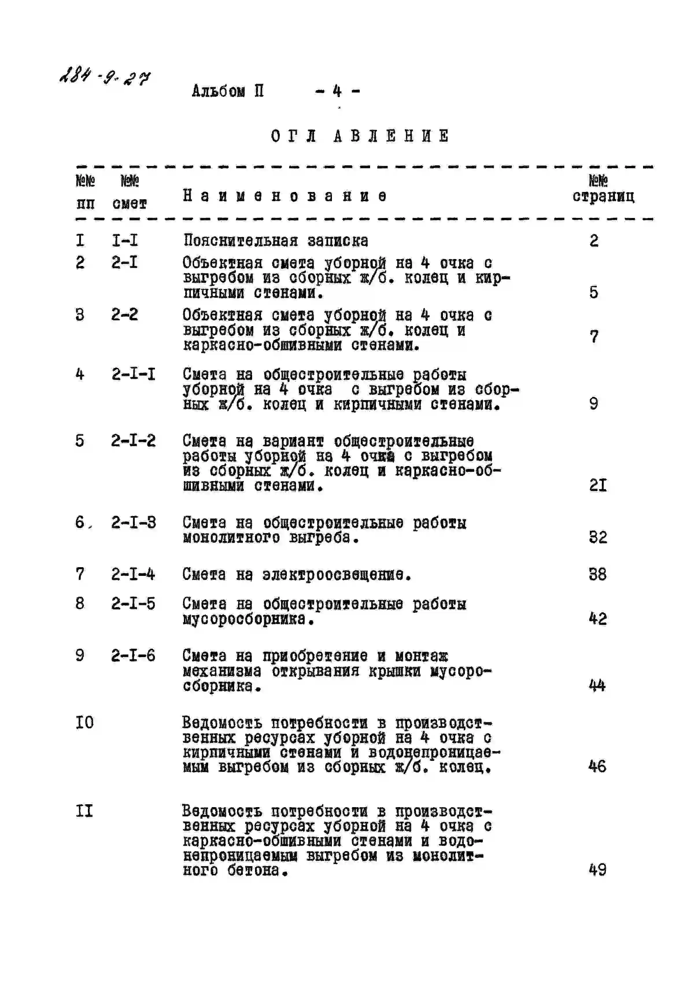 Типовой проект 284-9-27 Уборная на 4 очка с водонепроницаемым выгребом. Стены из кирпича, вариант – стены деревянные каркасно-обшивные. Объем 86 м3 (для кирпичных стен). Объем 46 м3 (для деревянных каркасно-обшивных стен)