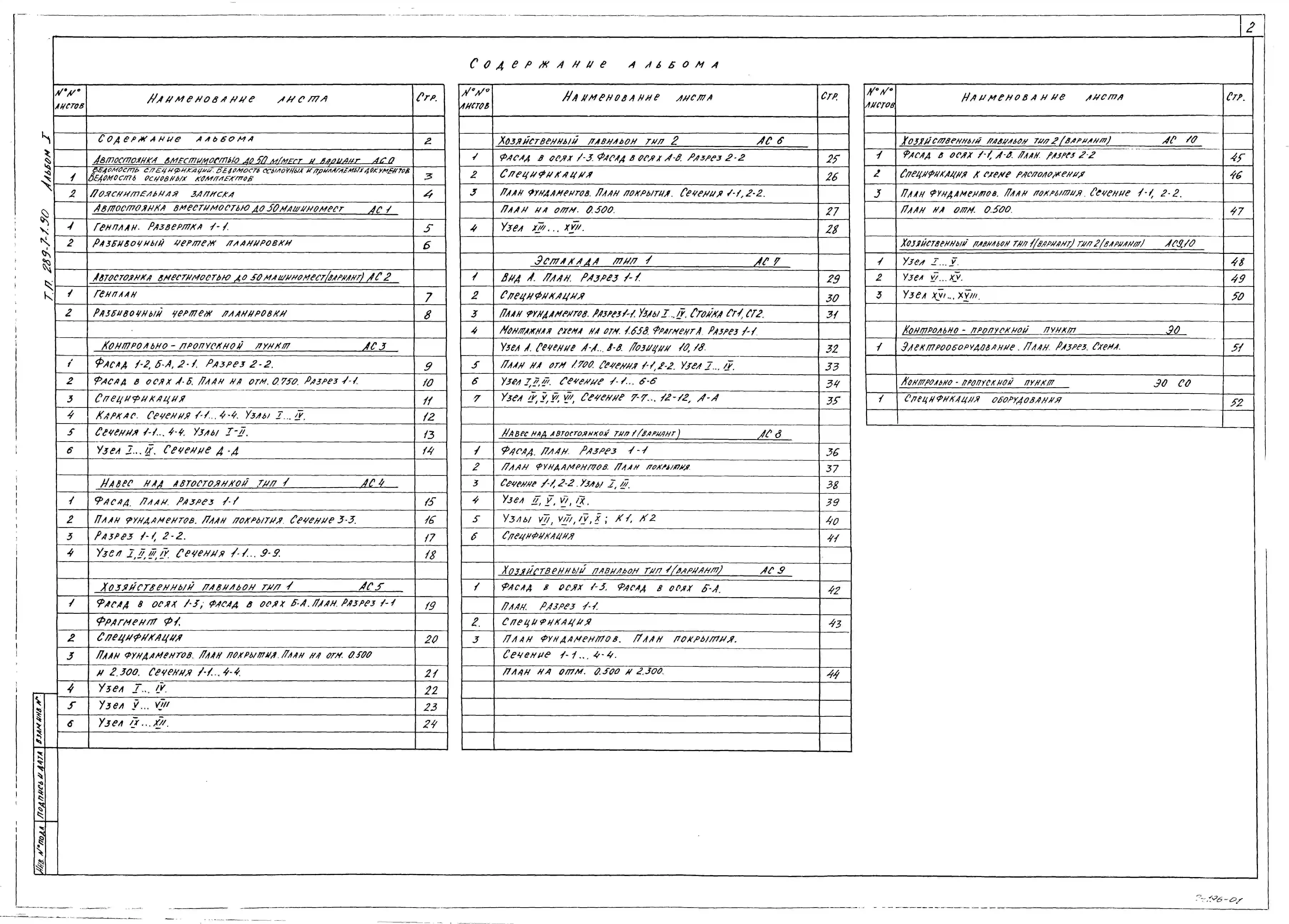 Типовой проект 289-7-1.90 Автостоянки личного транспорта вместимостью до 50 машиномест