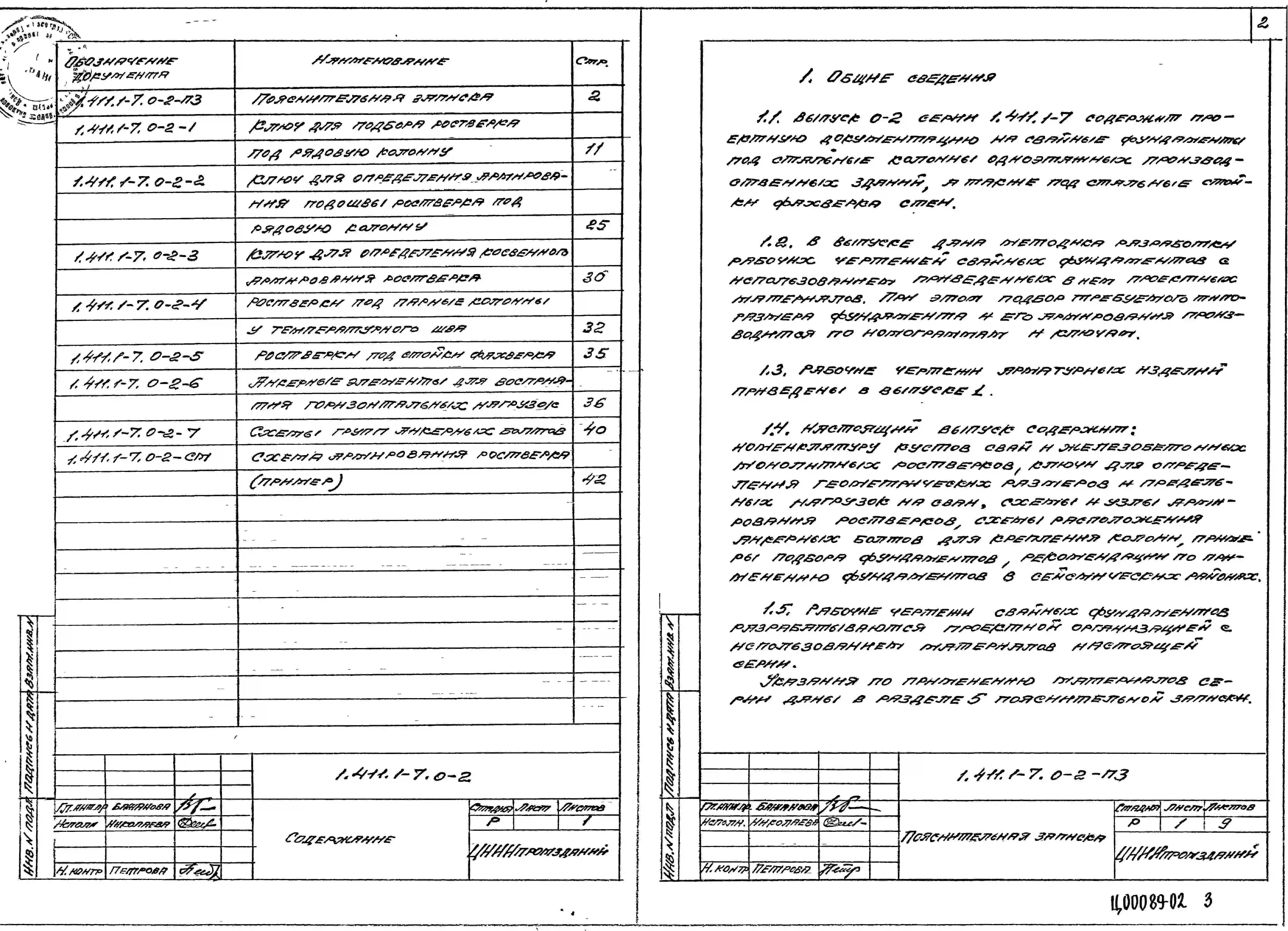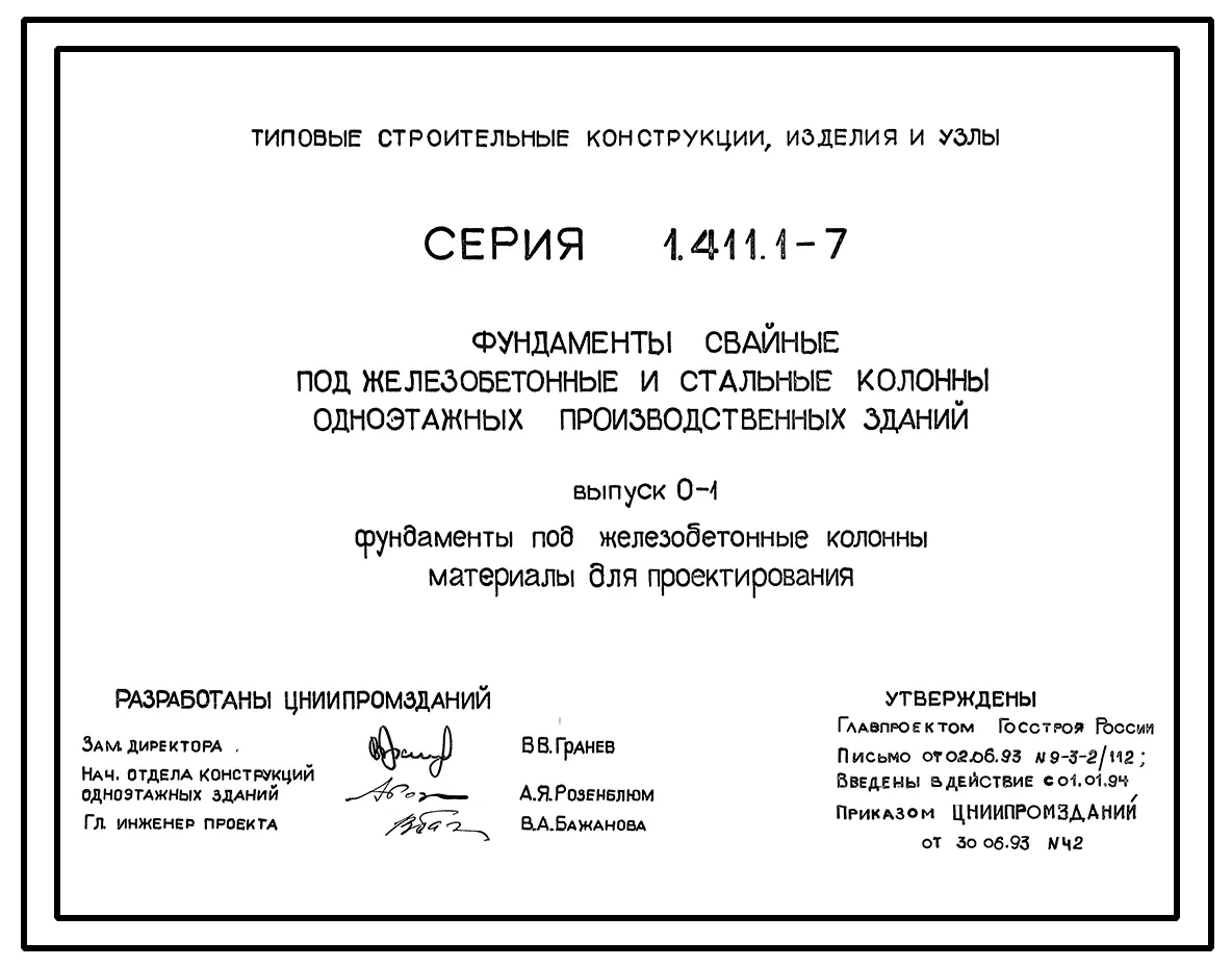 Серия 1.411.1-7 Фундаменты свайные под железобетонные и стальные колонны одноэтажных производственных зданий. Материалы для проектирования. Рабочие чертежи