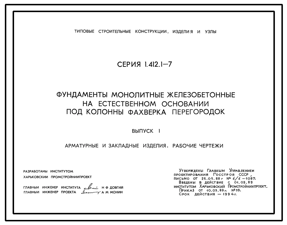 Серия 1.412.1-7 Фундаменты монолитные железобетонные на естественном основании под колонны фахверка перегородок. Материалы для проектирования. Рабочие чертежи