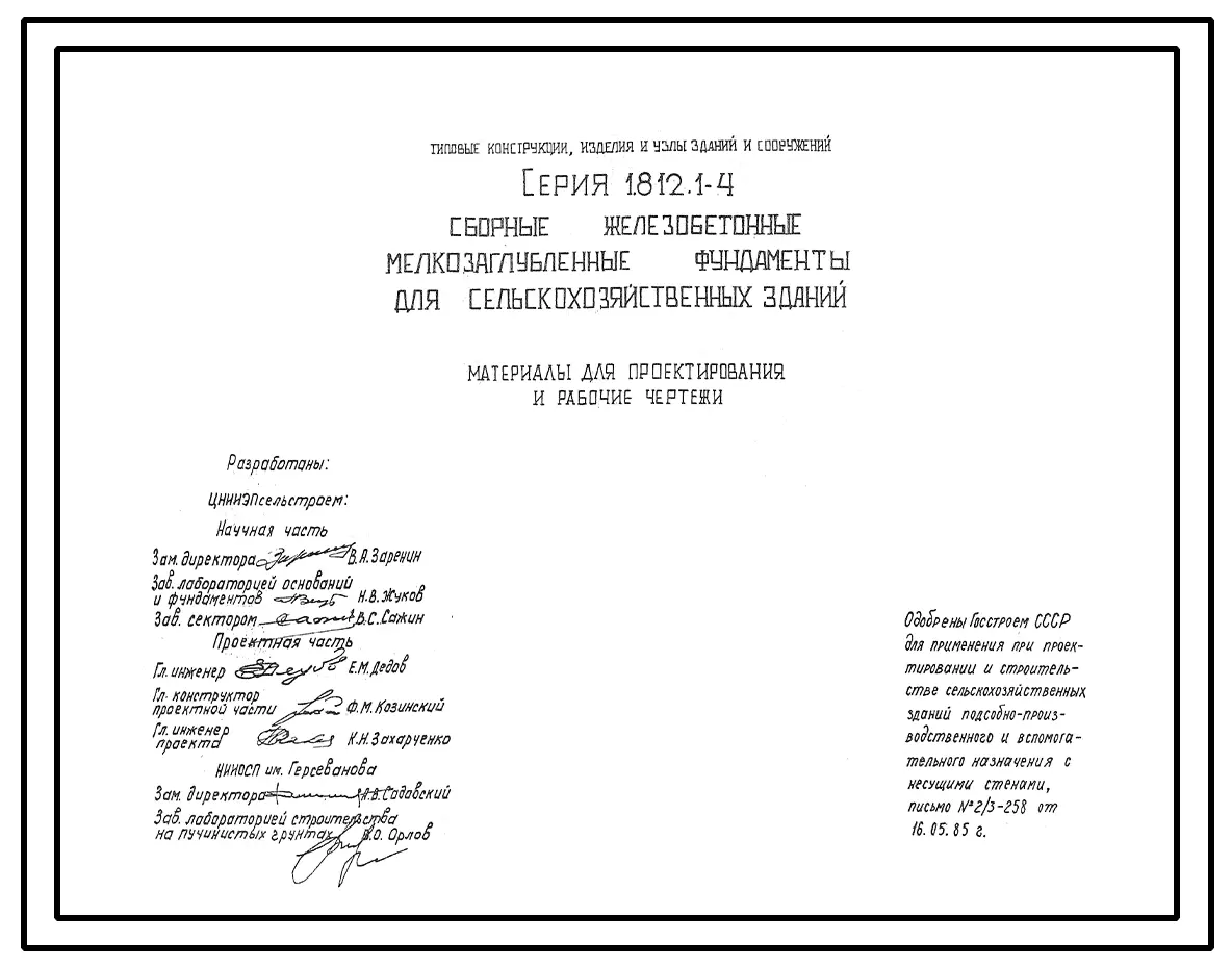 Серия 1.812.1-4 Сборные железобетонные мелкозаглубленные фундаменты для сельскохозяйственных зданий. Материалы для проектирования и рабочие чертежи