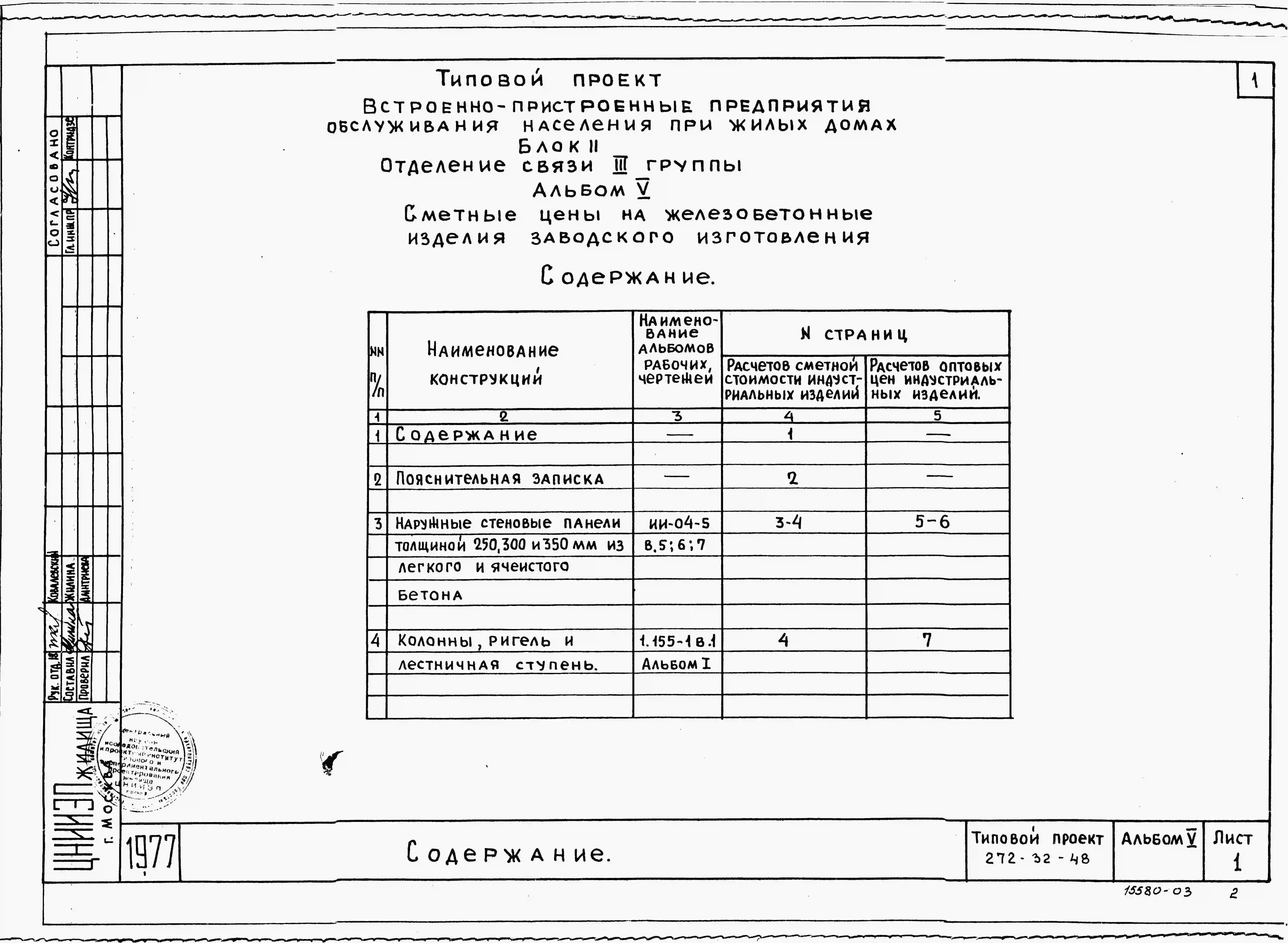 Типовой проект 272-32-48 Встроенно-пристроенные предприятия обслуживания населения при жилых домах. Блок 2. Отделение связи 3 группы