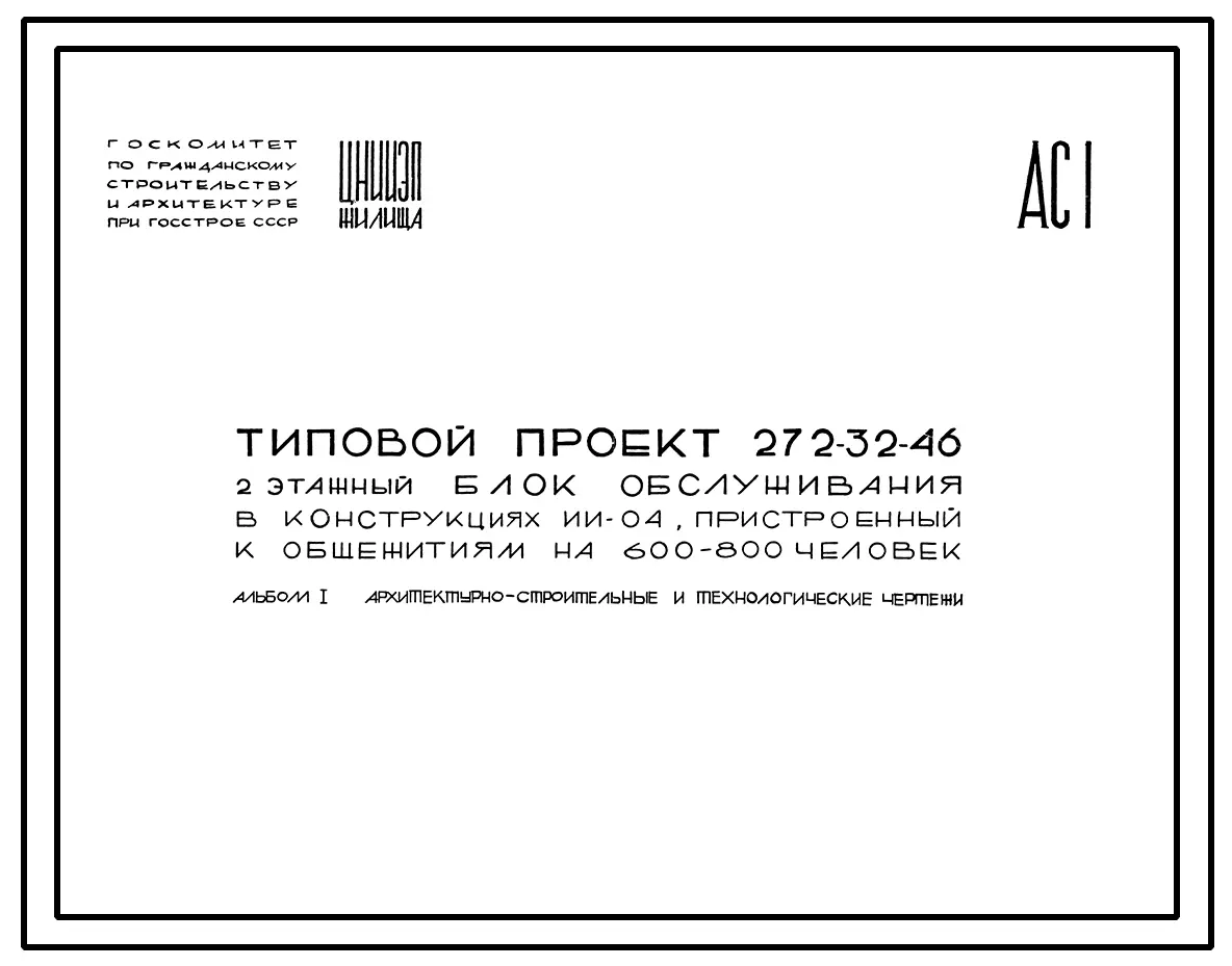 Типовой проект 272-32-46 Блок обслуживания, пристроенный к общежитиям на 600-800 человек, в конструкциях ИИ-04, для строительства в 1В климатическом подрайоне, 2 и 3 климатических районах