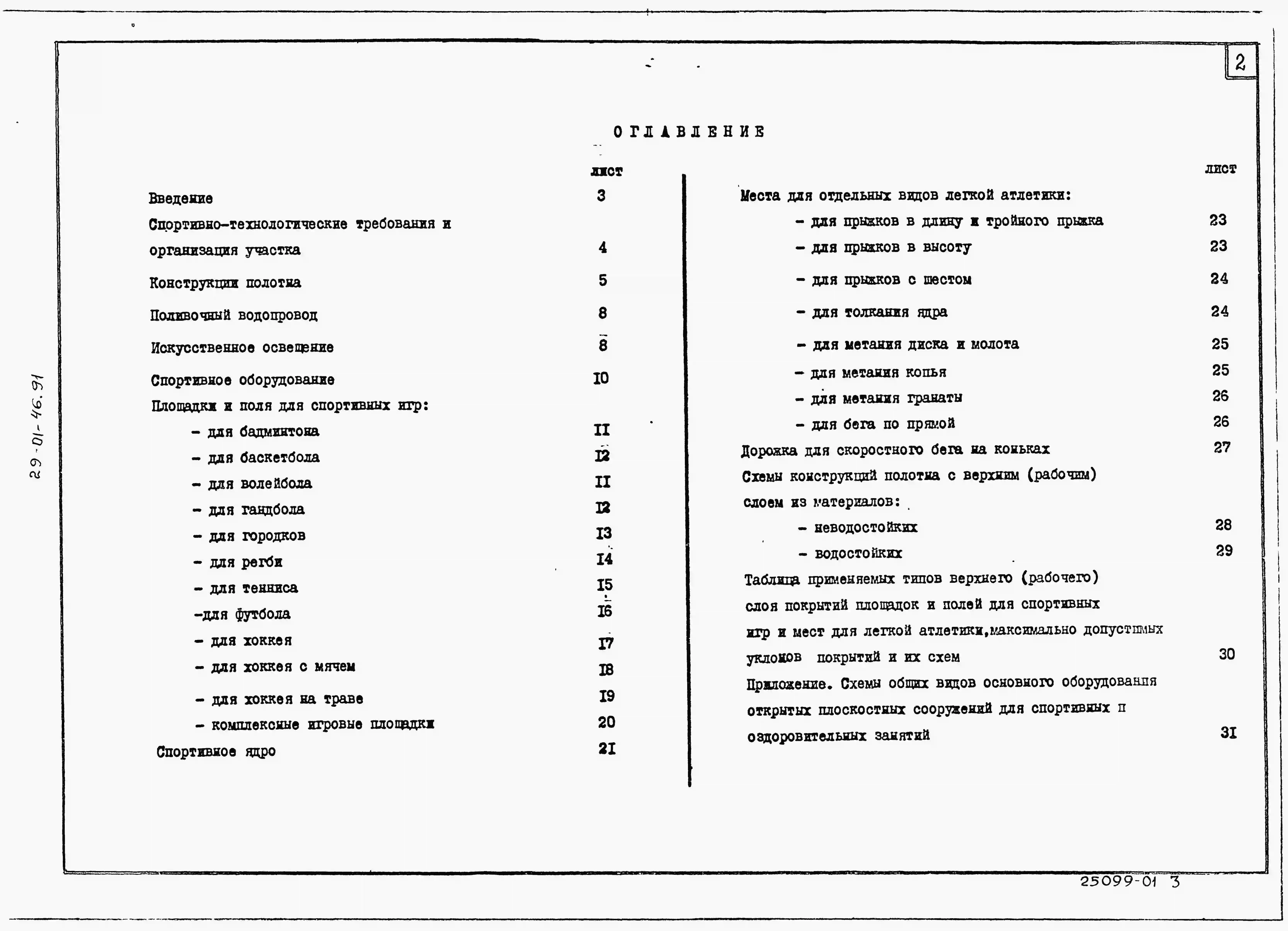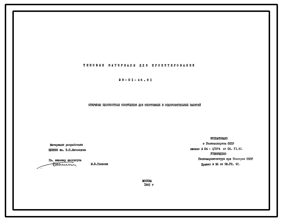 Типовой проект 29-01-46.91 Открытые плоскостные сооружения для спортивных и оздоровительных занятий