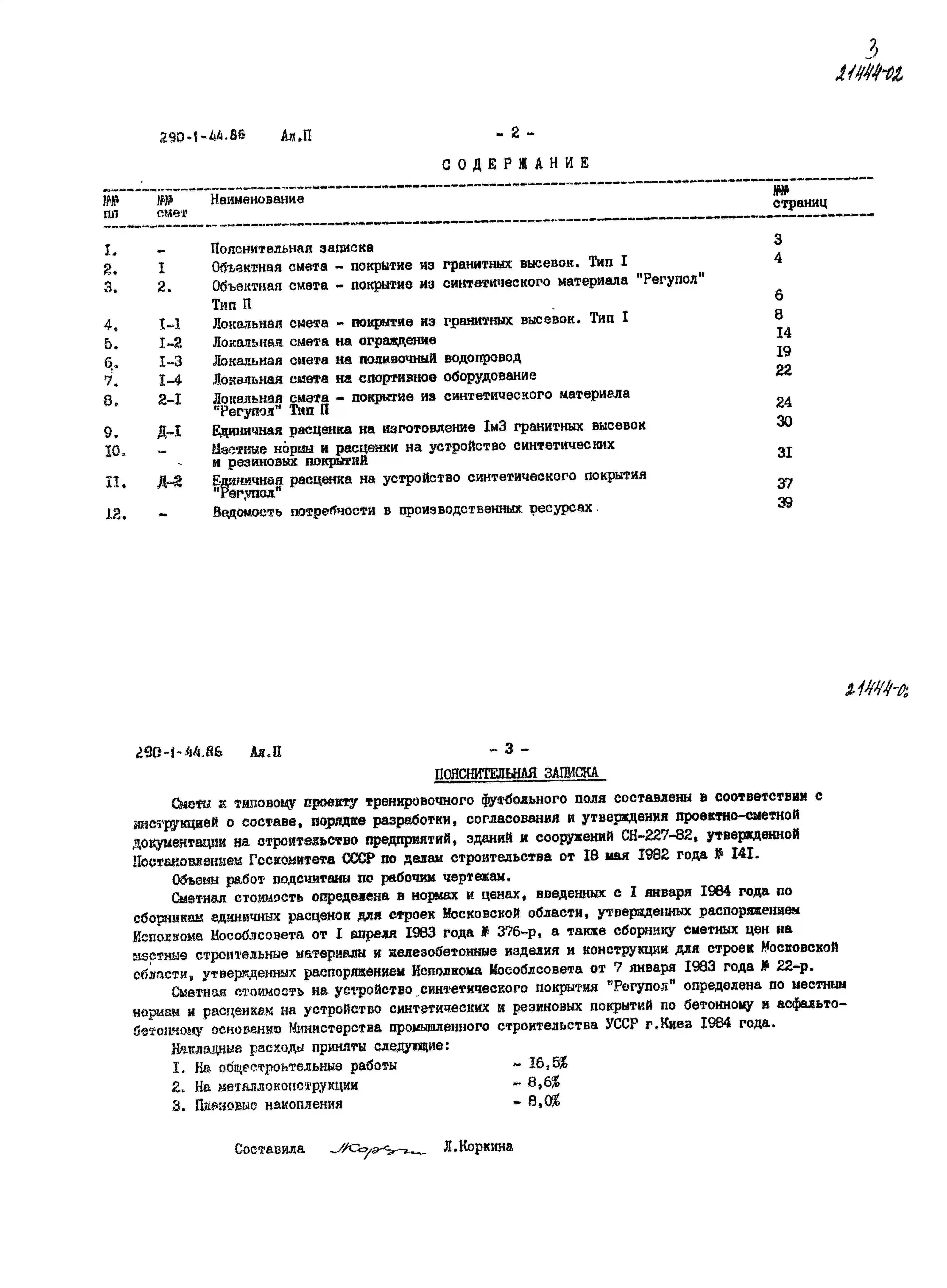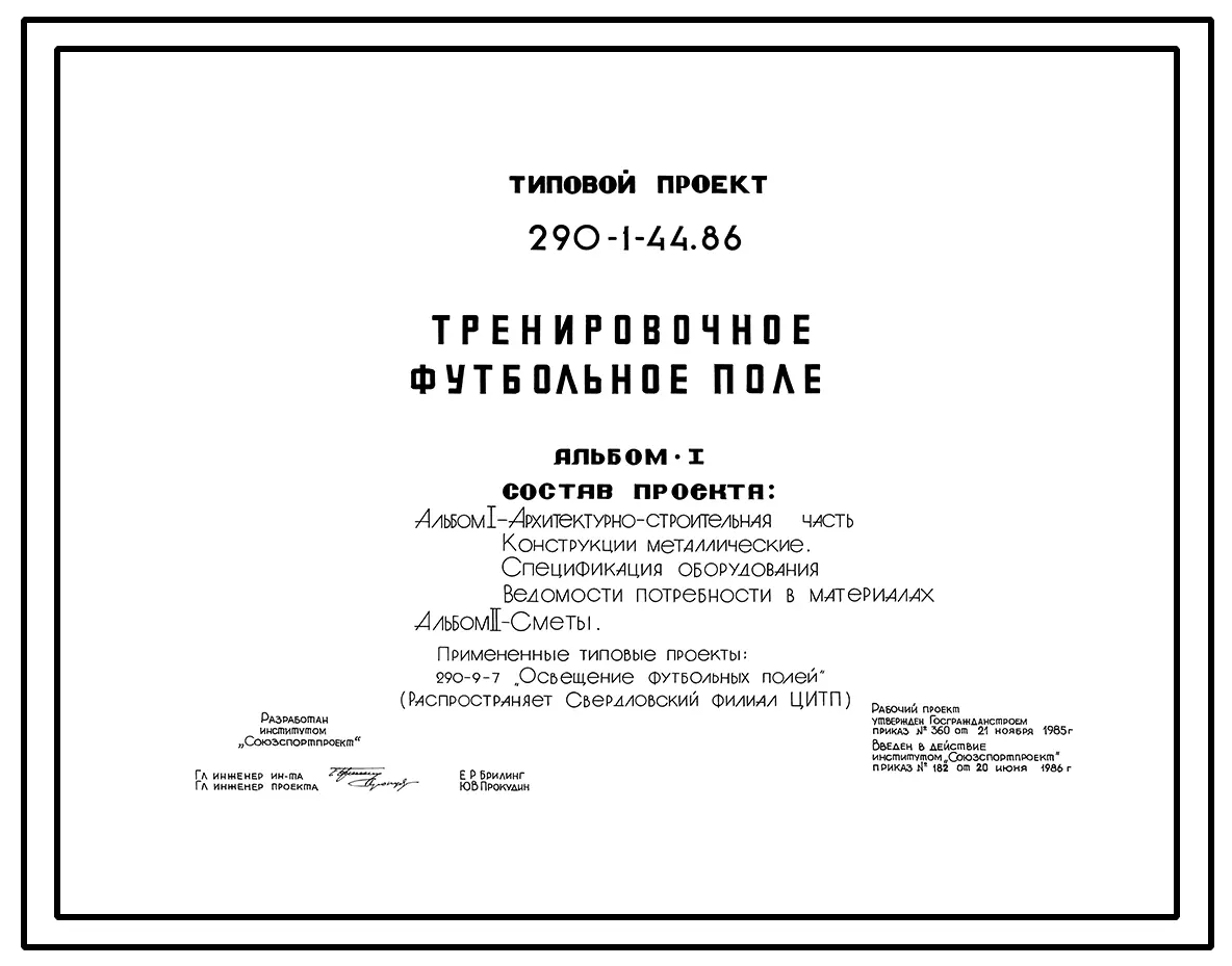 Типовой проект 290-1-44.86 Тренировочное футбольное поле