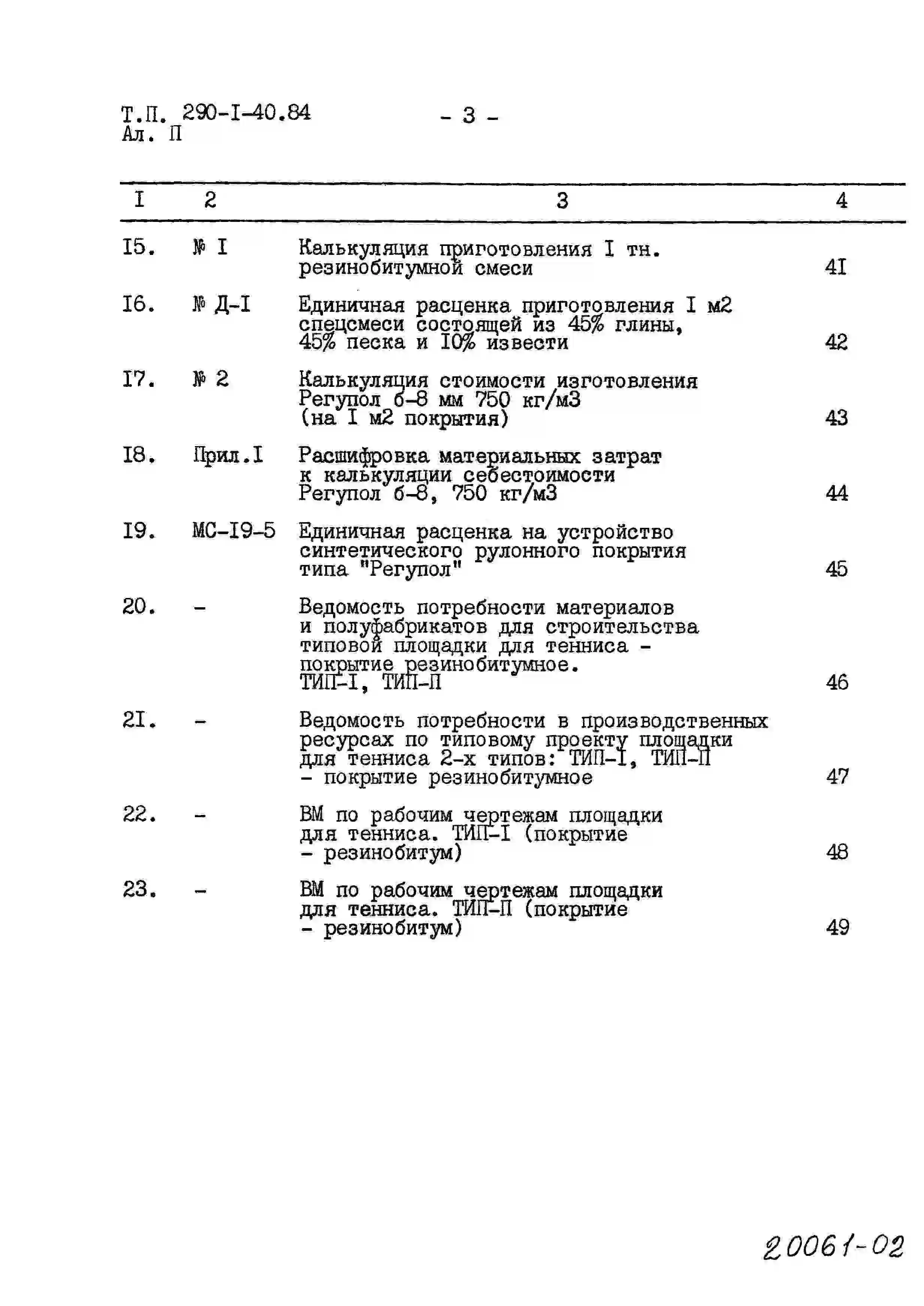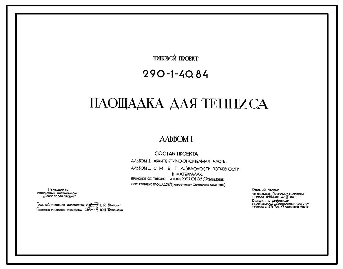Типовой проект 290-1-40.84 Площадка для тенниса