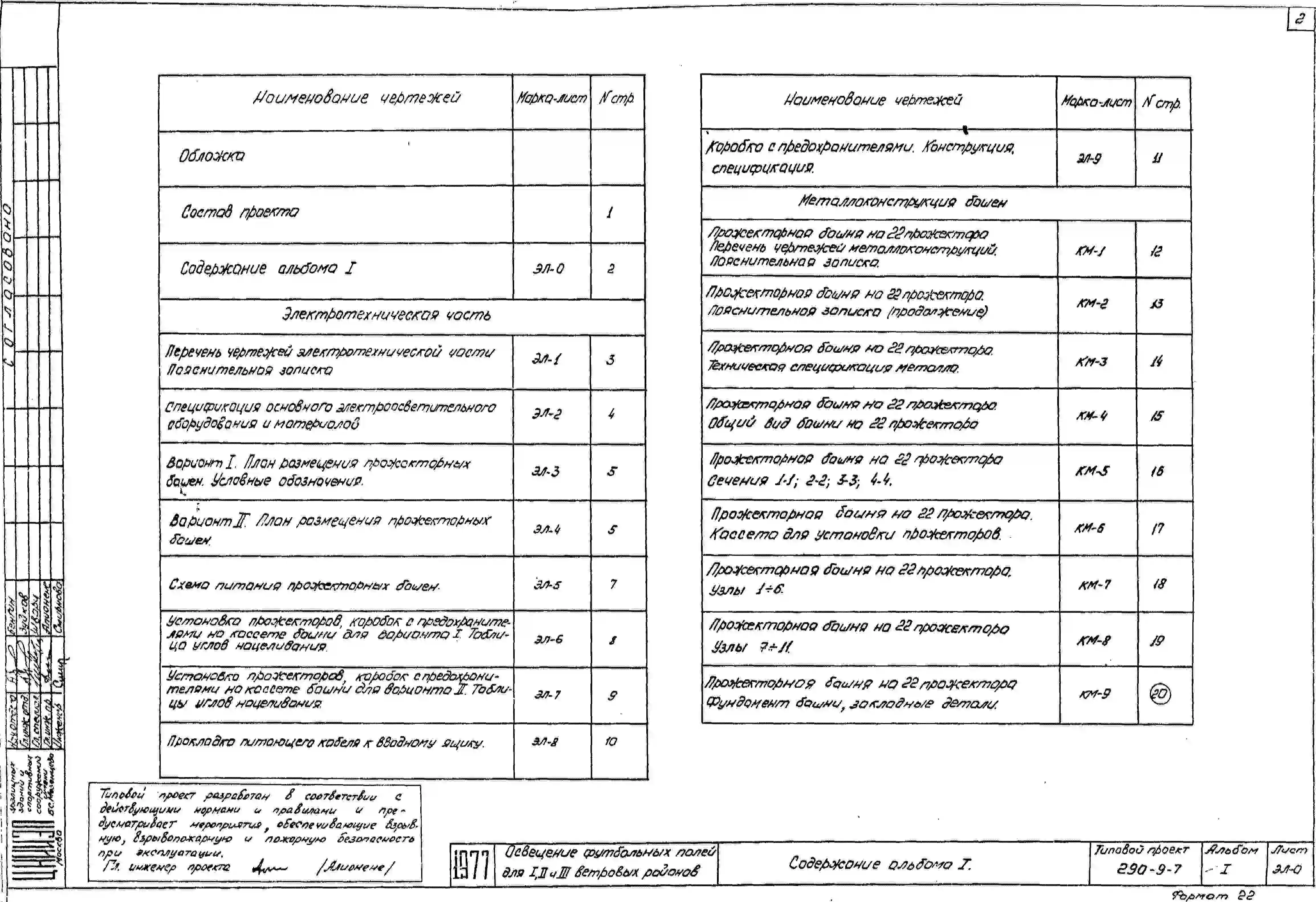 Типовой проект 290-9-7 Освещение футбольных полей (I, II, III ветровые районы)