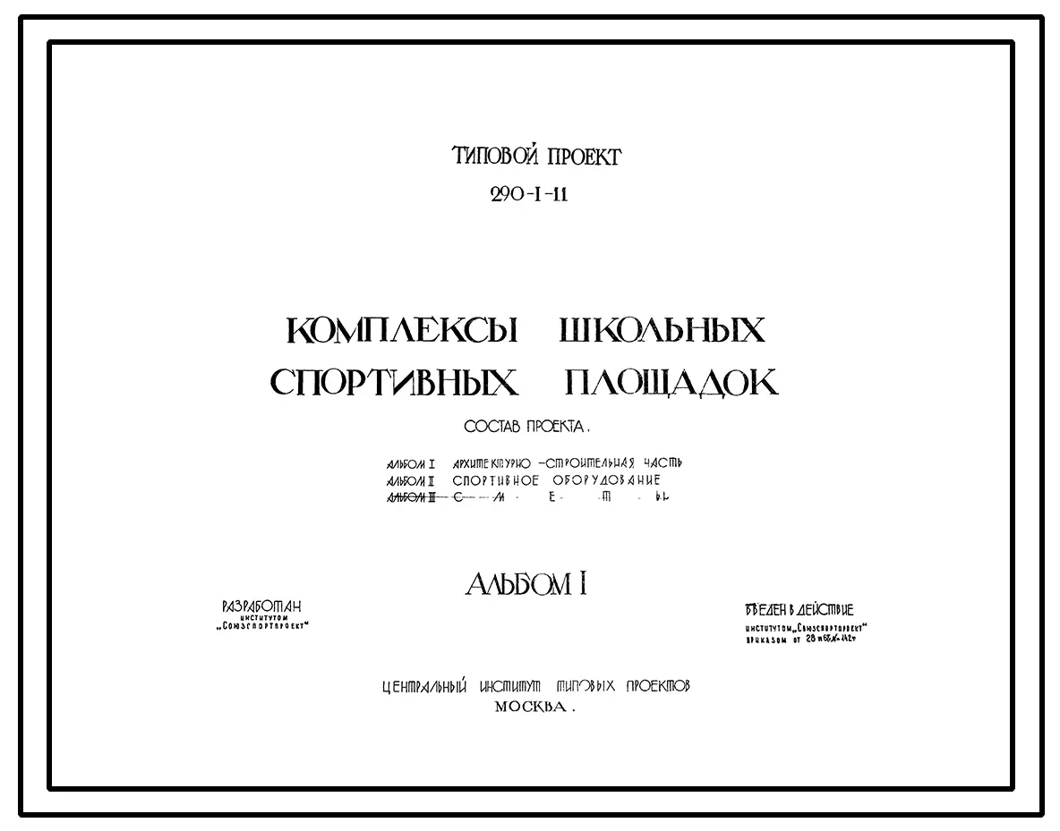 Типовой проект 290-1-11 Комплексы школьных спортивных площадок. Проект переведен в DWG формат.