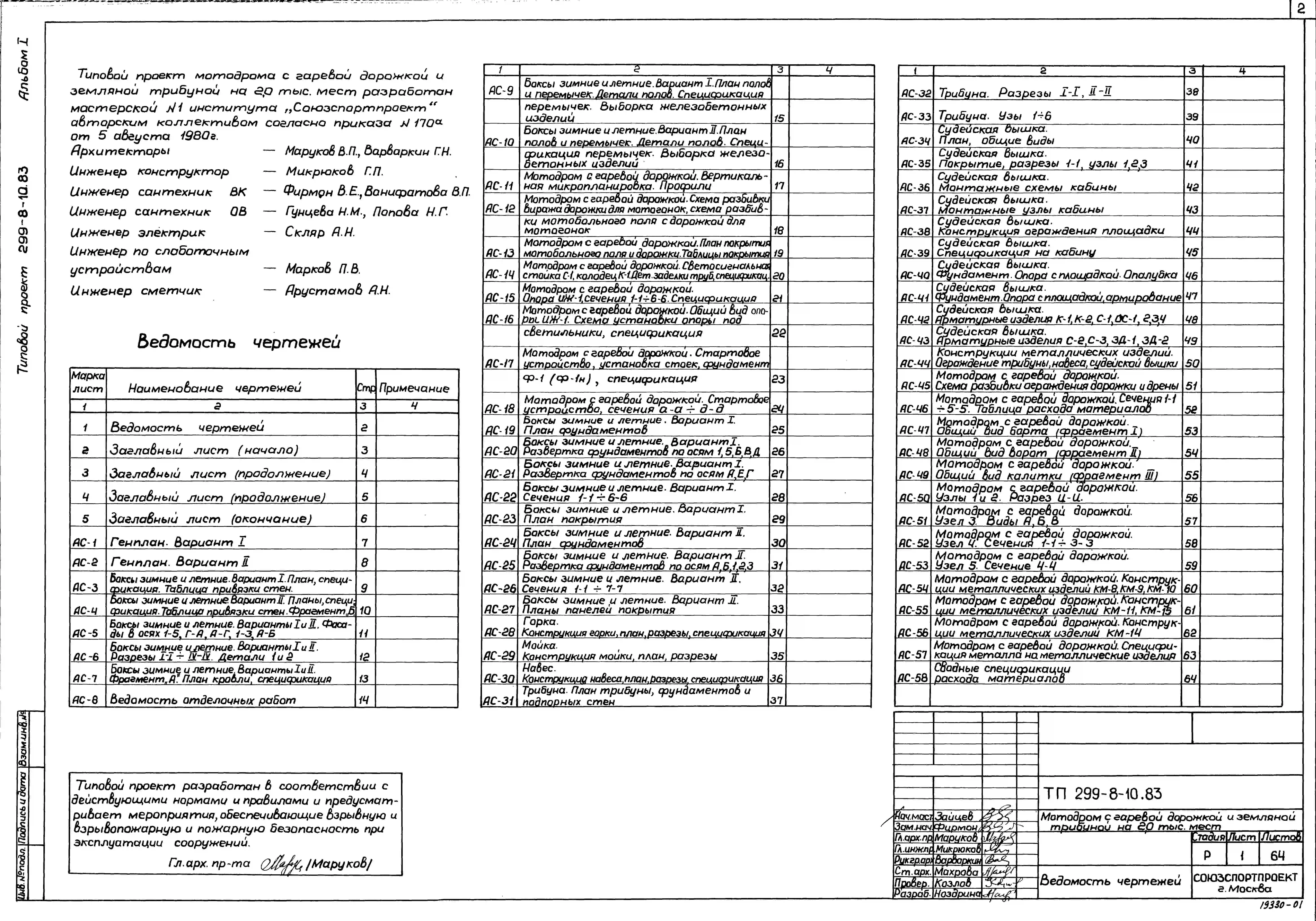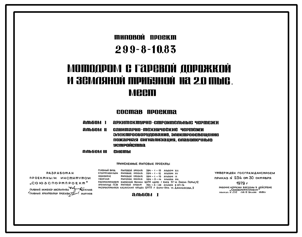 Типовой проект 299-8-10.83 Мотодром с гаревой дорожкой и земляной трибуной на 2 тыс. мест. Для строительства в 1В климатическом подрайоне, 2 и 3 климатических районах.