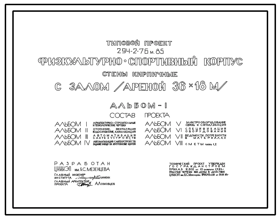 Типовой проект 294-2-76м.85 Физкультурно-спортивный корпус с залом (ареной) 30х18м. Грунты вечномерзлые, используемые по принципу I. Здание трехэтажное. Стены из кирпича.