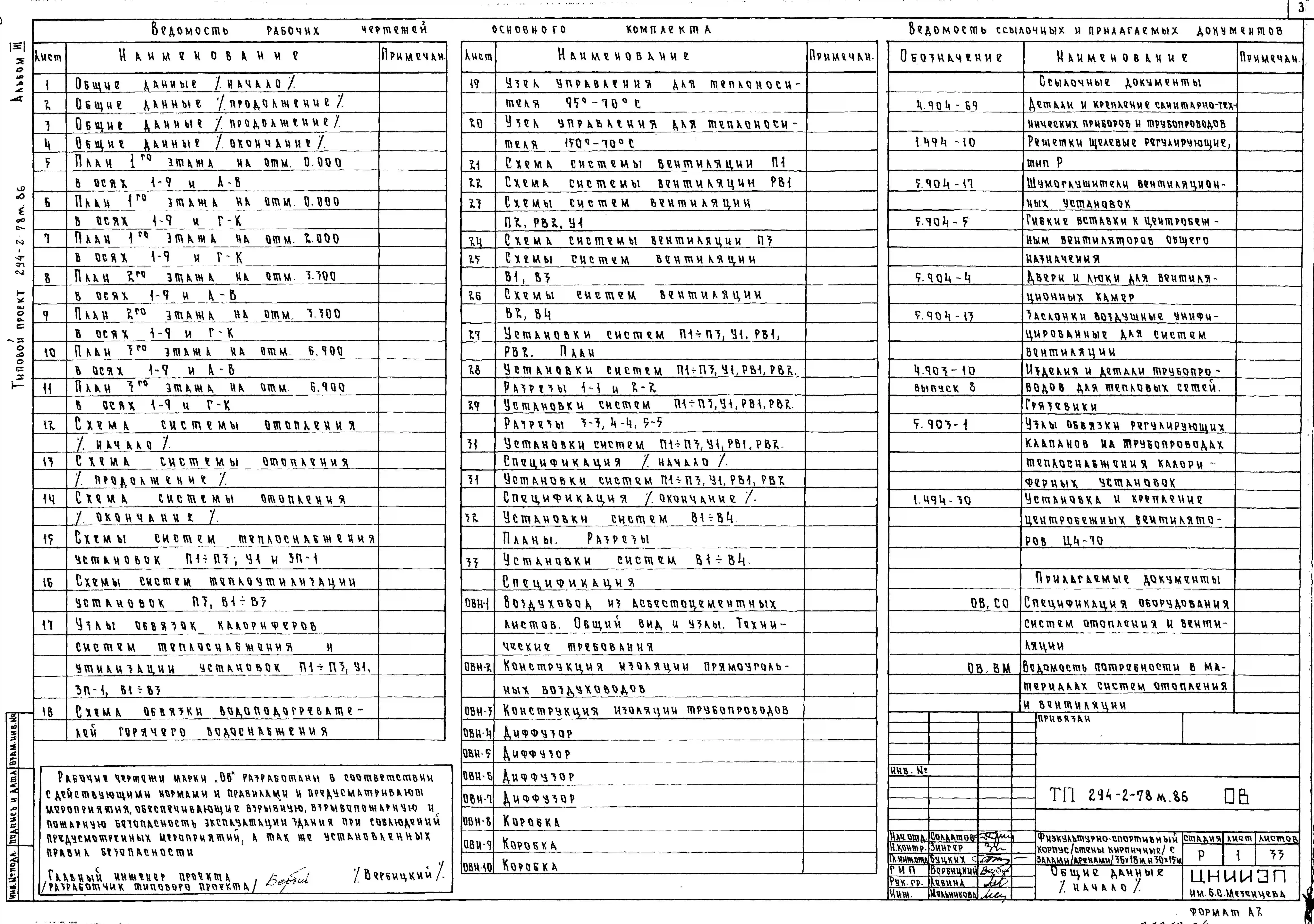 Внимание ! Паспорт проекта не является типовым проектом и не заменяет его.