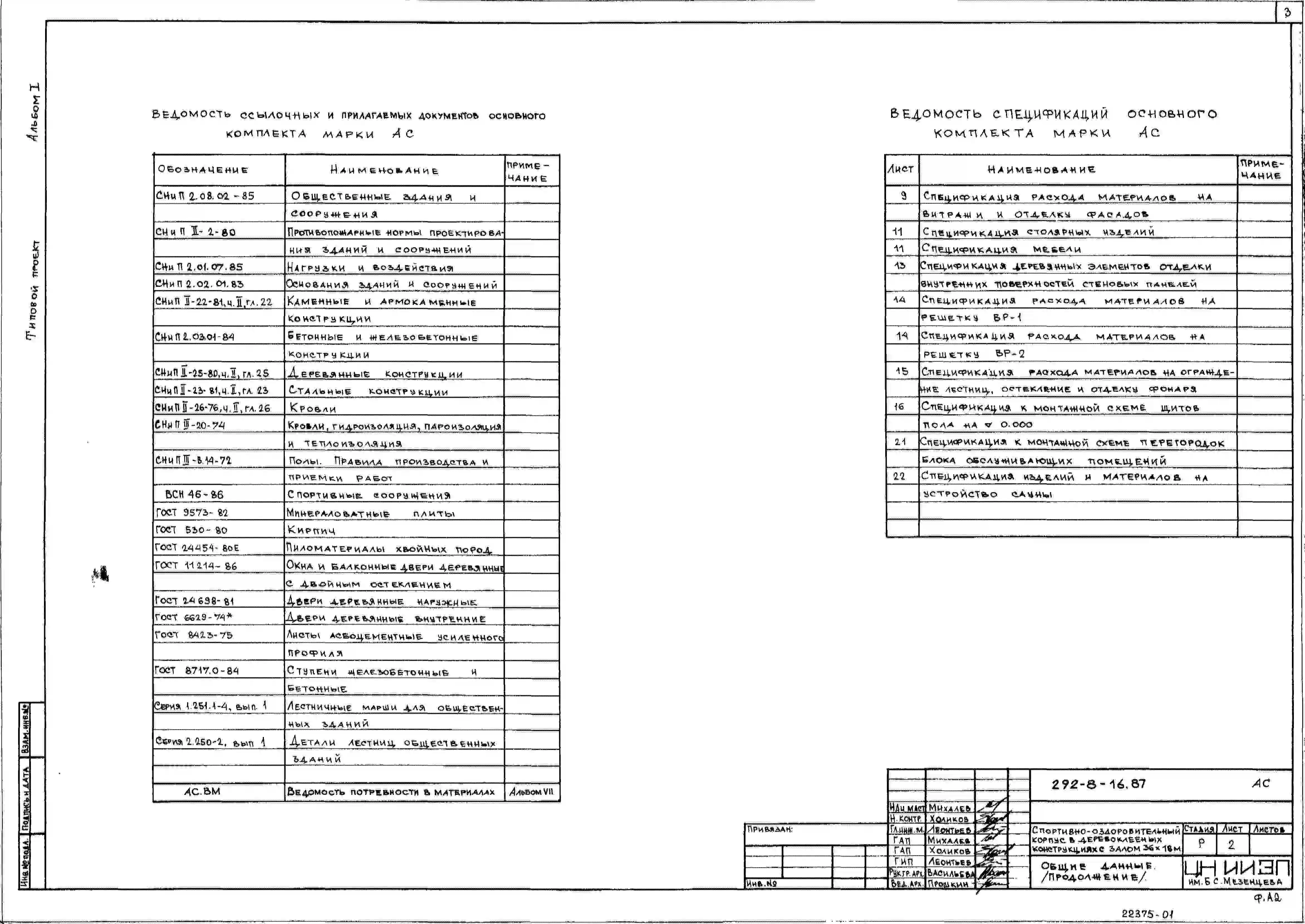 Типовой проект 292-8-16.87 Спортивно-оздоровительный корпус в деревоклееных конструкциях с залом 30х18м с вариантом применения экструзионных панелей комплектной поставки. Здание одноэтажное. Стены из панелей с деревянным каркасом.