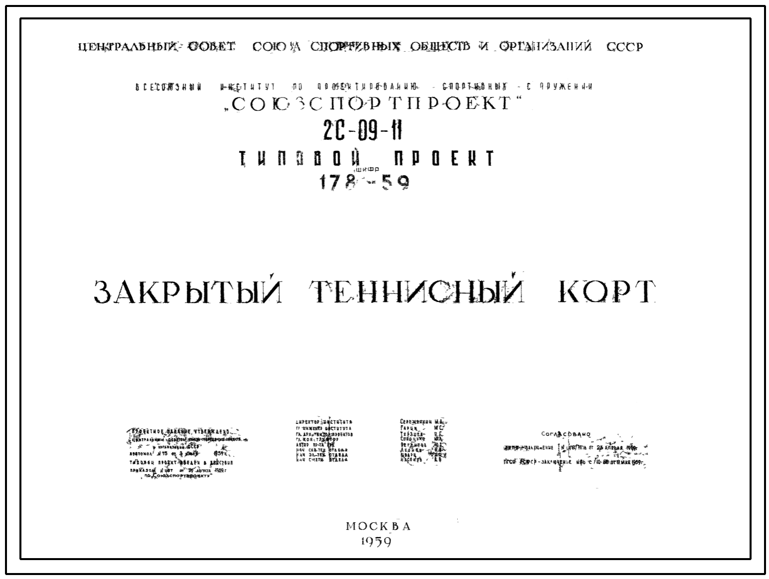 Типовой проект 2С-09-11 Закрытый тенистый корт (Шифр 178-89)