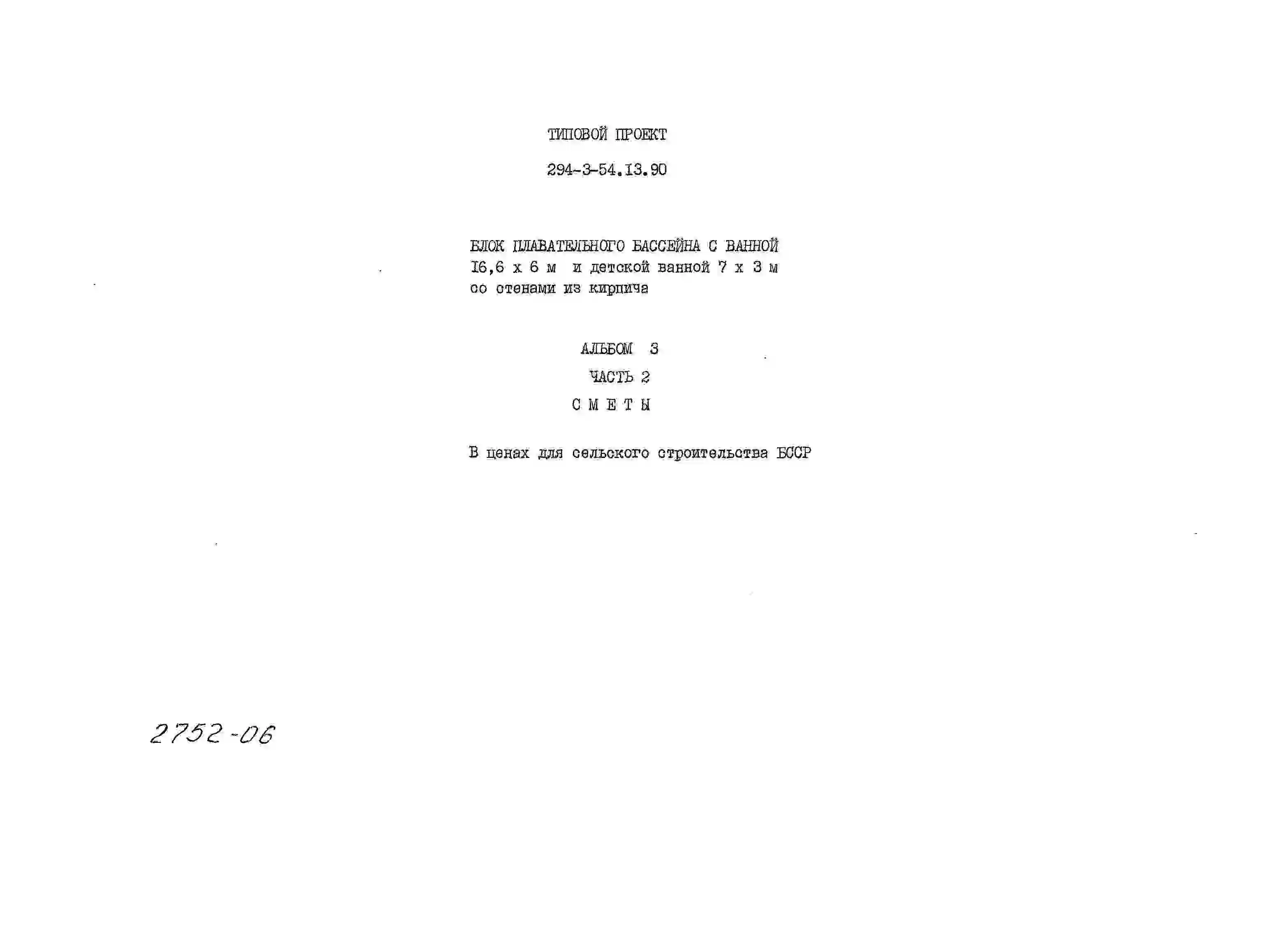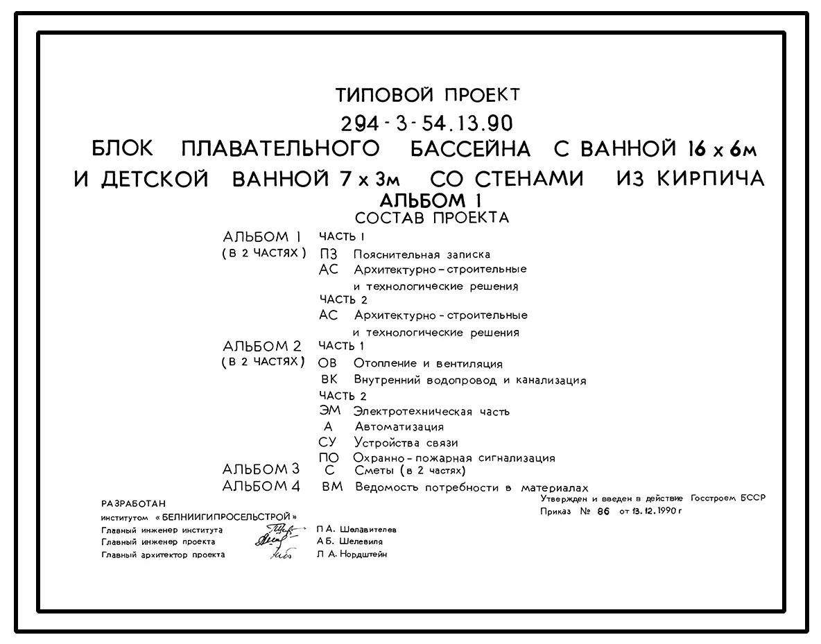 Типовой проект 294-3-54.13.90 Блок плавательного бассейна с ванной 16,6х6м и детской ванной 7х3м со стенами из кирпича