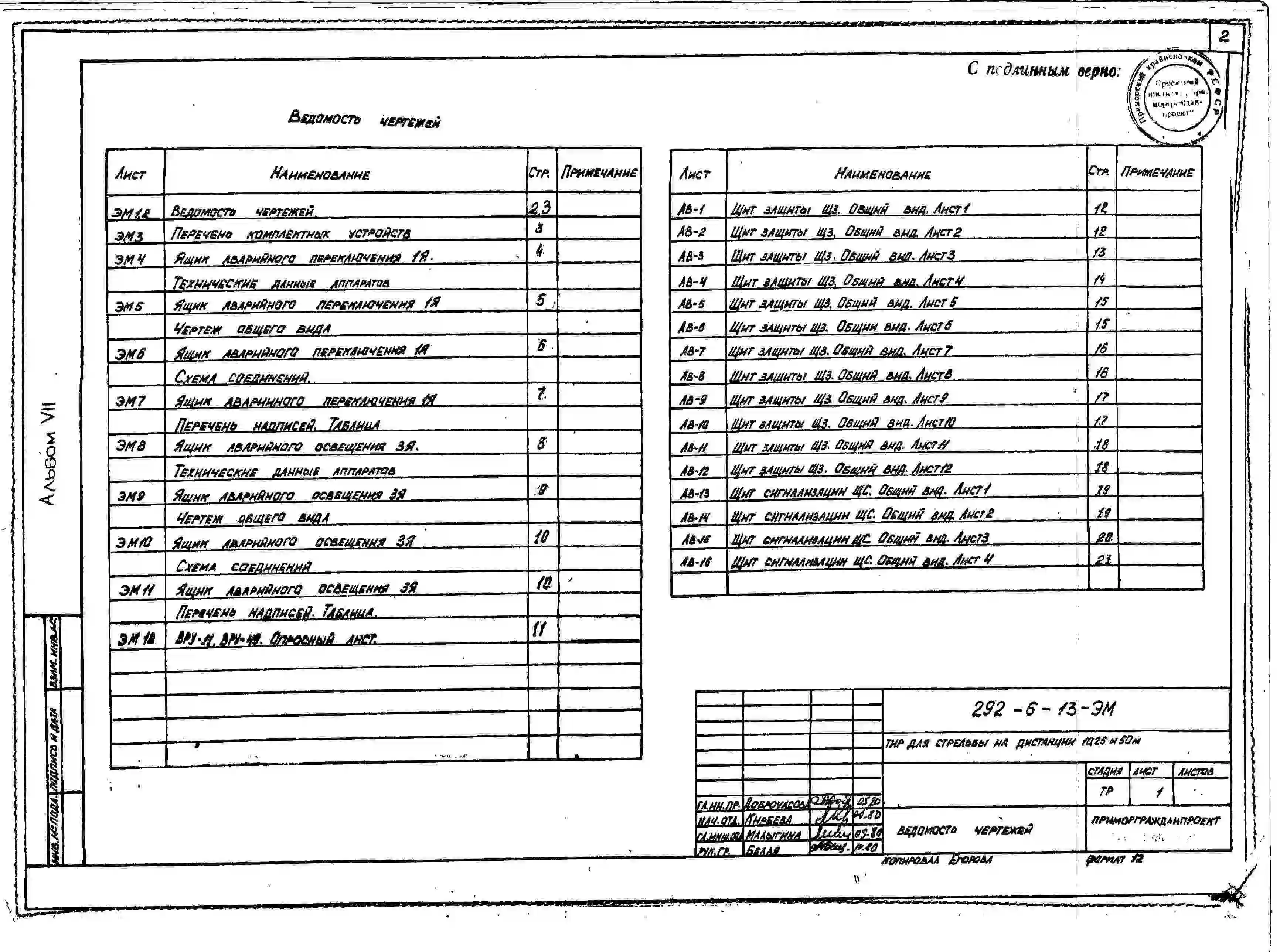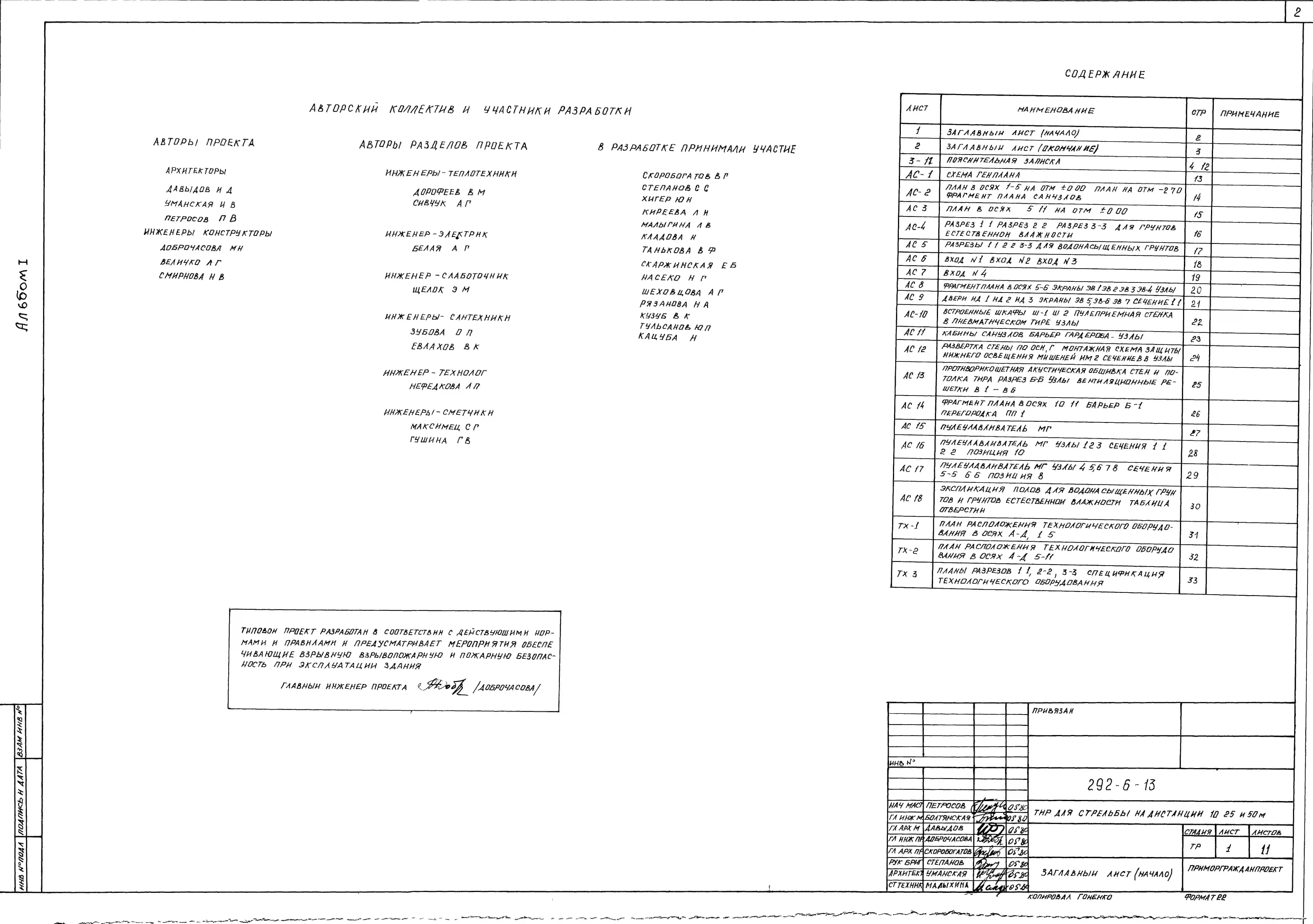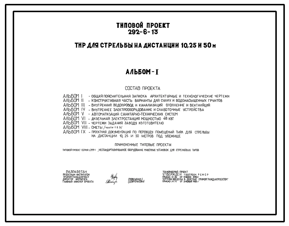 Типовой проект 292-6-13 Тир для стрельбы на дистанции 10, 25 и 50 м. Расположение-подземное.