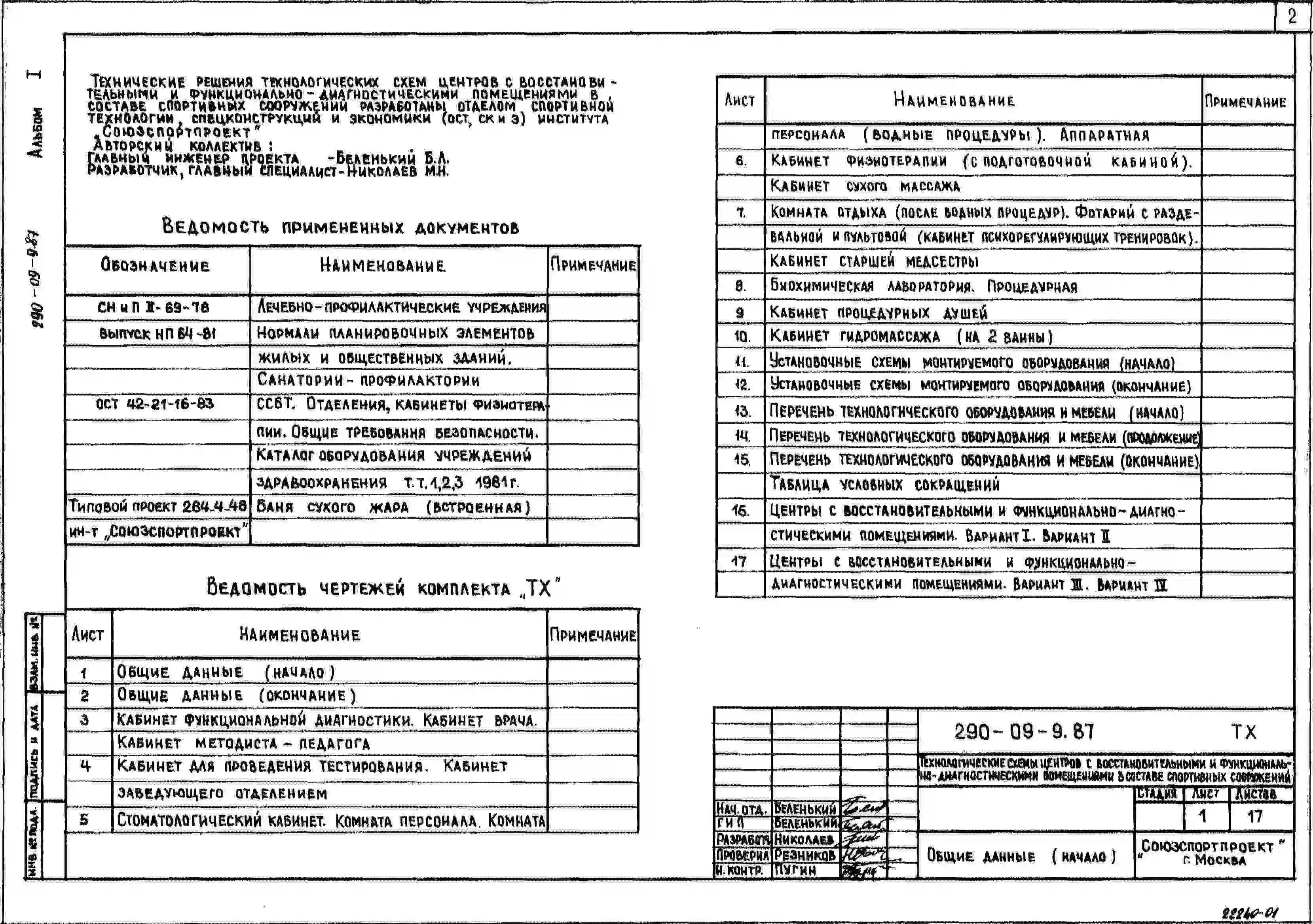 Типовой проект 290-09-9.87 Технологические схемы центров с восстановительными и функционально-диагностическими помещениями в составе спортивных сооружений