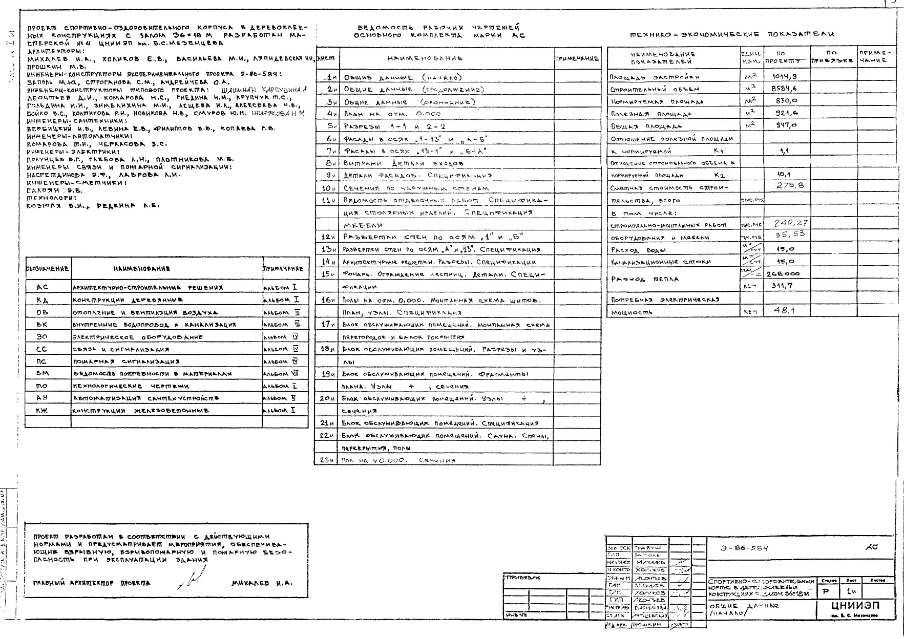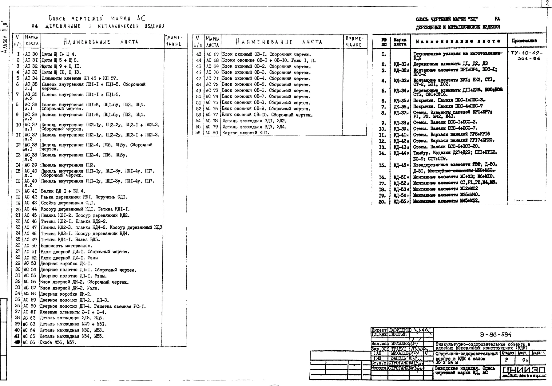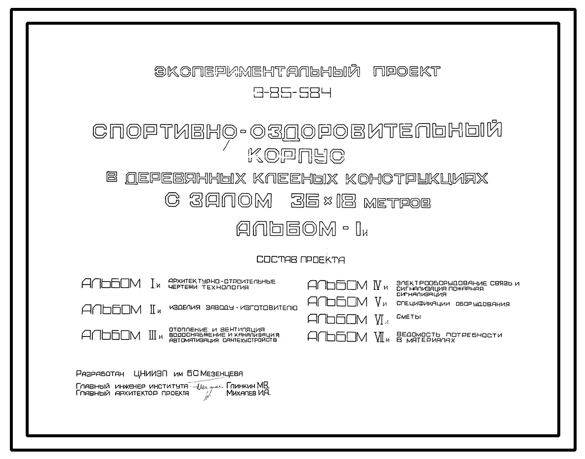 Типовой проект Э-86-584 Спортивно-оздоровительный корпус в деревянных клееных конструкциях с залом 36х18 метров