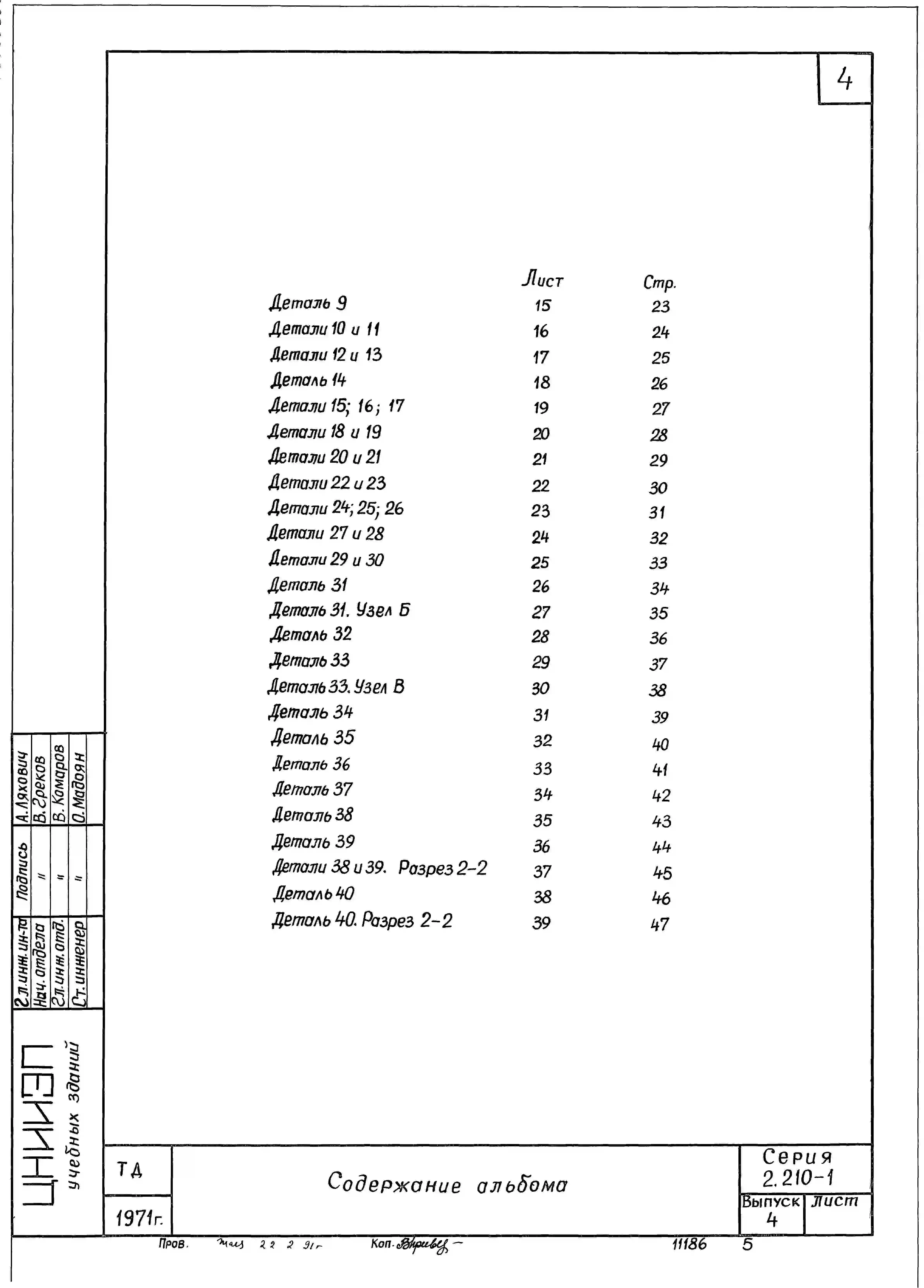 - наличия/отсутствия в конкретном проекте (при наличии чертежей, а не только паспорта проекта) нужных разделов