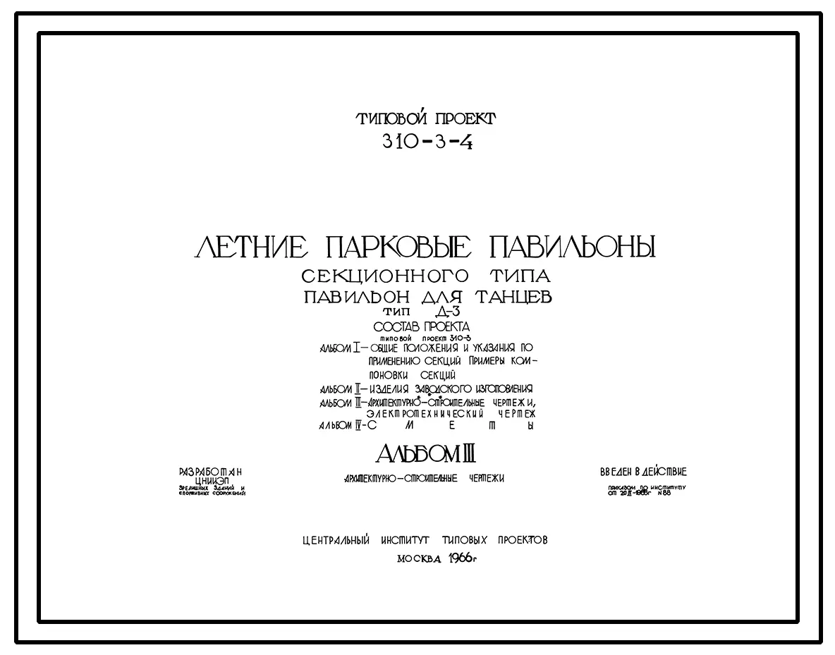 Типовой проект 310-3-4 Летние парковые павильоны секционного типа. Павильон для танцев тип Д-3