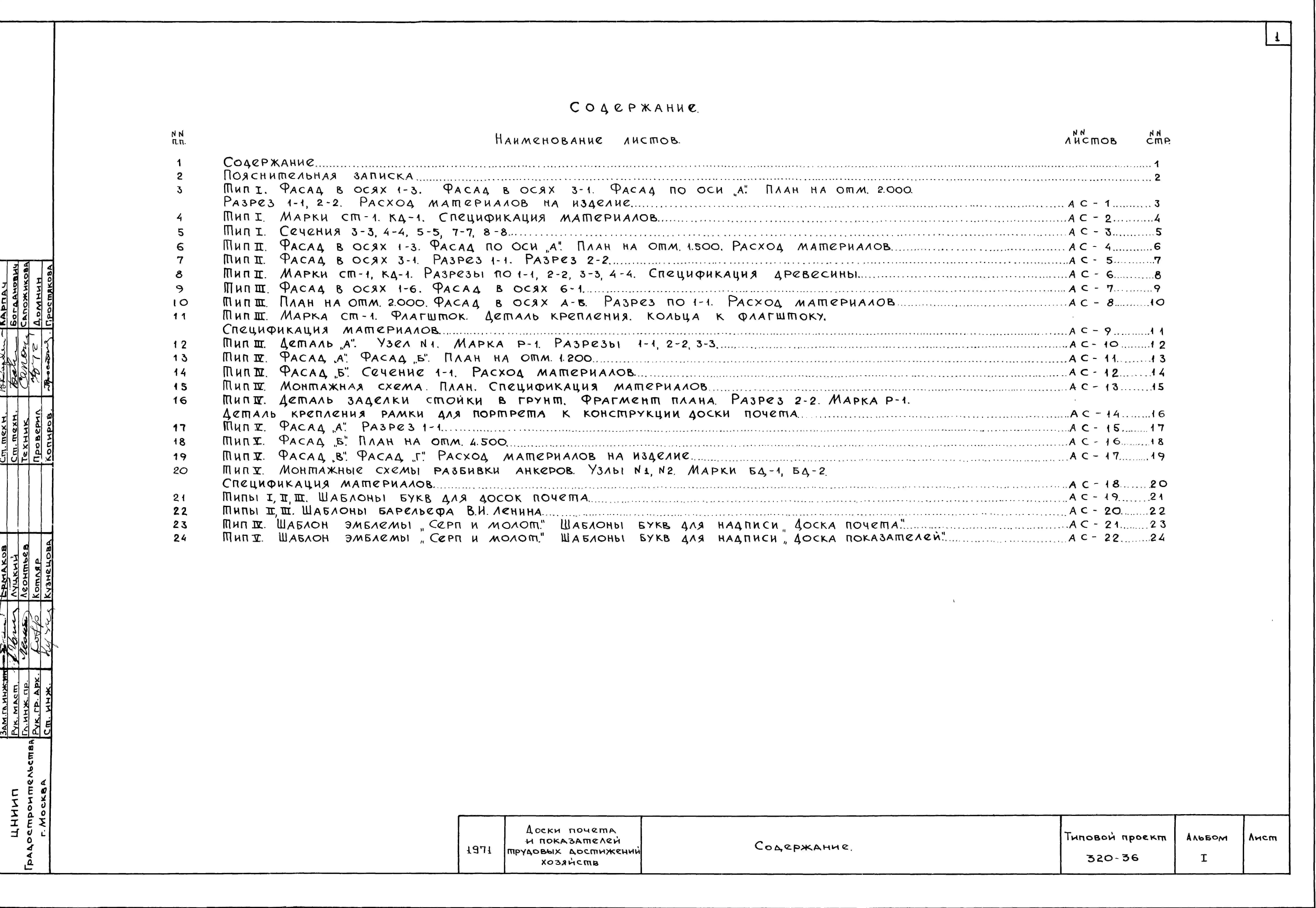 Типовой проект 320-36 Доски почета и показателей трудовых достижений хозяйств.