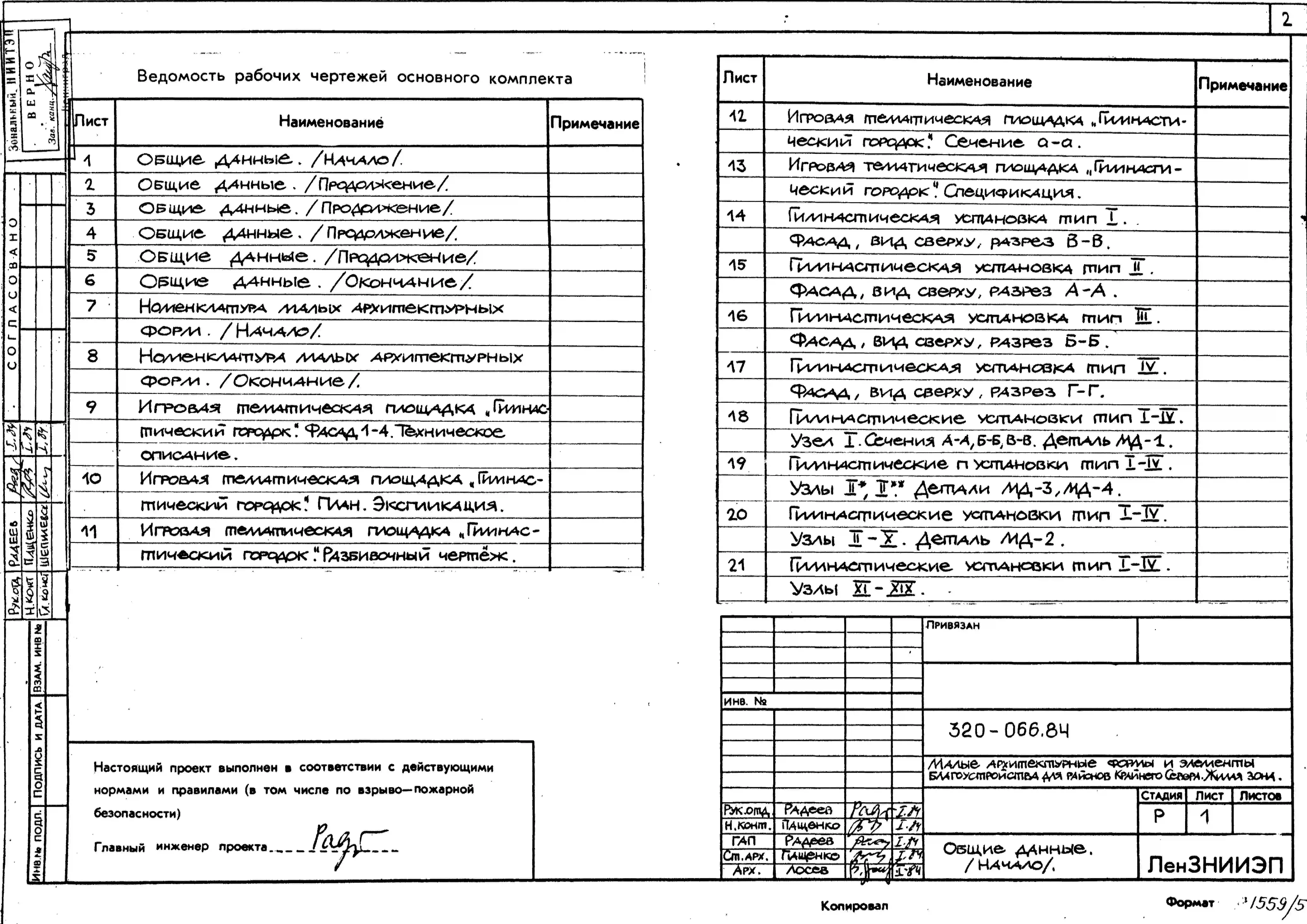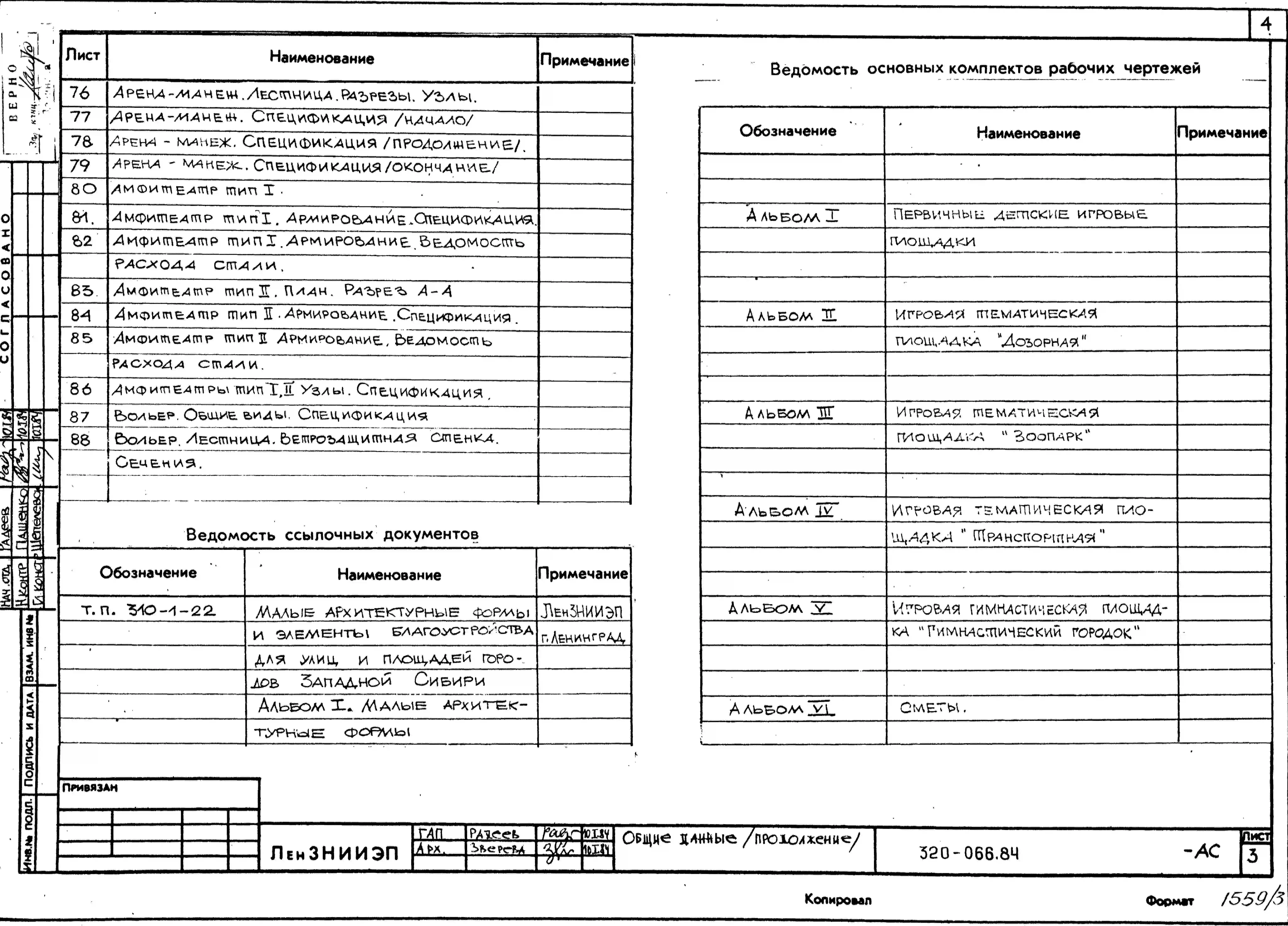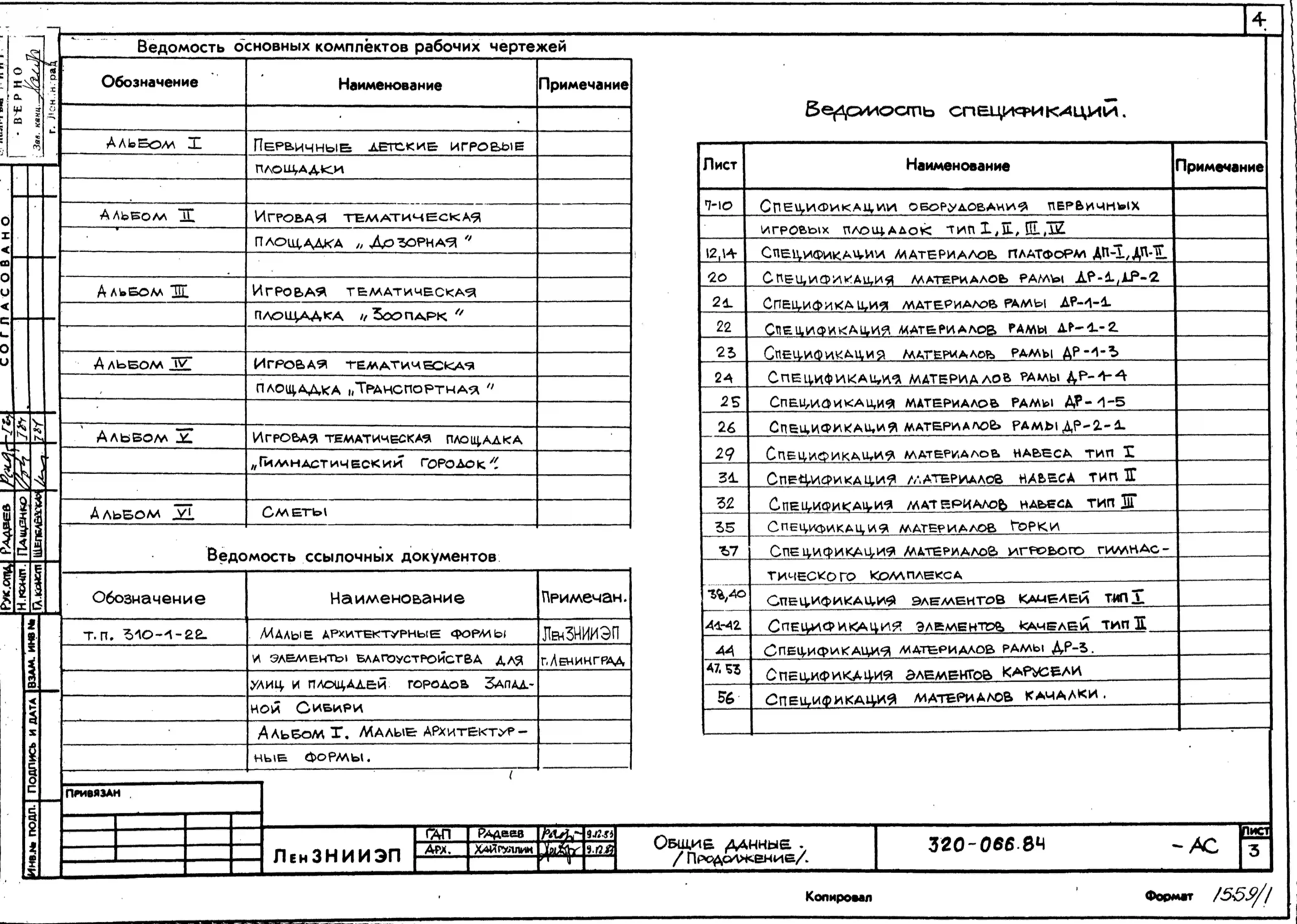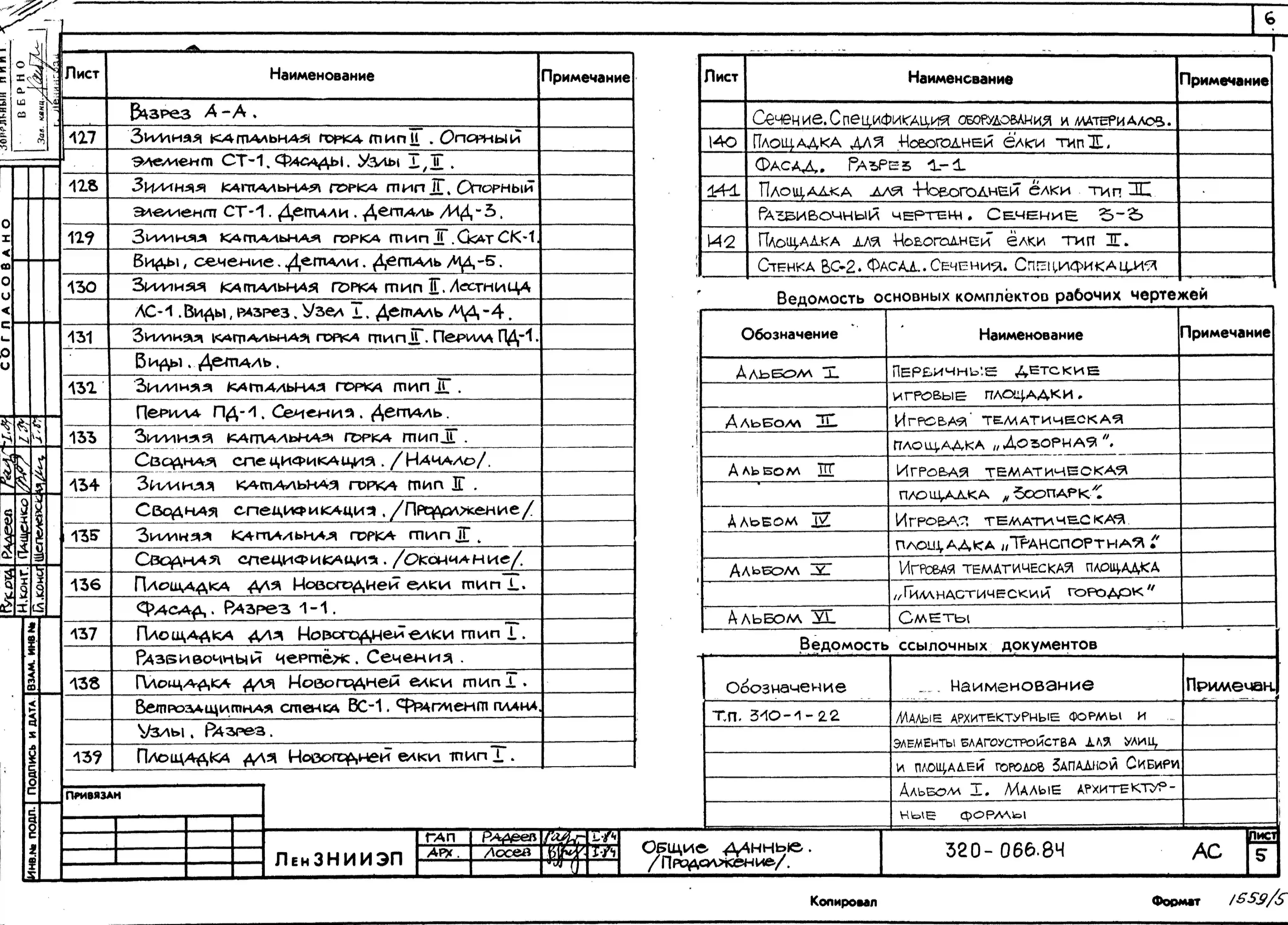 Типовой проект 320-066.84 Малые архитектурные формы и элементы благоустройства для районов Крайнего Севера. Жилая зона