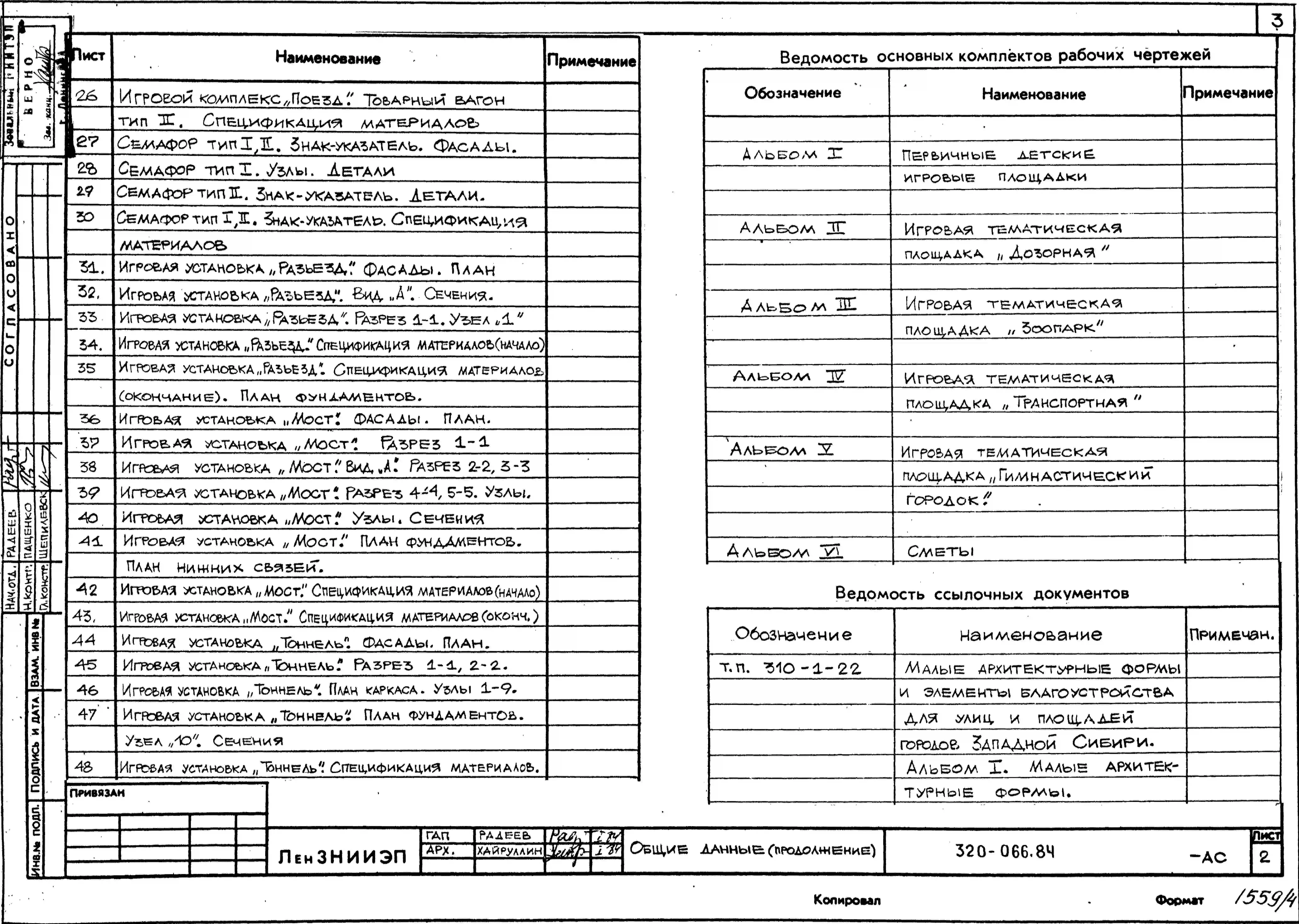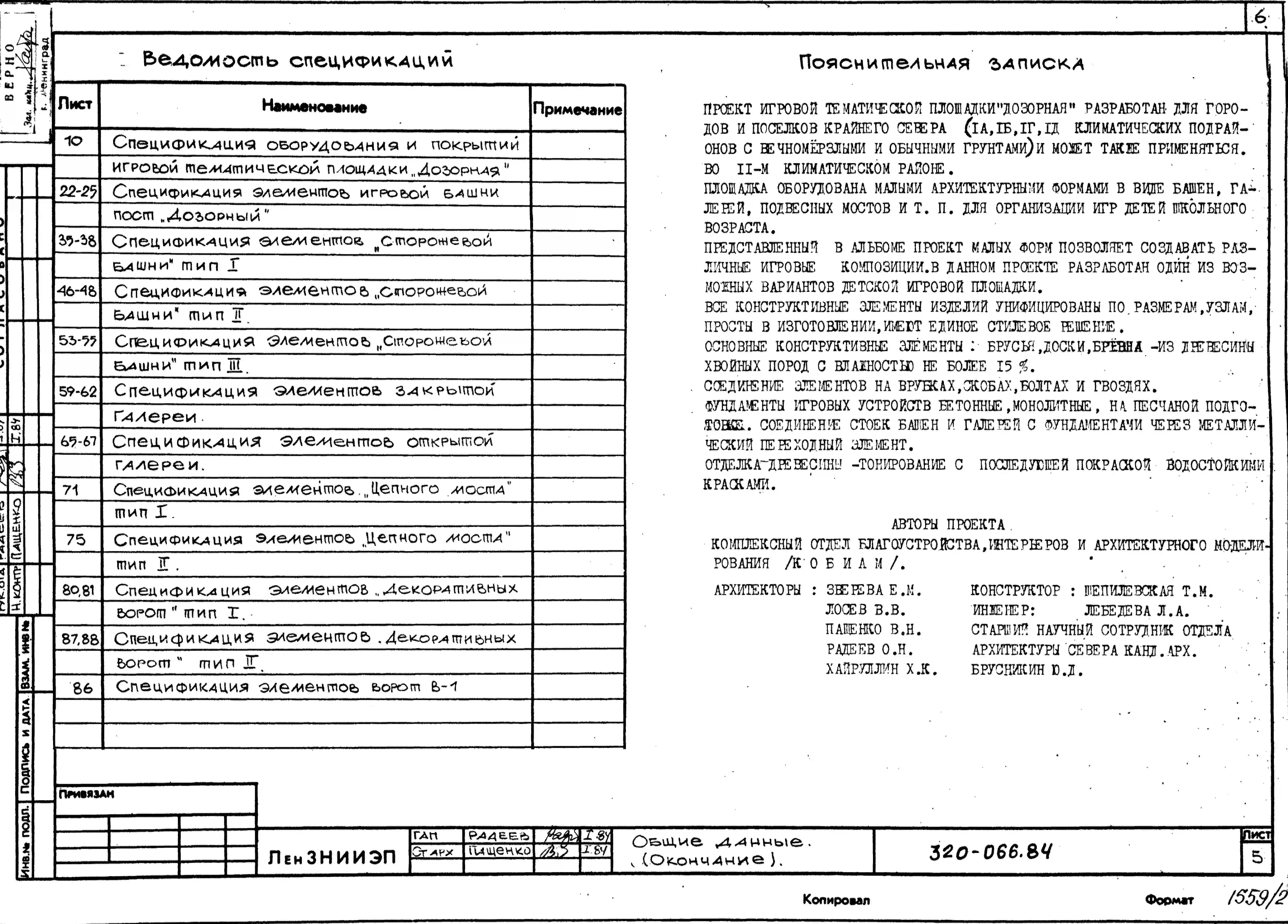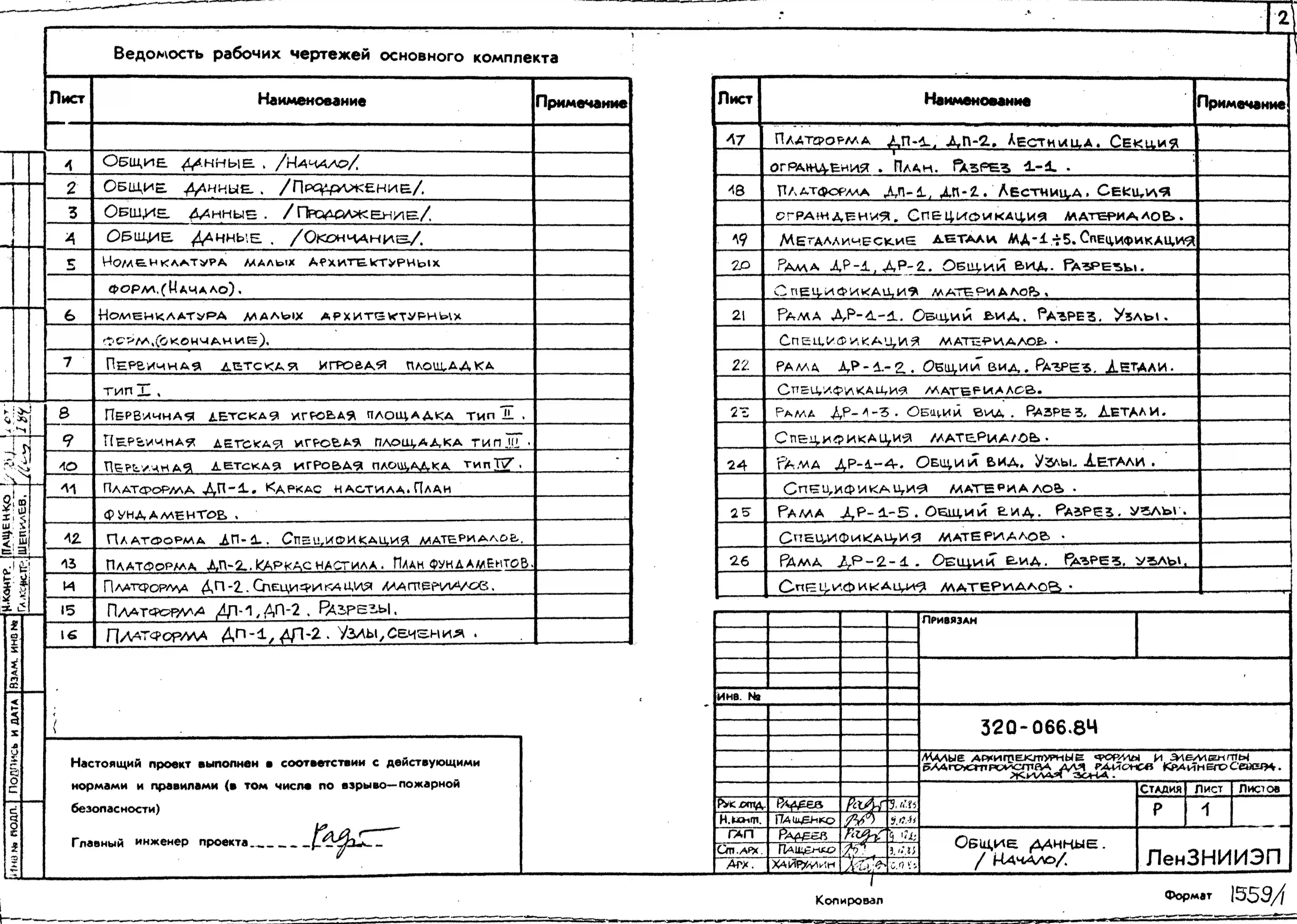 Типовой проект 320-066.84 Малые архитектурные формы и элементы благоустройства для районов Крайнего Севера. Жилая зона