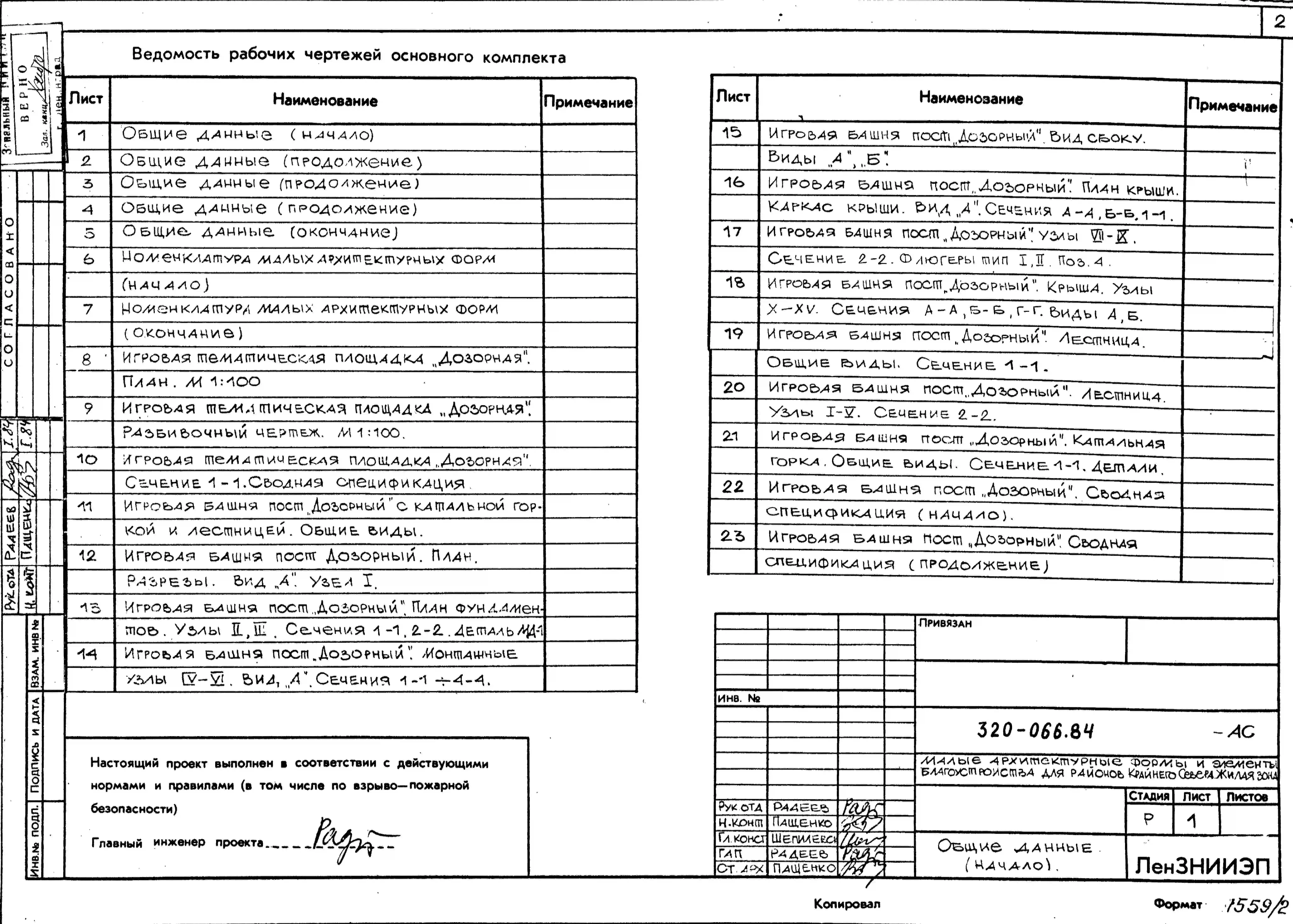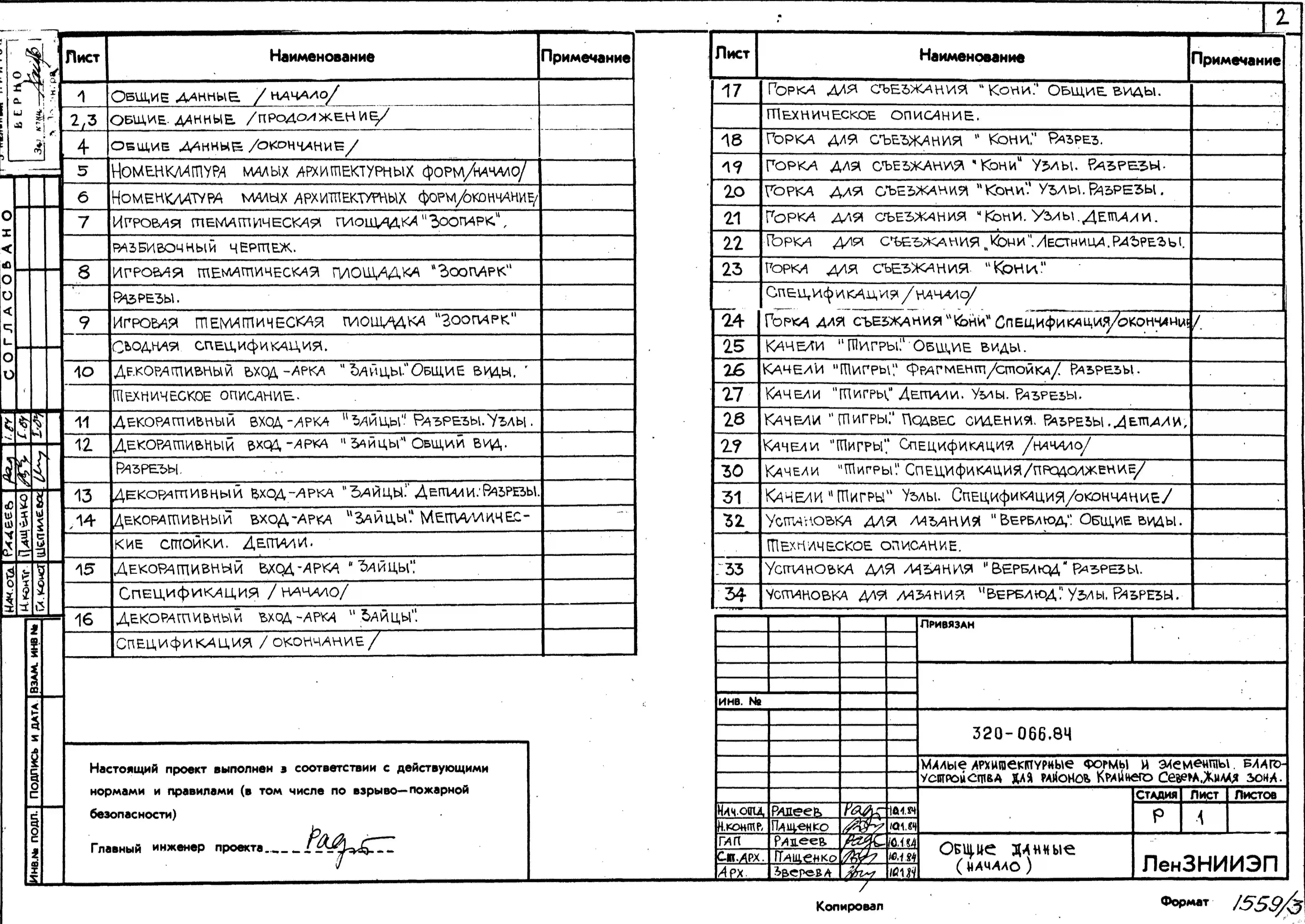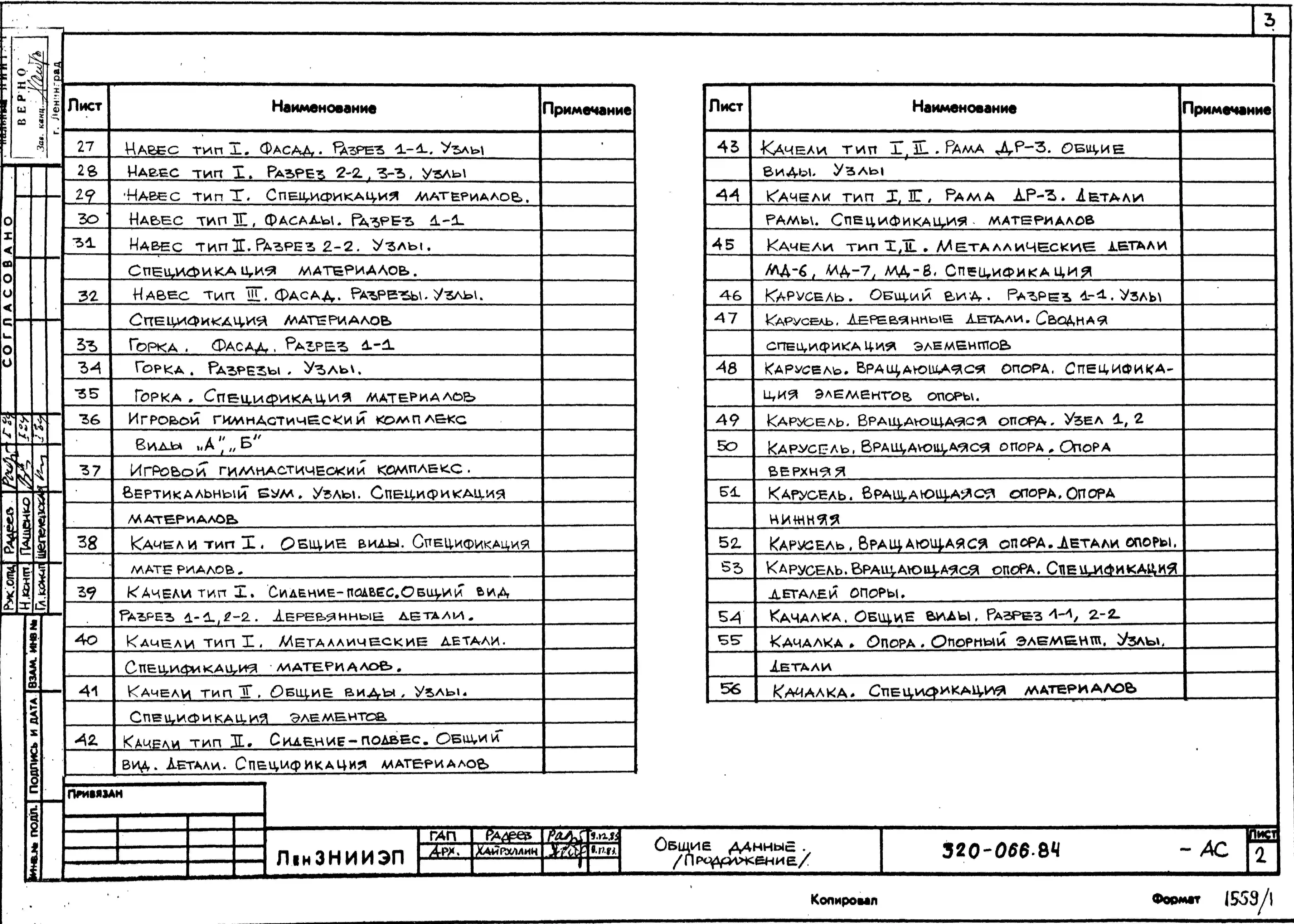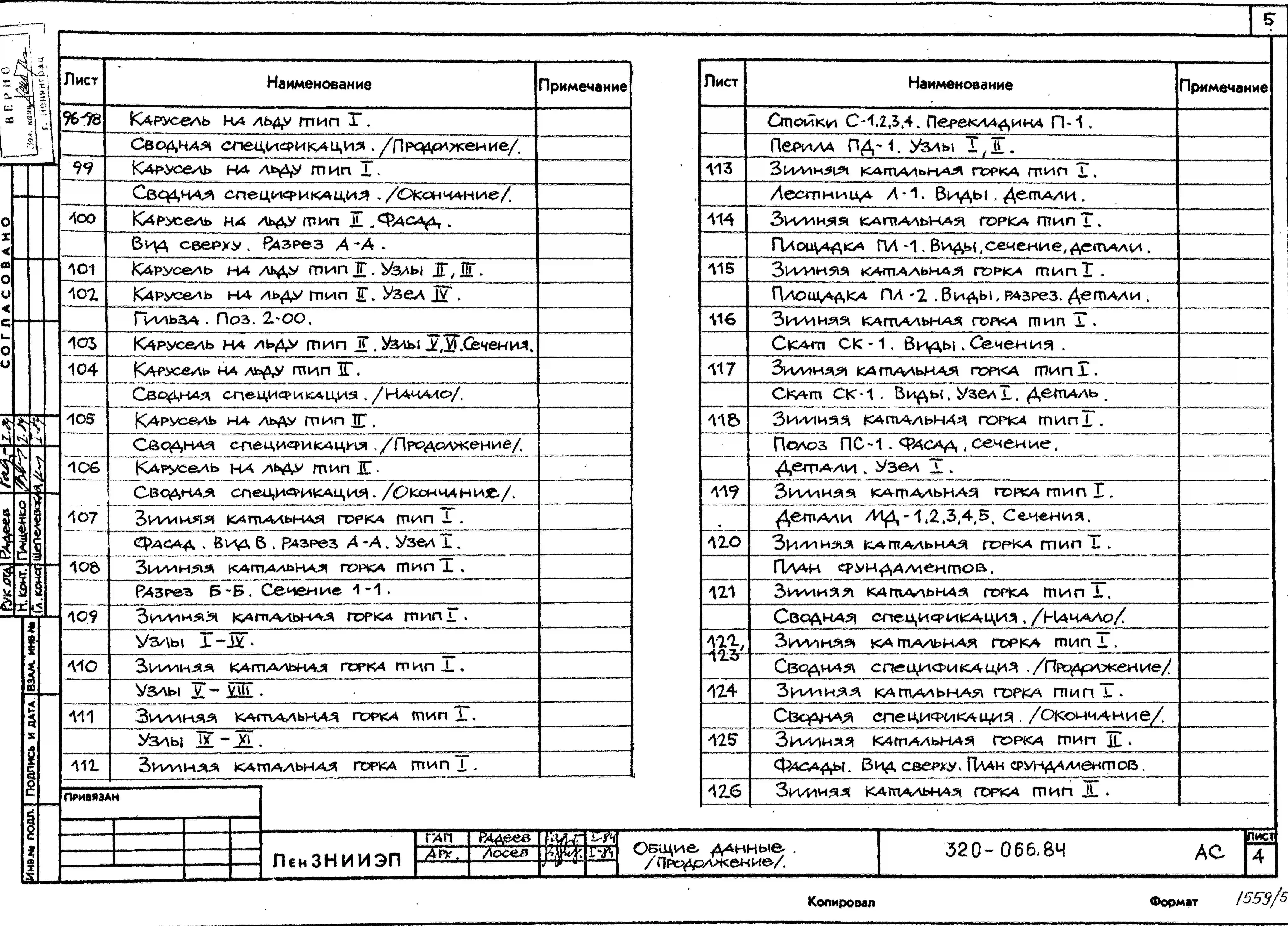 Типовой проект 320-066.84 Малые архитектурные формы и элементы благоустройства для районов Крайнего Севера. Жилая зона