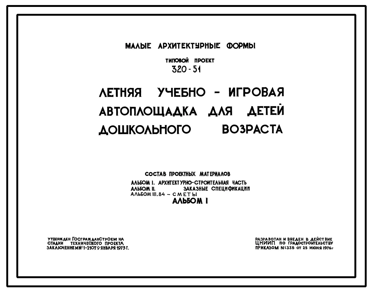 Типовой проект 320-51 Летняя учебно-игровая автоплощадка для детей дошкольного возраста. Дорожные сооружения стационарного типа