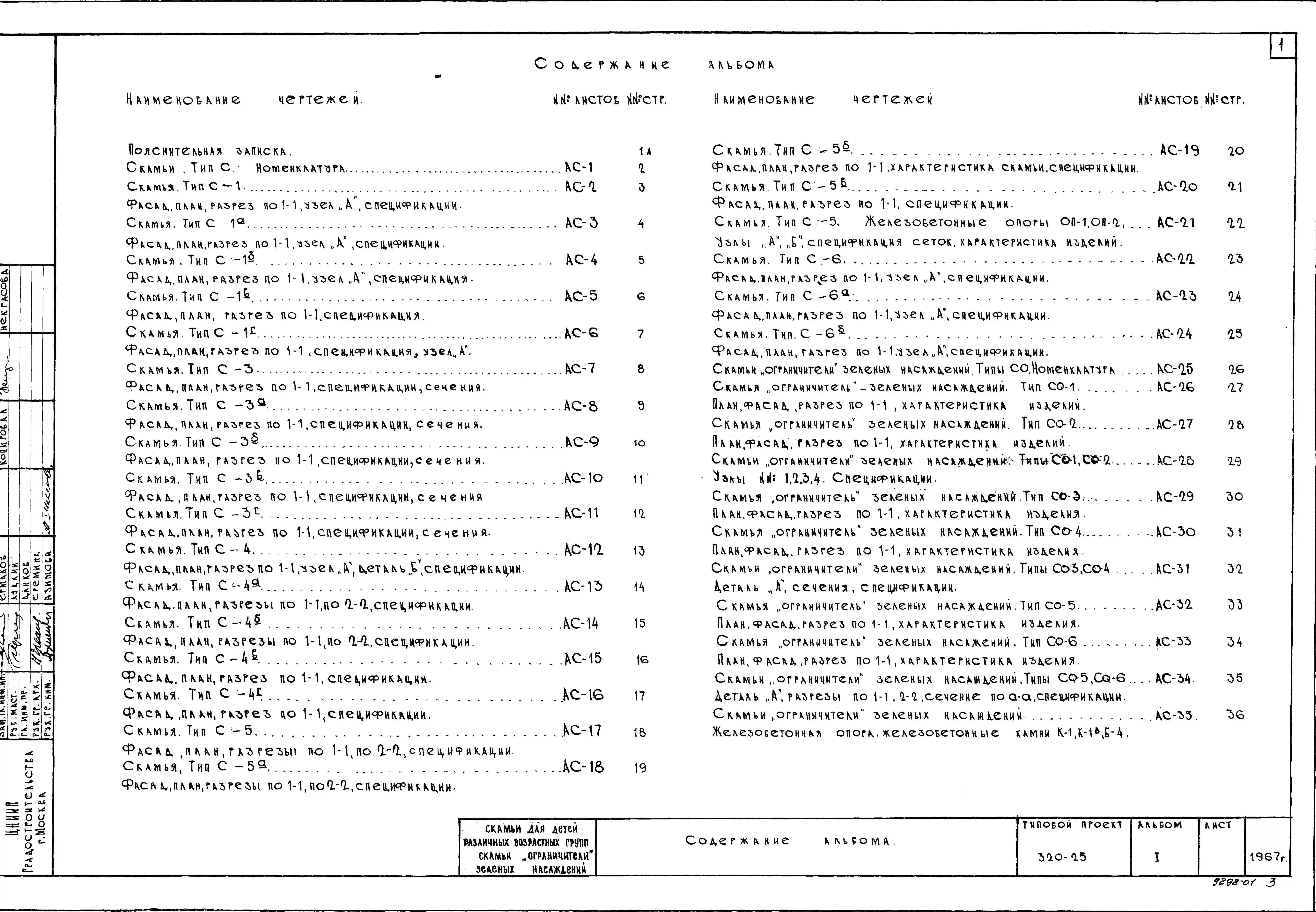 Типовой проект 320-25 Скамьи для детей различных возрастных групп. Скамьи – «ограничители» зеленых насаждений