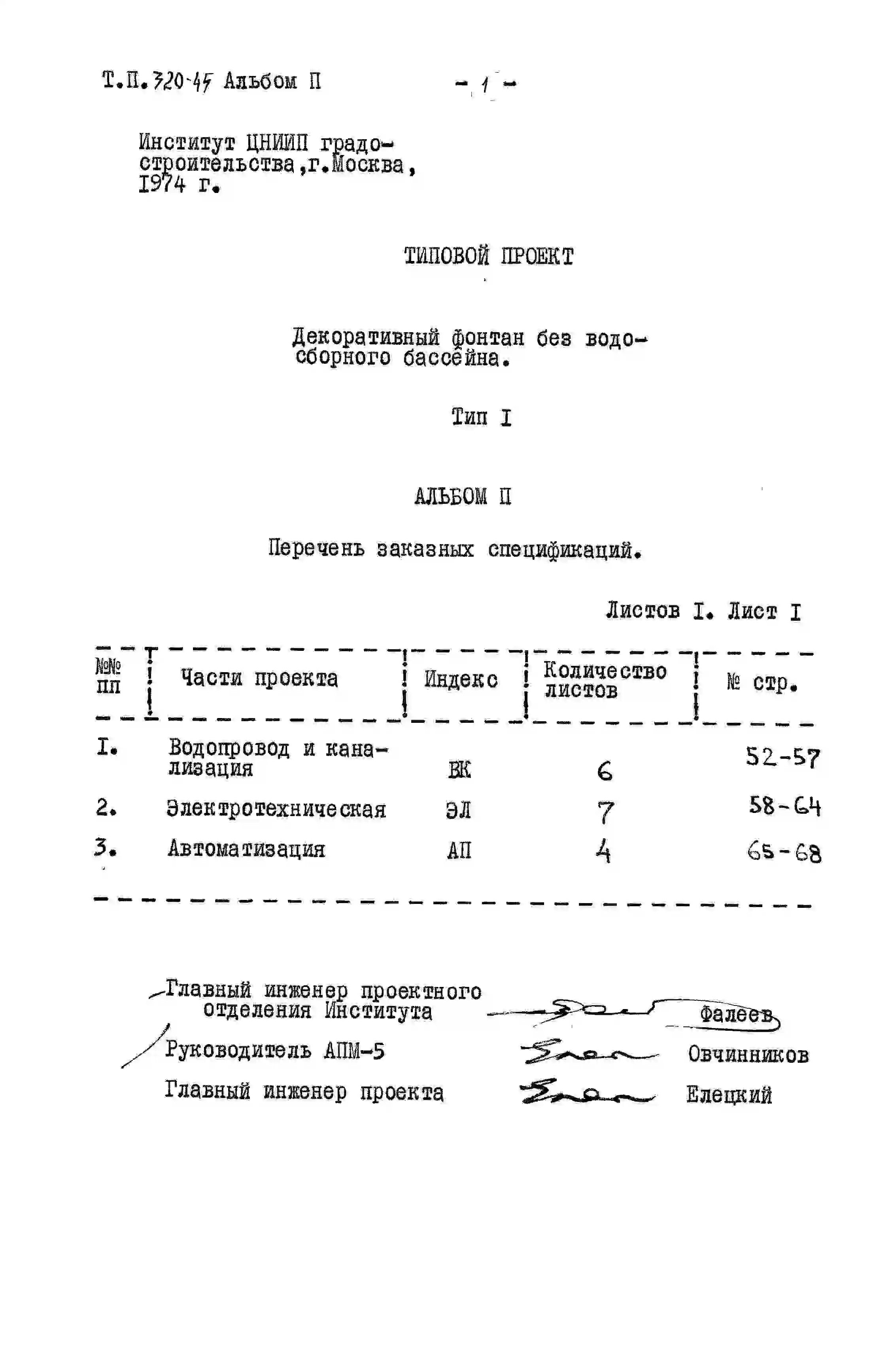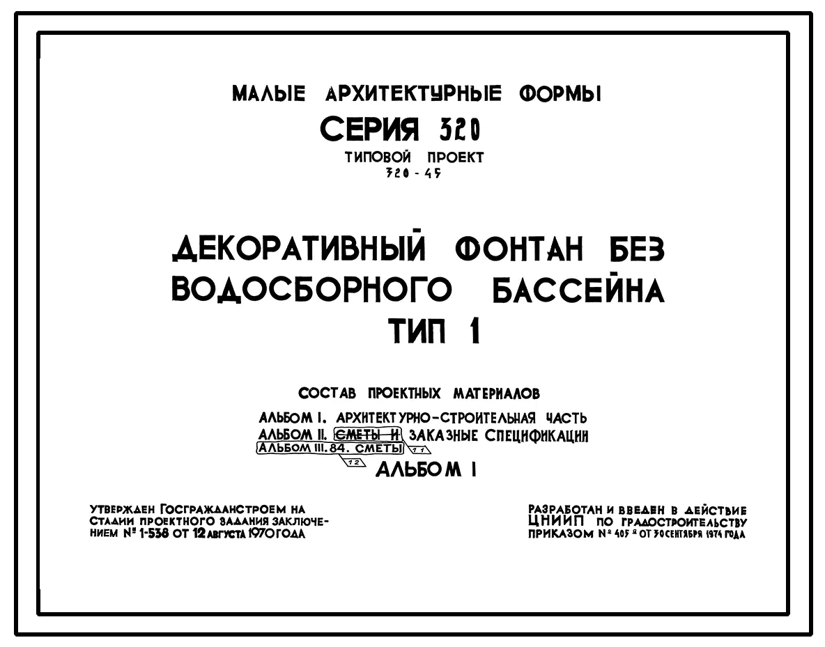 Типовой проект 320-45 Декоративный фонтан без водосборного бассейна. Тип I
