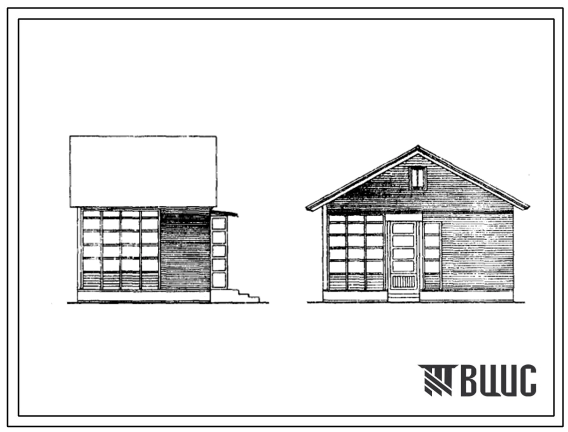 Типовой проект 330-9 Садово-парковая архитектура и озеленение. Летние садовые домики деревянные, с двускатной крышей, каркасной конструкции. Тип 1, 2