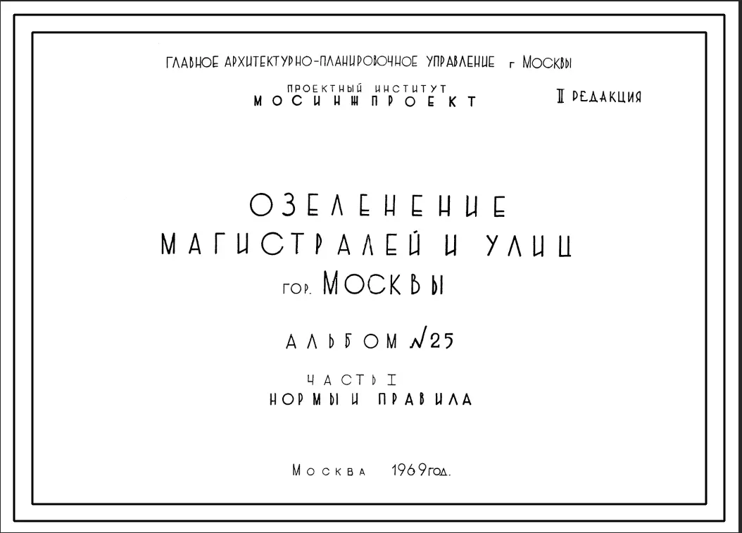 Шифр 25-1969 Озеленение магистралей и улиц гор. Москвы Нормы и правила Часть1(1969г.)