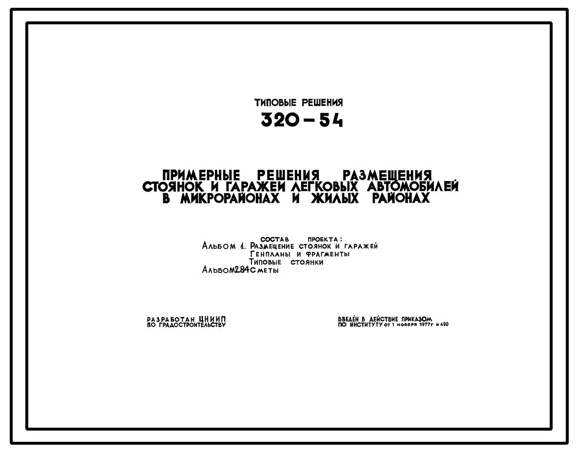 Типовой проект 320-54 Примерные отношения размещения стоянок и гаражей в районах и микрорайонах. Для проектирования жилых районов и микрорайонов 2 и 3 строительно-климатических районов