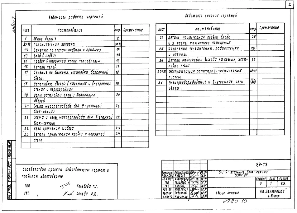 Типовой проект 89-ТЭ.86 Техническая эксплуатация 5-, 9- этажный общежитий на 440, 600 мест для учащихся профтехучилищ со стенами из кирпича серии 89. Чертежи (формат TIF) Паспорт проекта (формат PDF)