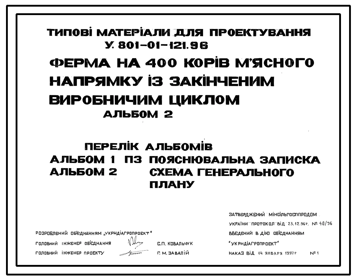Типовой проект У.801-01-121.96 Ферма на 400 коров мясного направления с законченным производственным циклом