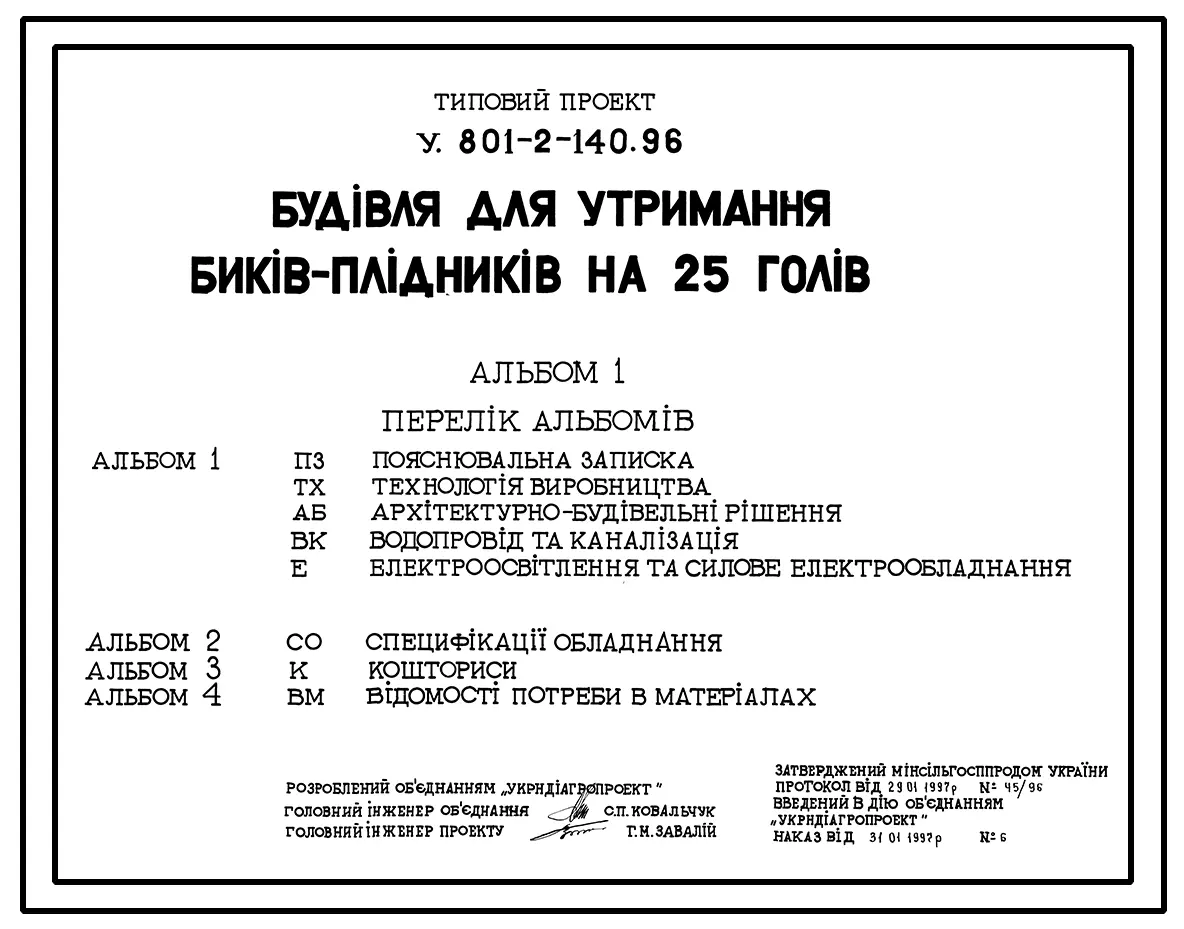 Типовой проект У.801-2-140.96 Здание для содержания быков-оплодотворителей на 25 голов