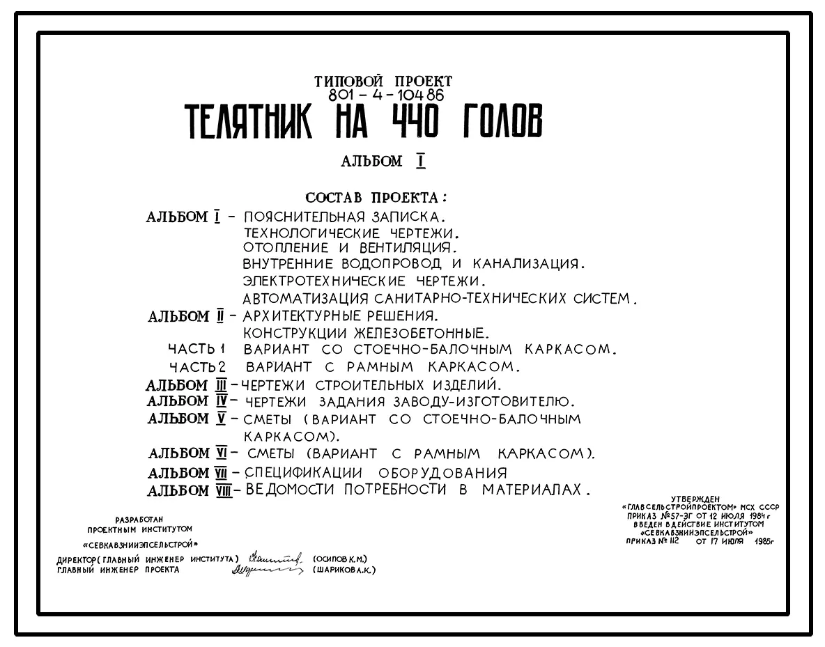 Типовой проект 801-4-104.86 Телятник на 440 голов. Содержание от 15 дней до 6 месяцев - в групповых клетках с боксами. Раздача кормов – мобильная. Уборка навоза - скреперными установками и транспортером. Размеры здания - 18x78 м.